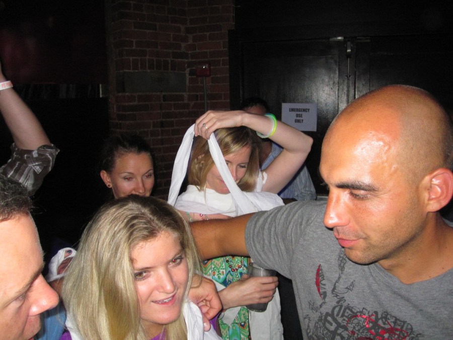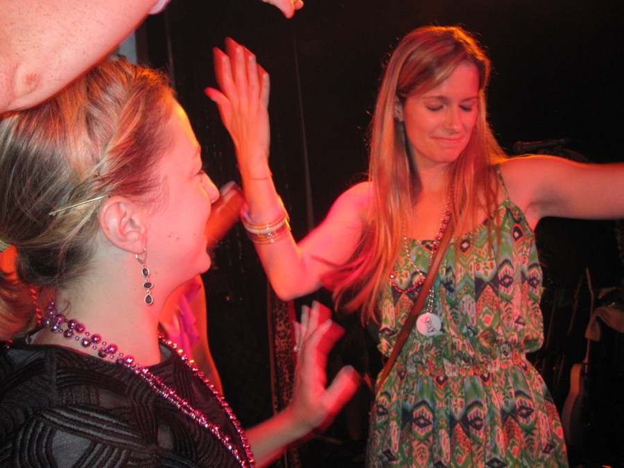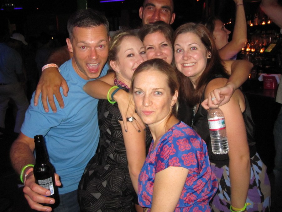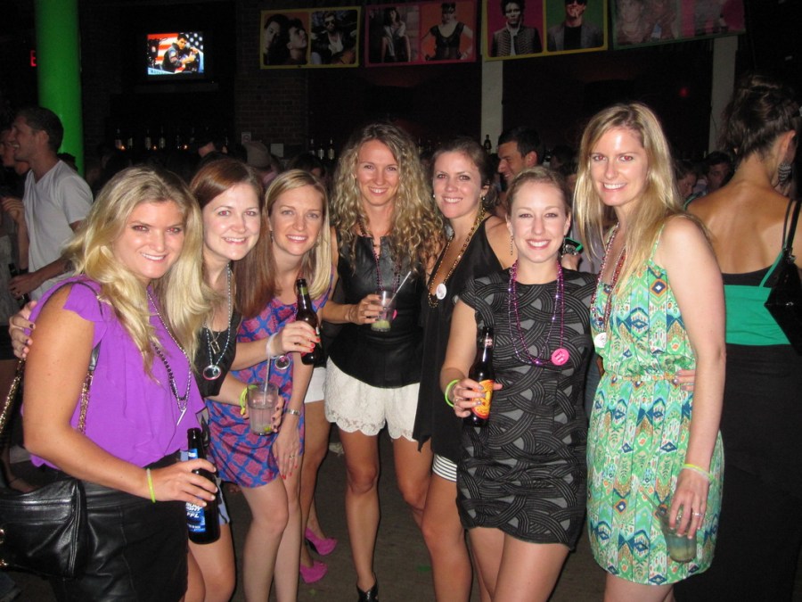Saturday began with brunch outside of our hotel at the Barking Dog. Mimosas, eggs and toast was all we needed to start day 2. 🙂 We decided to take a long walk to Central Park (we had orginally thought about a picnic but the weather was kind of iffy and we didn’t want to get rained on!). We made it to the fountain and the boat house, getting in some quality people watching. That evening began with a scandalous lingerie party and some champagne! We had dinner reservations at Stanton Social. It was small plates- and we got so many it was hard to remember how many we had! All were delicious and they had fabulous cocktails as well. I particularly enjoyed the gimlets. 🙂 After our fabulous dinner we had plans to attend an 80s dance party at the Canal Room. AMAZING. We had glow bracelets and beads and of course there was a moment on stage. Then we found ourselves over in a private party area- which made dancing much more fun. And we managed to get all of JJ’s checklist accomplished! Great evening with great ladies. 🙂