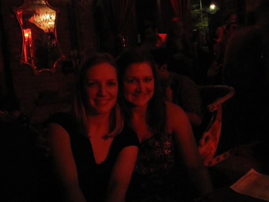 New York, NY | September 7-9 , 2012 | JJ’s Bachelorette in New York City!! | Super excited for this weekend. Colleen braved driving most of us but Jenny and Caitlin up to New York. We made it up in one piece to our hotel, the Affinia Dumont by early afternoon. We hung out in our super cute hotel for a bit until it was time to get dinner at Lil Frankie’s Pizza. It was the first stop on our schedule/score cards. Super tasty pizza and delicious drinks- a great way to start the weekend! Then we headed to drinks at Bourgeious Pig. Very swanky lounge where they serve giant punch bowls full of champagne punch with tiny teacups. No photos were allowed inside with flash! We got reprimanded. 🙂