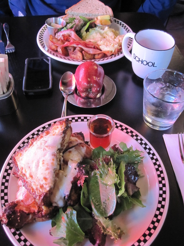 Last day in Toronto. 😦 We ate brunch at School. It took a bit to drive over there because we weren’t 100 percent sure where we were headed but it was worth it. Jon got a giant cup of coffee and I got cheesy bacon french toast. Yes!! Another quality food spot from Sommer. Best food list ever. After stuffing ourselves we decided to climb the CN Tower. Once at the top we got some beautiful Toronto views and got to stand over a windowed section looking down to the ground. We took lots of photos before heading back down to finally check out Steamwhistle Brewery to try their beer. It was more to Jon’s taste than mine- but their building was really cute. We had a a quick last meal at Hoops sports bar before getting on the road to head back to Ann Arbor.