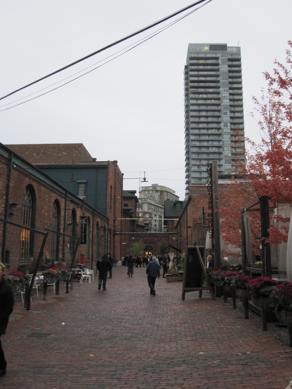 We met up with them at Beer Academy which was pretty close to our hotel. We got to try some of their local tastings and I wandered around the brewery space. Afterwards they led us over to the Distillery District to wander around. It had lots of artist space, cute shops, nice restaurants, and reminded me of warehouse districts in NC. I found a cute chocolate shop: Soma Chocolate maker and had to get some yummy looking chocolate for later. We ate dinner at Mill St. Brewery- tried their local brew and poutine (first poutine experience). Dinner was delicious and so far we had had a great first day. Afterwards we headed to BierMarkt (not too far away) to sample more beers. It was a rainy evening, and randomly on our way back to the hotel we passes Sommer and Steve on the street and they offered us a ride back- so nice!