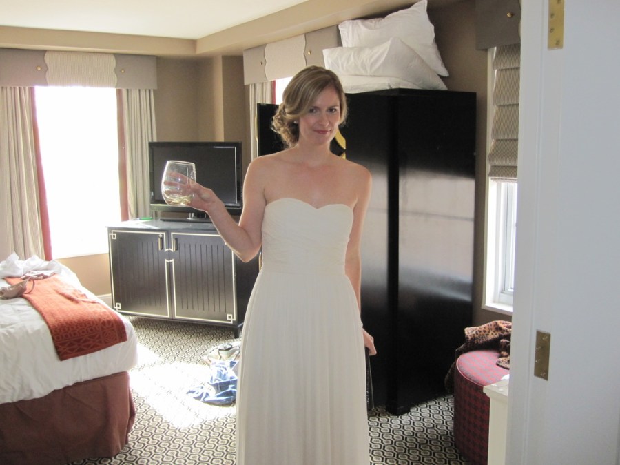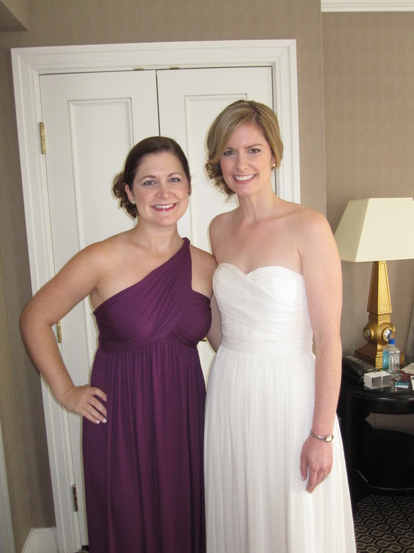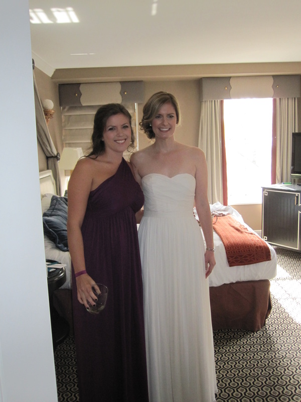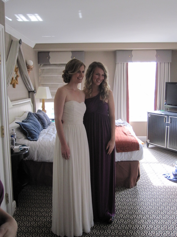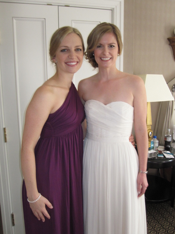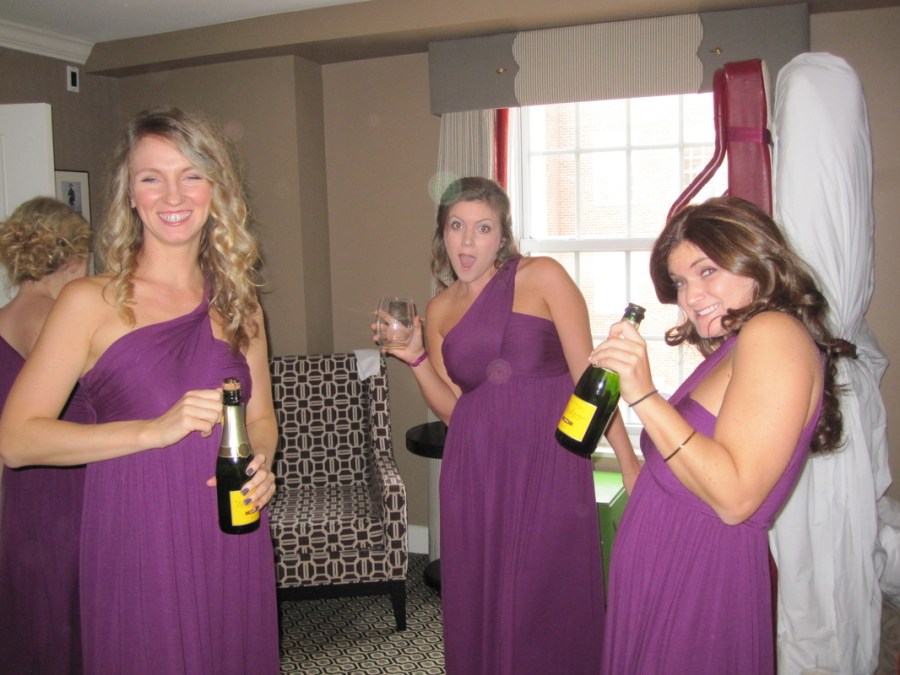As part of the lovely bridesmaids, we enjoyed the rehearsal dinner and drinks at the hotel before having a sleep over party the night before. Wedding Day started out with hair and makeup and some breakfast from Cosi! She looked so pretty!! We took lots of pictures and broke into the champagne before heading over to River Farm for the First Look and photos.