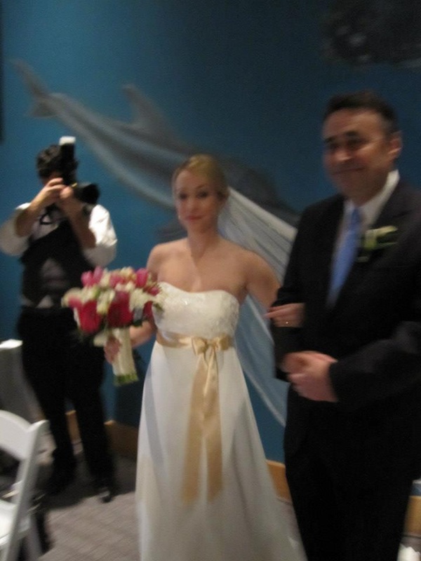Em made a blushing bride and had her father perform the ceremony which put a few tears in the ladies eyes. After the ceremony, we got to wander around with the sharks, sea turtles and stingrays all over cocktails.