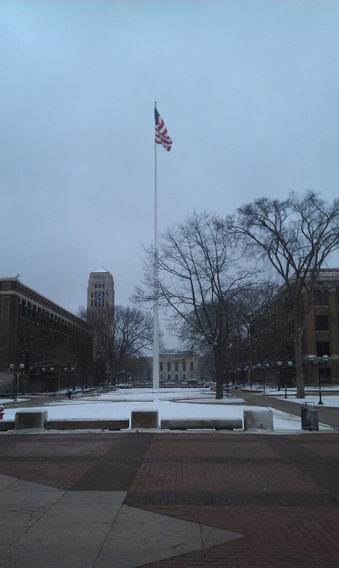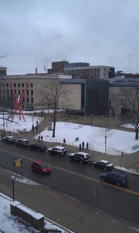Sunday we decided to venture in to Detroit. I’d never been and neither had Jon despite the fact that he’s lived in Ann Arbor for a couple of years now. We walked the river walk which was partially covered in snow and therefore deserted. It’s really nice down there despite Detroit being so empty. We ate brunch at Union Street where I got to have a blackberry mimosa. Pretty tasty. The Detroit Institute of Art was nearby so we popped in for a little bit to take in some culture for the day. Our last stop was to Green Dot Stables taking in some green grub for the holiday. We headed back to Ann Arbor to enjoy some ice cream and watching The Avengers.