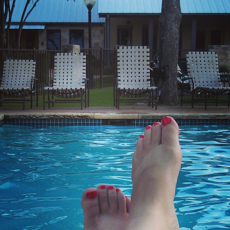 We drove north along the back country roads, which was cool for me to see real Texas hill country. We finally ended up in Driftwood where we ate dinner at Salt Lick. Basically the best Texas barbecue I’ve ever had. Brisket and turkey with beans and potato salad- all out in a rustic setting. Loved it. Was beautiful. And of course we had dessert: Blackberry Cobbler! So good. We wandered around the grounds for a bit before heading back to Austin. I was so stuffed I almost drifted off in the car on the ride. Once we got home, Jack was almost back to normal which was a huge relief since he’d been sick. Kristi and I headed out to their pool for a bit to relax.