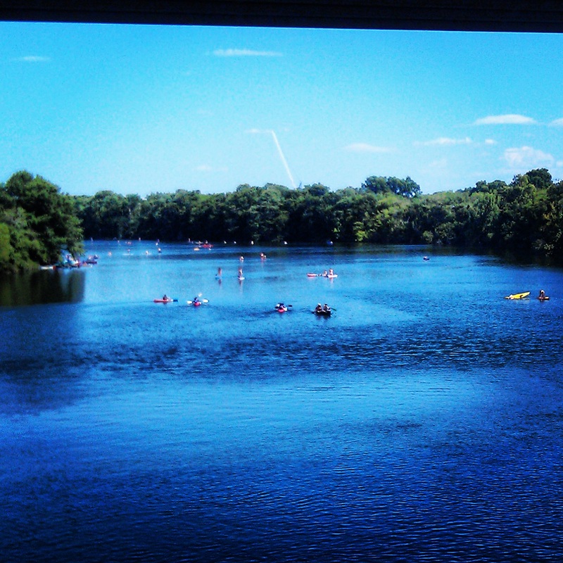 Day 2! Started really early and was almost a comedy of errors. We had big plans to go river tubing in New Braunfels. Well, at first the weather was not cooperating – the storms would not move out of the area so we could go out on the river. Then we found out that alcohol could not be purchased for our cooler until noon. So- we wandered around town, questioning the mindset of many of the locals. (Twenty minutes spent a gas station, the most ridiculous Mexican driveup menu I’ve ever seen, the stoners at the tube rental place to name a few.) I had a small taste of Tex-Mex while we waited- chicken taco and refried beans. Was tasty. Once we finally were able to get out on the river it was quite enjoyable, but a little chilly to start. The river had tube shoots that shot us down the river, and trying to hold onto each other and the cooler tube was hilarious. We definitely enjoyed ourselves though and if we hadn’t had other plans for that evening we probably would have floated it again!