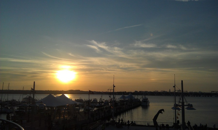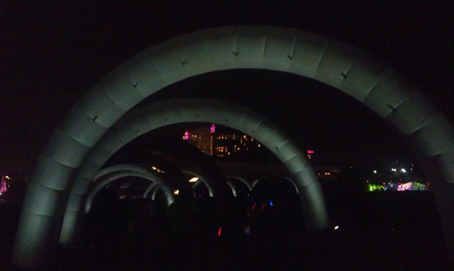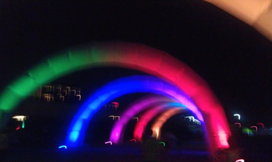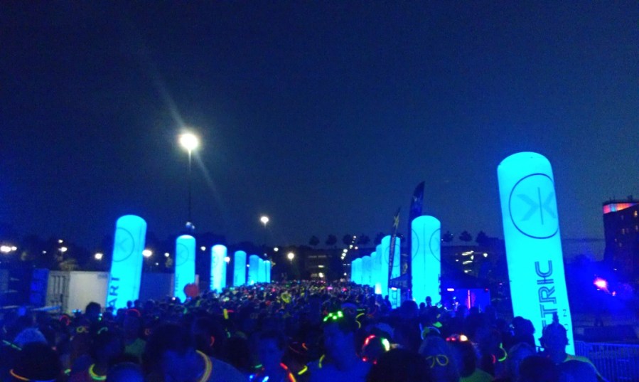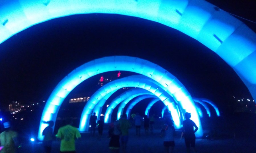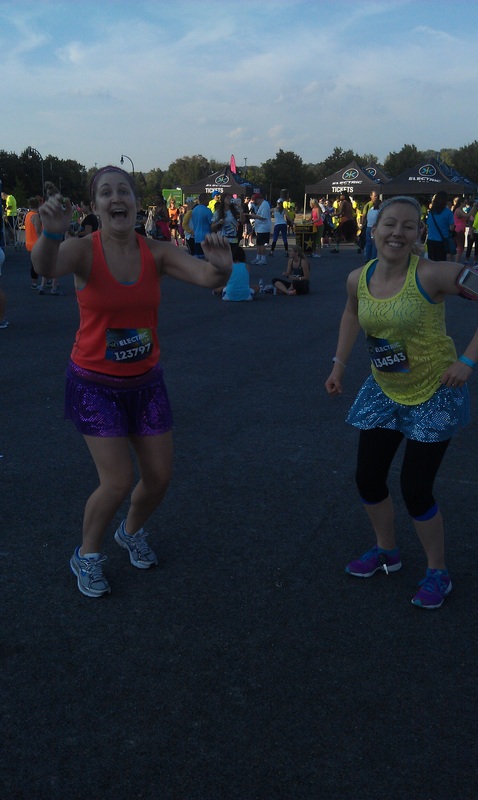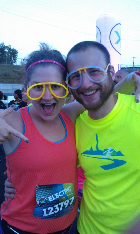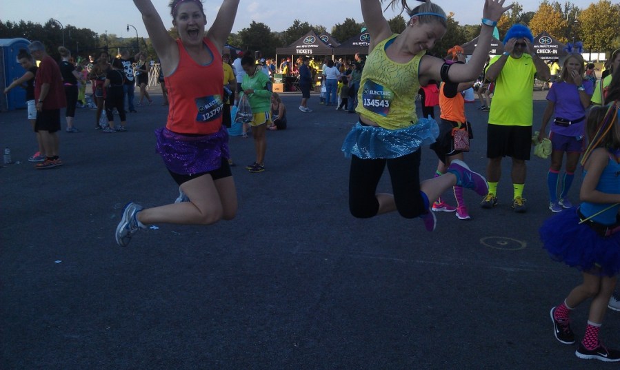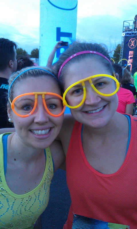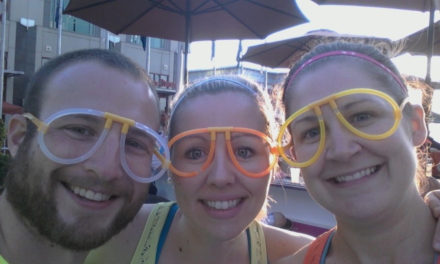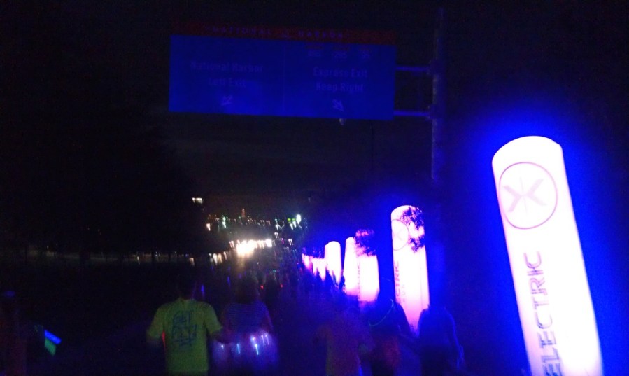 Washington, DC | September 7, 2013 | an electric 30ish minutes | Cara, Ethan and I had a delightful Saturday evening out at National Harbor with the Electric Run. It was not oppressively hot (bonus) and they had us run in shifts since the course was so narrow. We went through various electric zones – my personal faves being the umbrellas and the light orbs in the trees. We had a blast with our glow glasses and of course hanging out for the dance party after!