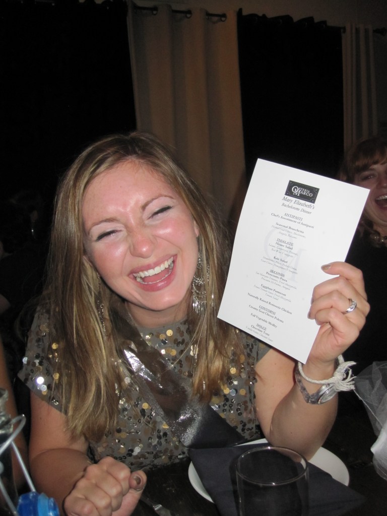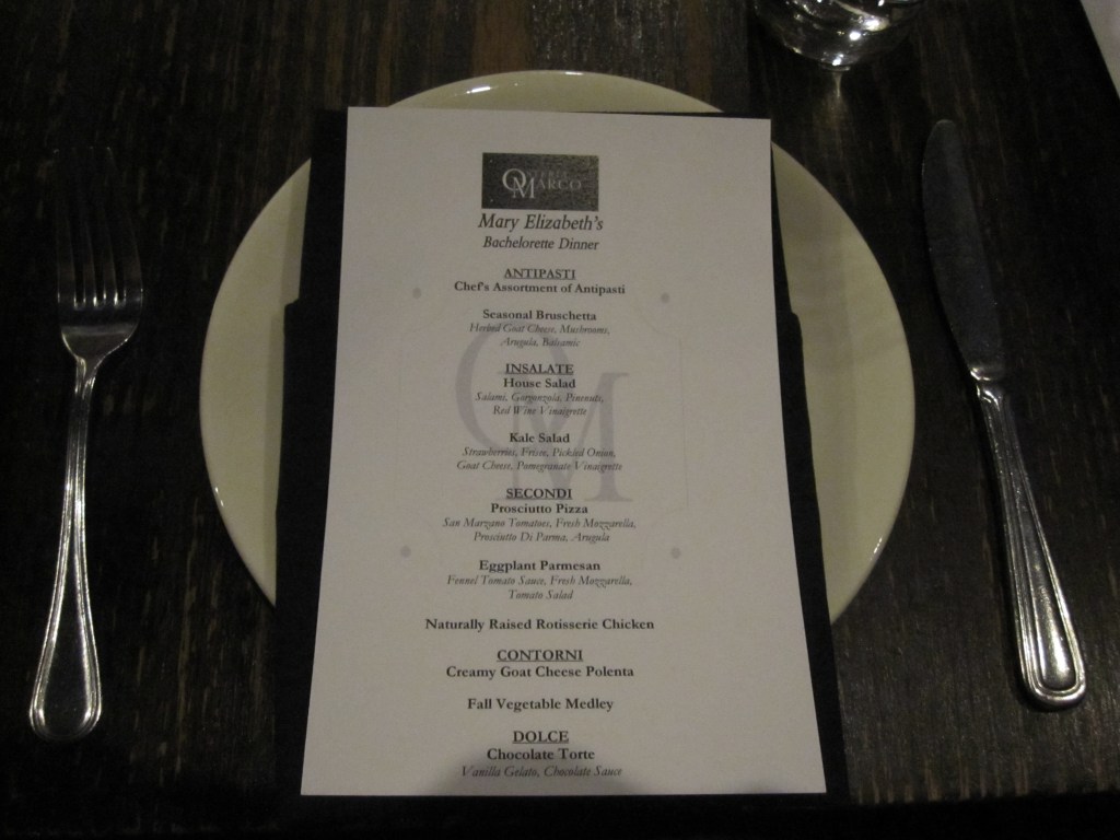 That evening was filled with fun. We started out with snacks and drinks in the bride’s suite for a little lingerie party. Dinner took place at Osteria Marco. Was absolutely delicious. Fantastic appetizers, wine, food, everything was great. We were here eating and drinking for awhile before heading over to Corridor 44 for some champagne.