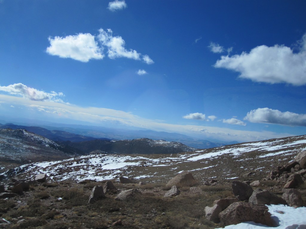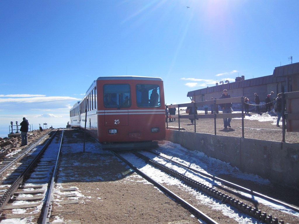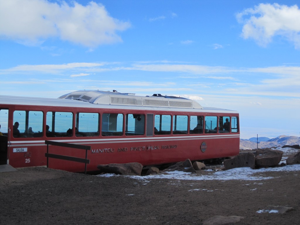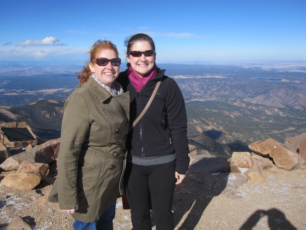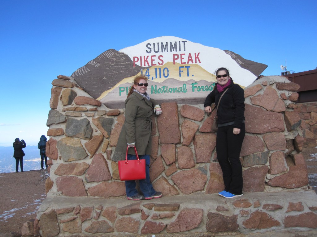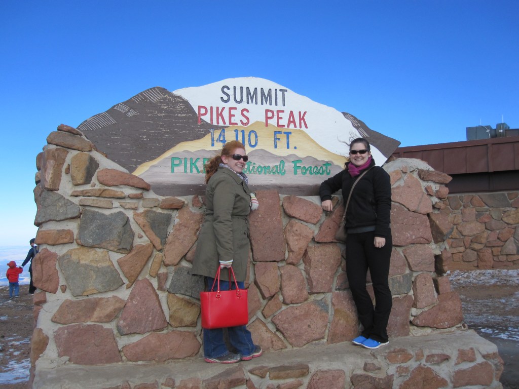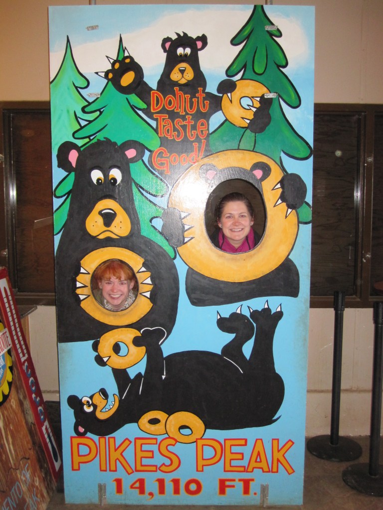We then drove over to Pike’s Peak to take the cog railway to the top. It was a fun way to head up the mountain. Gorgeous views and great photos. Once at the top we climbed off the train to extreme wind and cold. The view was ridiculous but boy was it freezing. Inside at the gift shop we got some mini- donuts to tide us over and to help my stomach settle. Altitude nausea is no joke. Lots more photos taken before we headed back to the train for the way down. Staying awake on this part was hard. 🙂 Once at the bottom I found some super cute and warm socks to purchase as my souveneir.