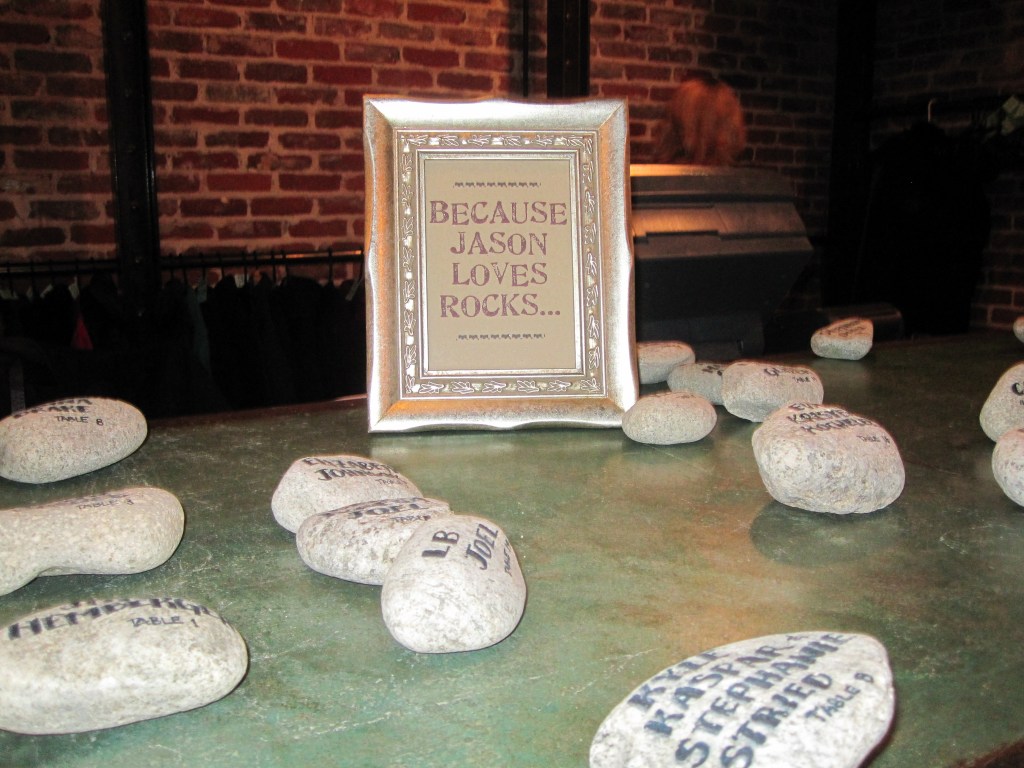 Afterwards we headed downstairs for the full reception. Our table assignments were written on rocks since Jason is a geologist. Awesome. The food was delicious and the company delightful. There was a photo booth that of course we all graced multiple times. And then we spent the rest of the evening on the dance floor.