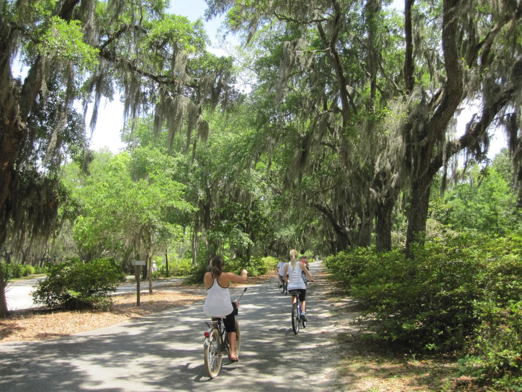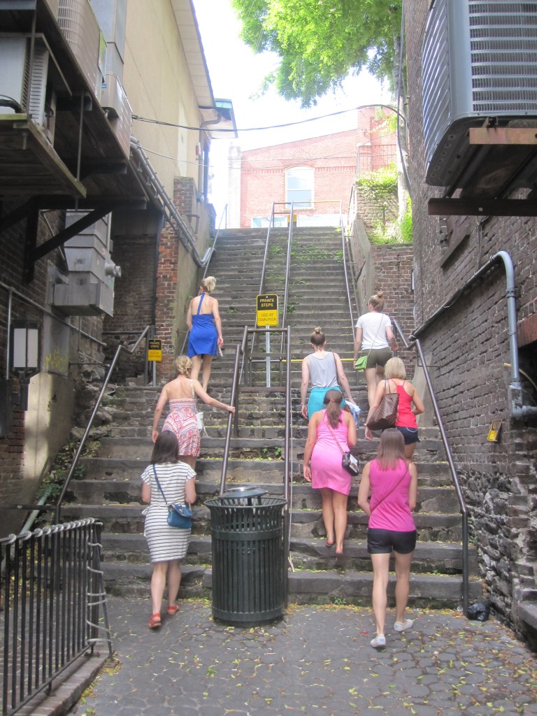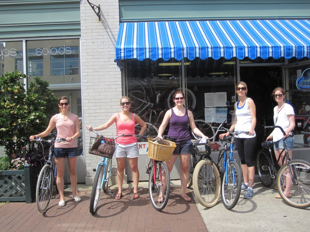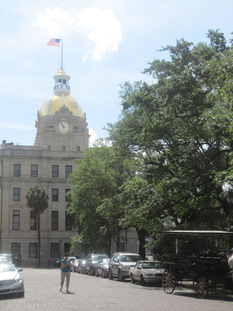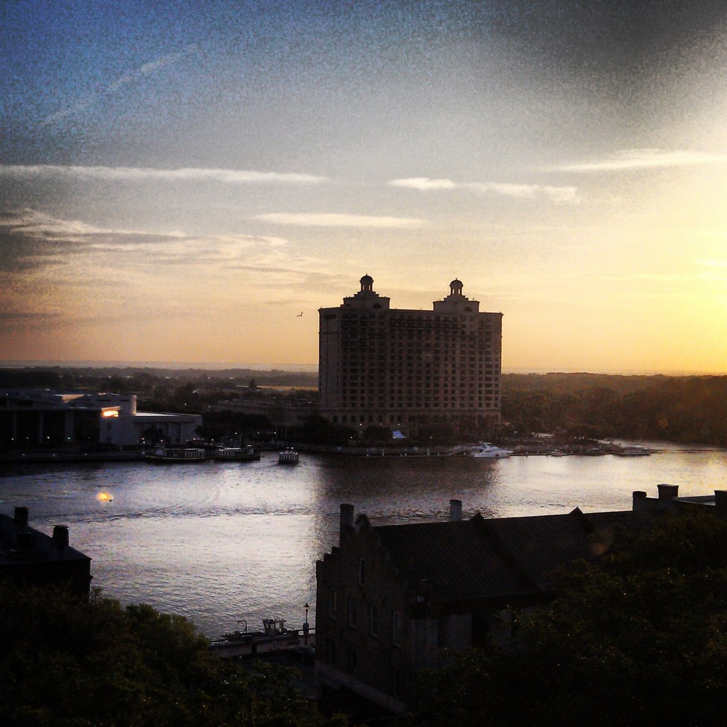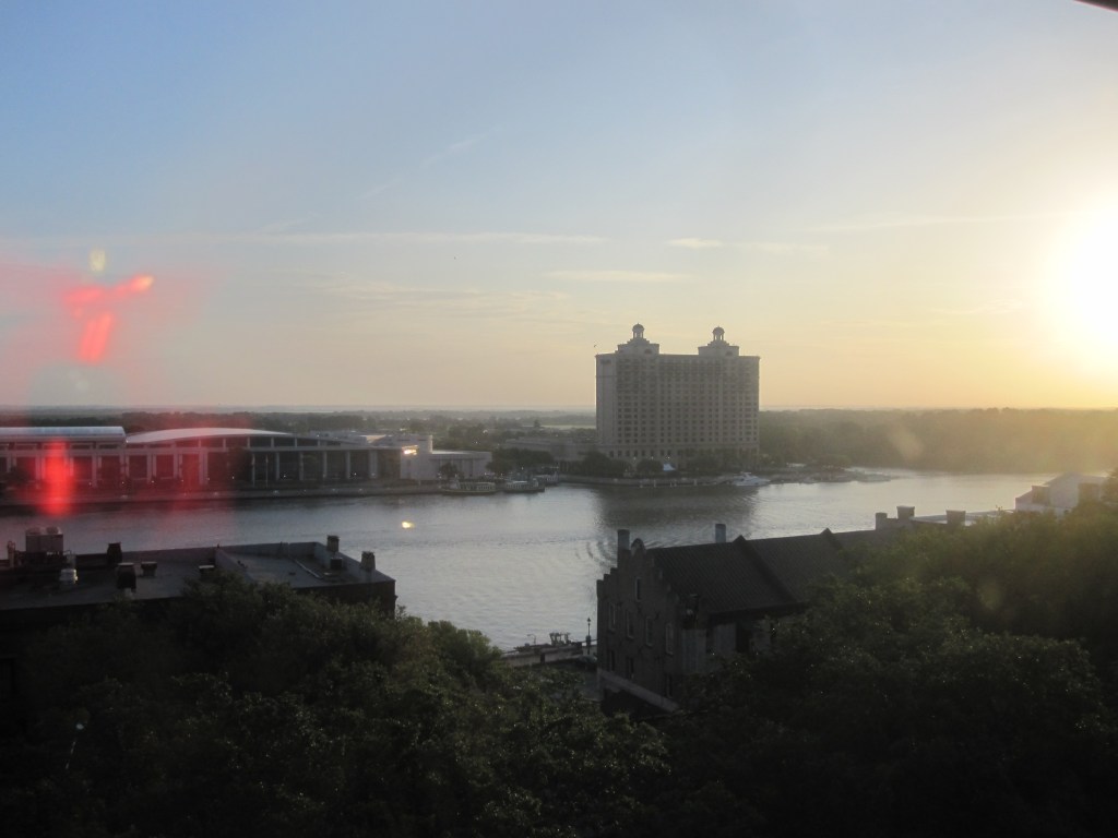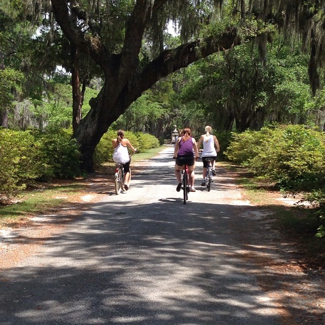 Day 1: A group of us DC ladies flew in super early and stored our luggage at the hotel. A really nice Holiday Inn Express literally in the middle of everything. Emily and Kristi arrived not much later than we did coming by car from Raleigh. We started out the weekend at Moon River Brewery – a beef brisket tacodilla and a beer (that I was then able to take to go!). After lunch we walked over to a bike rental place, grabbed bikes and headed on quite the journey to get to the Bonaventure Cemetery. We looked pretty hilarious- a group of 6 girls biking in a line through Savannah neighborhoods- but we made it in one piece and the cemetery was beautiful. It was very large but between the trees and other greenery we took lots of fun photos biking around. Kate and Caitlin both landed while were were out biking so we met up with them on our return to the hotel. A round of showers were needed for everyone before we got all beautified for dinner at the Olde Pink House. It was fantastic – biscuits and cornbread started out the meal, before I had almond crusted tilapia and bacon smashed potatoes. Yum!! After dinner (with a food baby in tow) we headed over to start our haunted pub crawl. We got special glow in the dark cups for the evening. We went to five total stops and listened to our guide tell great ghost stories about the places in Savannah. It finished up at Moon River where we’d been earlier in the day and we got to up into the haunted section of the building. I have to admit it was a little creepy and definitely warm up there. Great Day One!!!