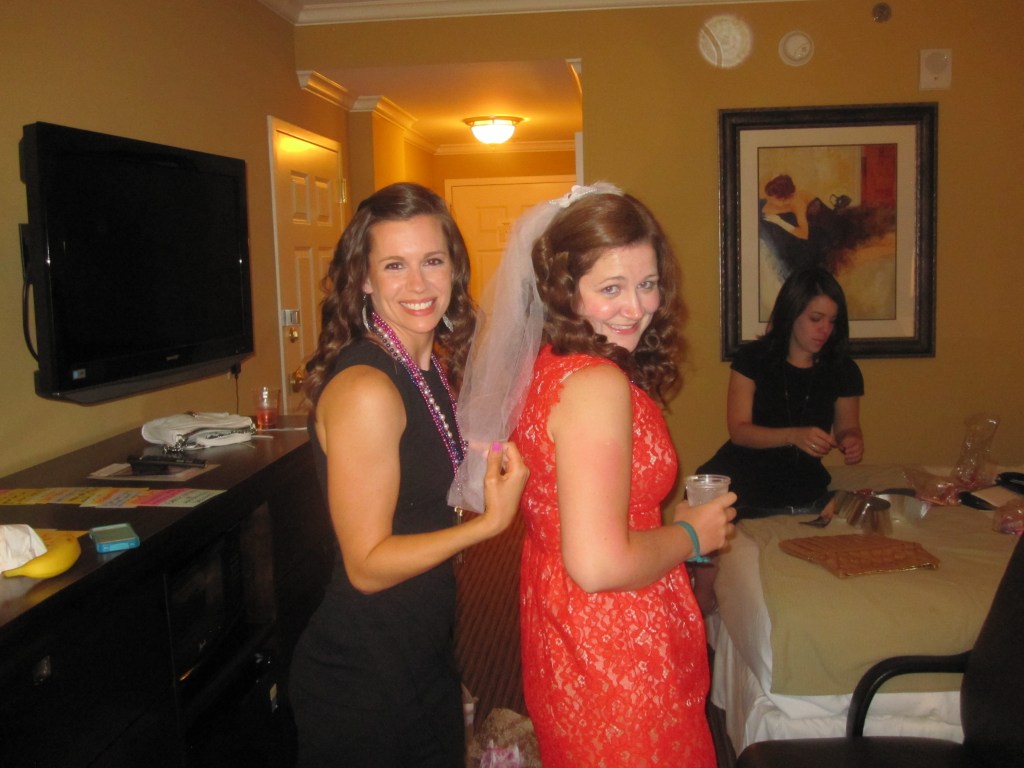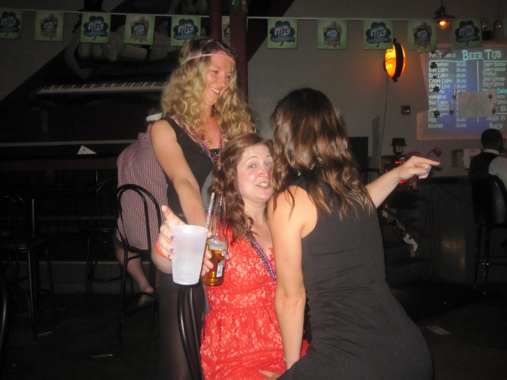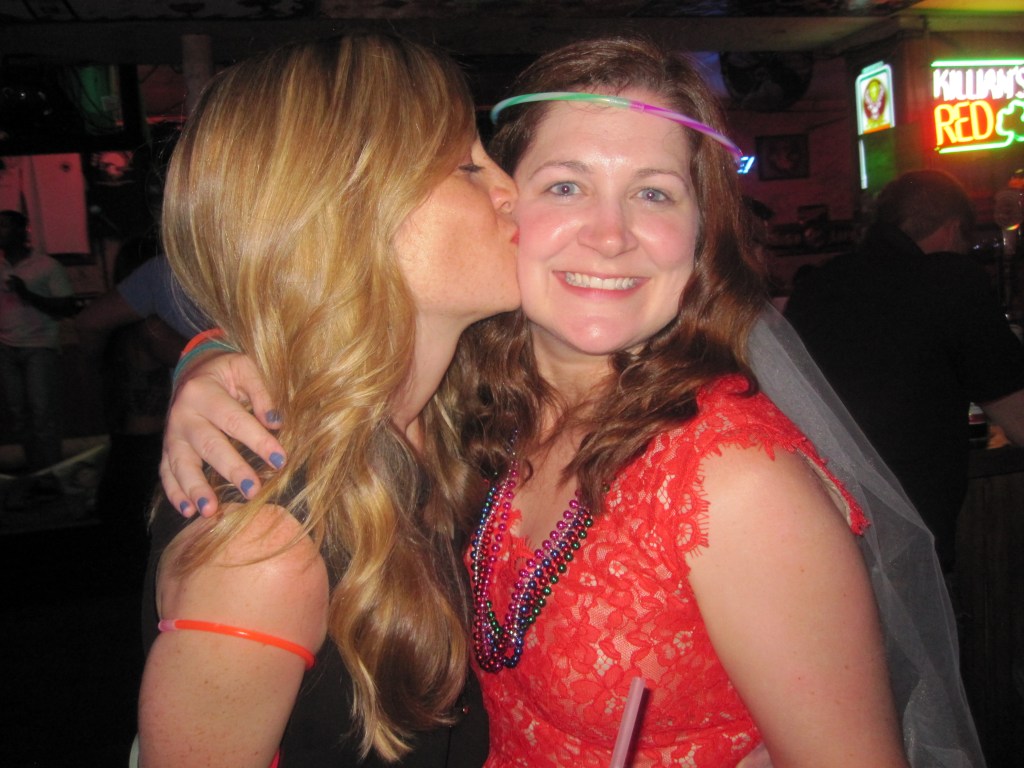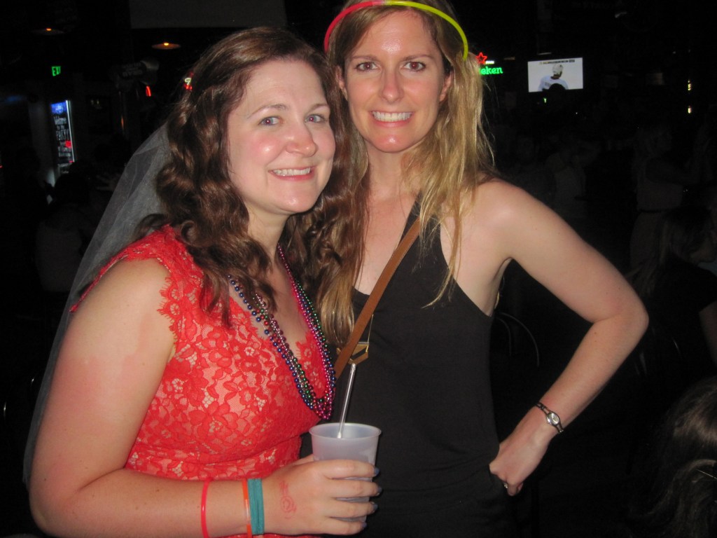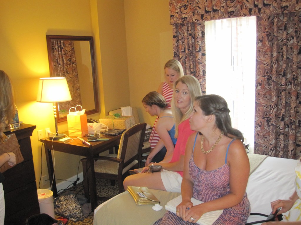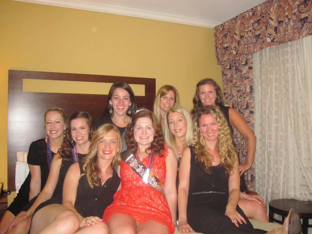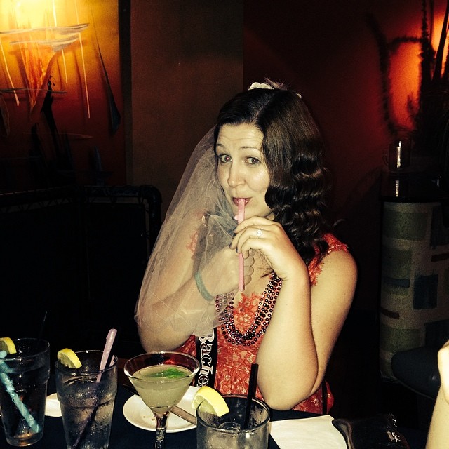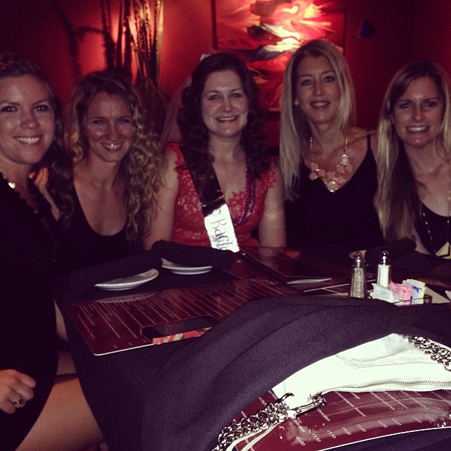 Day 2: Because naturally I can’t sleep past 7am these days I was up early. Kate being on Tanzanian time from work was also up so we went down to have free breakfast in the hotel. We hung out for a bit as the others came down and joined us as they woke up. And then Colleen arrived! She had gotten stuck in Charlotte the night before due to weather and so had to take the first flight out on Saturday morning. We were glad she finally made it to join in on the days festivities. We headed over to the Riverwalk to do a little walking/shopping/meandering. There were some really cute shops especially the Savannah Bee Company which had amazing honey products that a lot of us went back to purchase on Sunday. After walking a bit we decided to find a rooftop to hang out on for awhile. Rocks on the Roof turned out to be just that. We had some mimosas and bellinis before moving into the inner area to eat some food. Black bean hummus for the win. also truffle fries. delicious. After lunch we headed back to the hotel to enjoy the rooftop pool for a bit. JJ, Kristi, Kate and I headed over to a nail salon to start the beautifying for the evening. We started getting ready, I put on my second fancy dress from rent the runway before the party began! Goodie bags for the girls, veil and sash for me and beads all around – after a little room party time we headed to our dinner reservation at Jazz’d. Really tasty tapas and I had a great citrus and basil martini. Then we started on our pub crawl for the evening – had a blast!!! Fantastic Day Two!