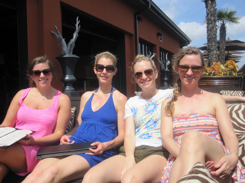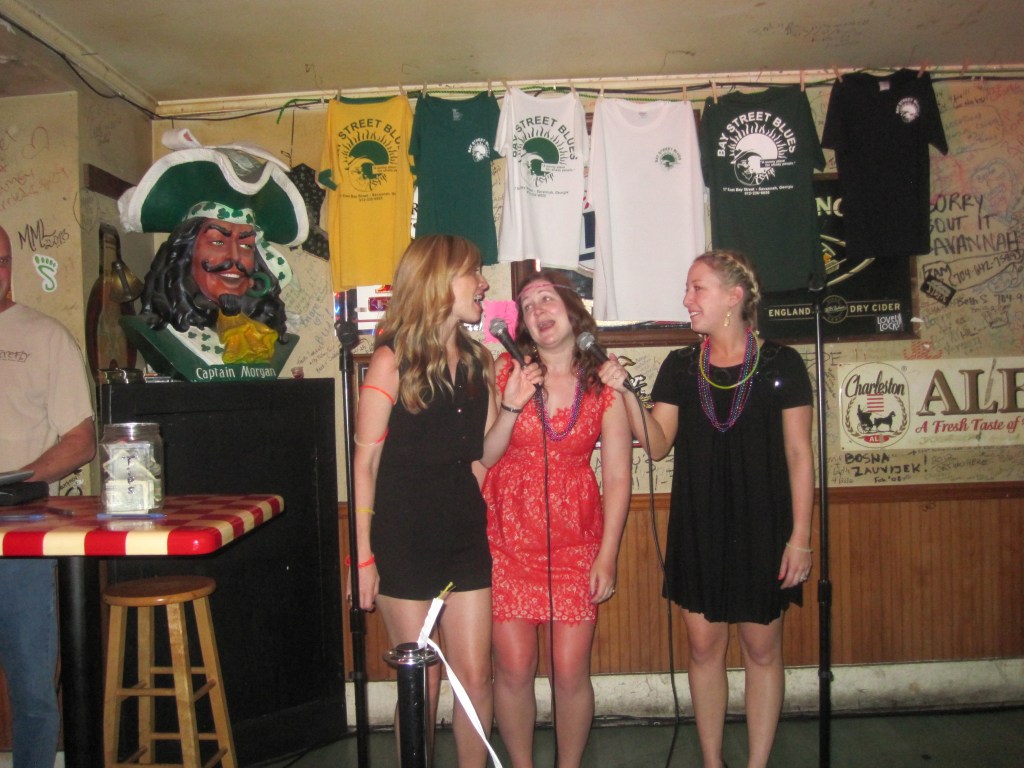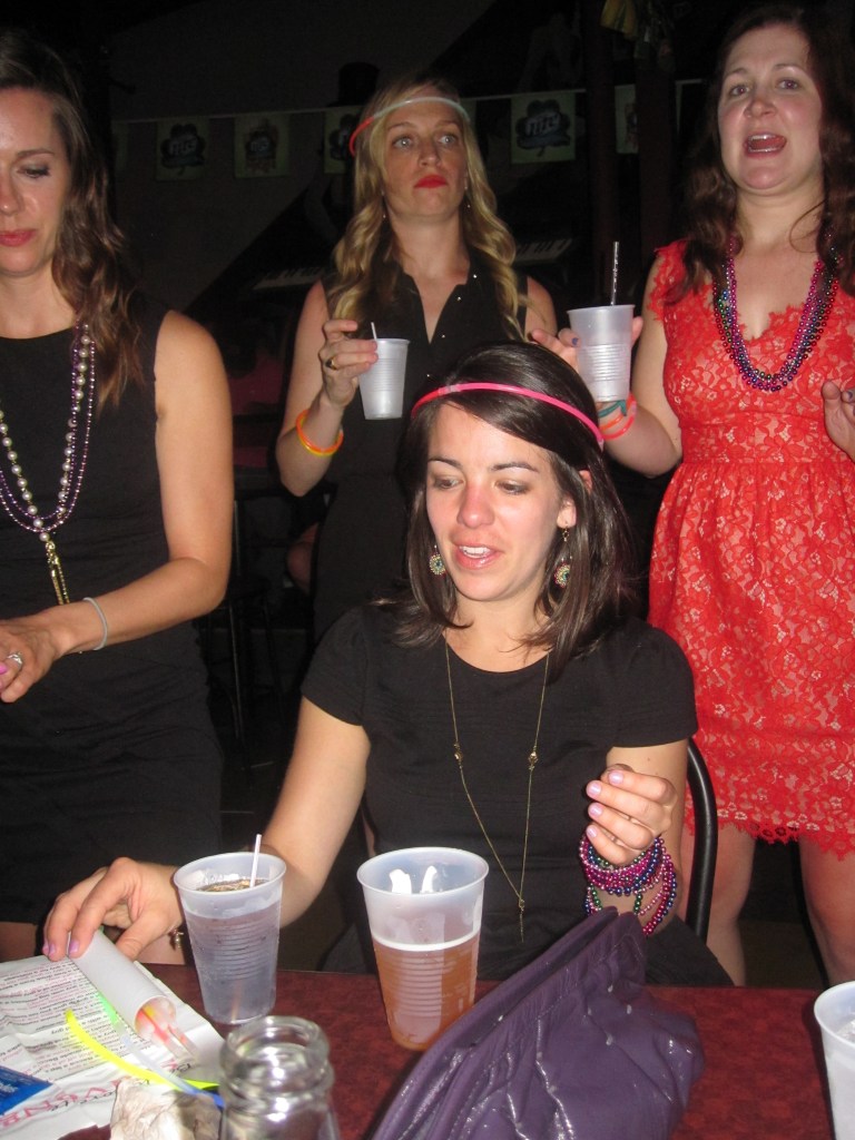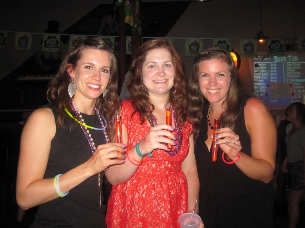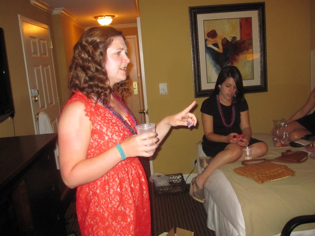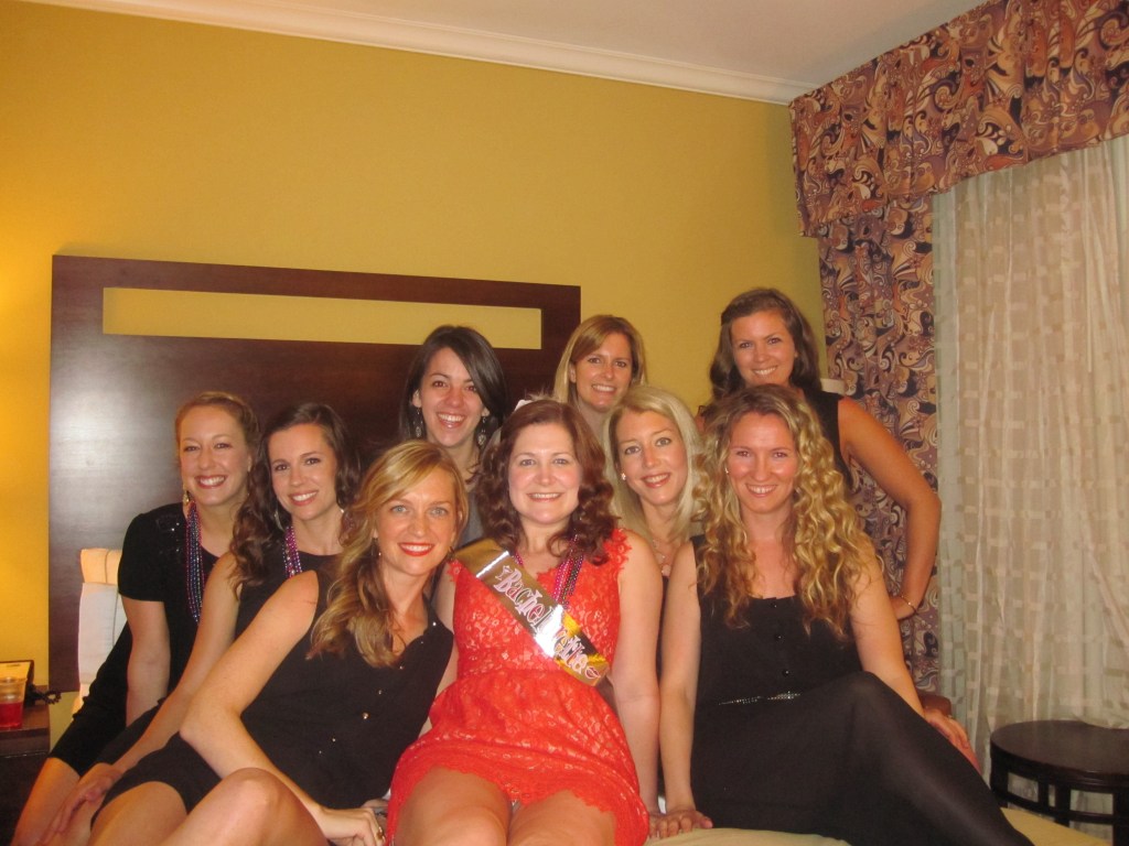 Day 2: Because naturally I can’t sleep past 7am these days I was up early. Kate being on Tanzanian time from work was also up so we went down to have free breakfast in the hotel. We hung out for a bit as the others came down and joined us as they woke up. And then Colleen arrived! She had gotten stuck in Charlotte the night before due to weather and so had to take the first flight out on Saturday morning. We were glad she finally made it to join in on the days festivities. We headed over to the Riverwalk to do a little walking/shopping/meandering. There were some really cute shops especially the Savannah Bee Company which had amazing honey products that a lot of us went back to purchase on Sunday. After walking a bit we decided to find a rooftop to hang out on for awhile. Rocks on the Roof turned out to be just that. We had some mimosas and bellinis before moving into the inner area to eat some food. Black bean hummus for the win. also truffle fries. delicious. After lunch we headed back to the hotel to enjoy the rooftop pool for a bit. JJ, Kristi, Kate and I headed over to a nail salon to start the beautifying for the evening. We started getting ready, I put on my second fancy dress from rent the runway before the party began! Goodie bags for the girls, veil and sash for me and beads all around – after a little room party time we headed to our dinner reservation at Jazz’d. Really tasty tapas and I had a great citrus and basil martini. Then we started on our pub crawl for the evening – had a blast!!! Fantastic Day Two!