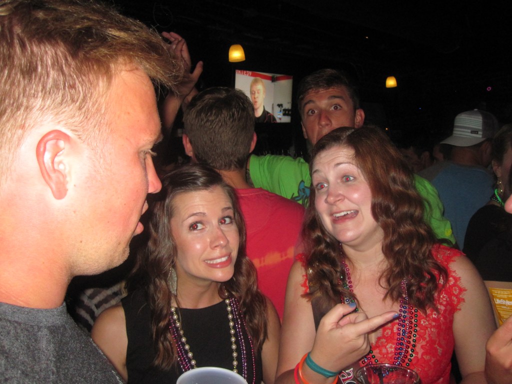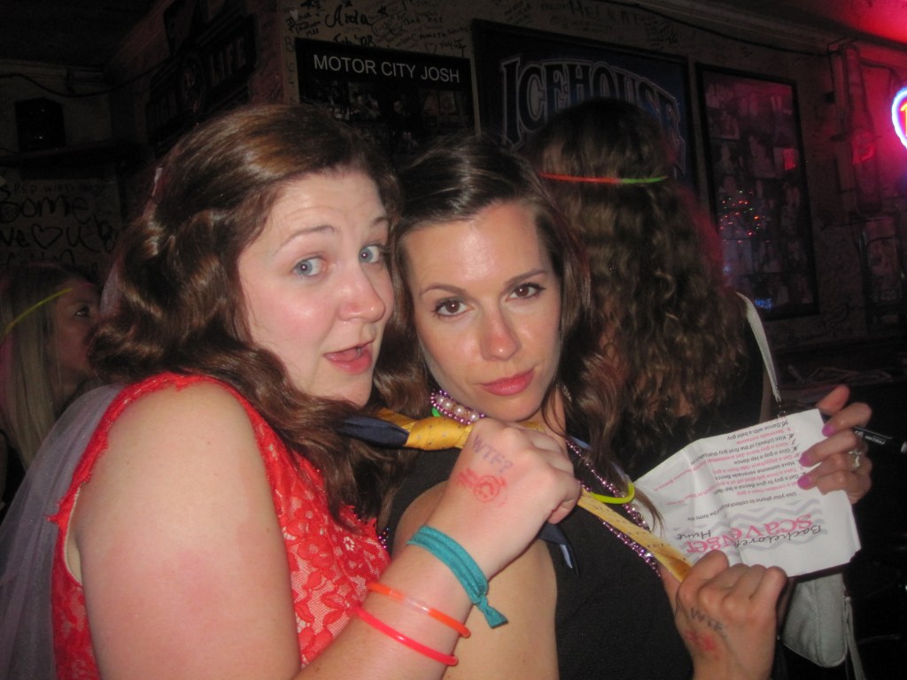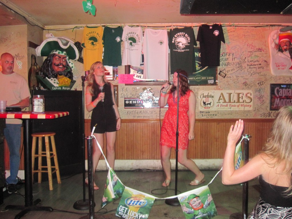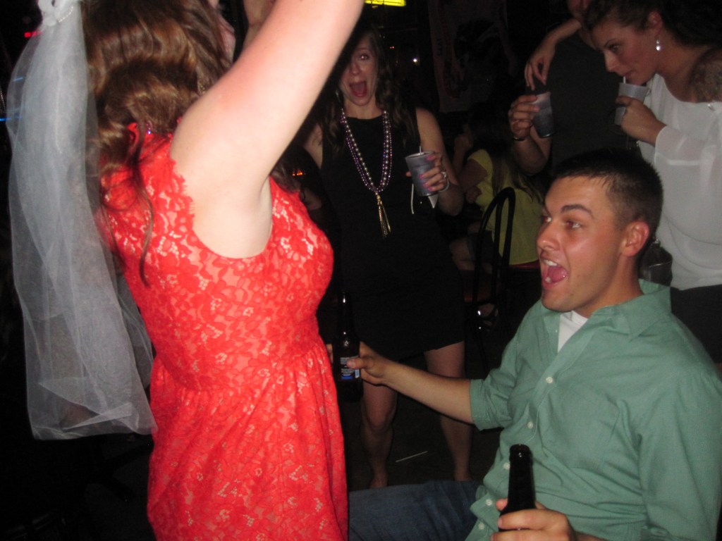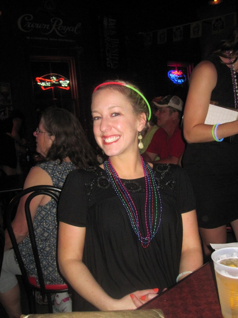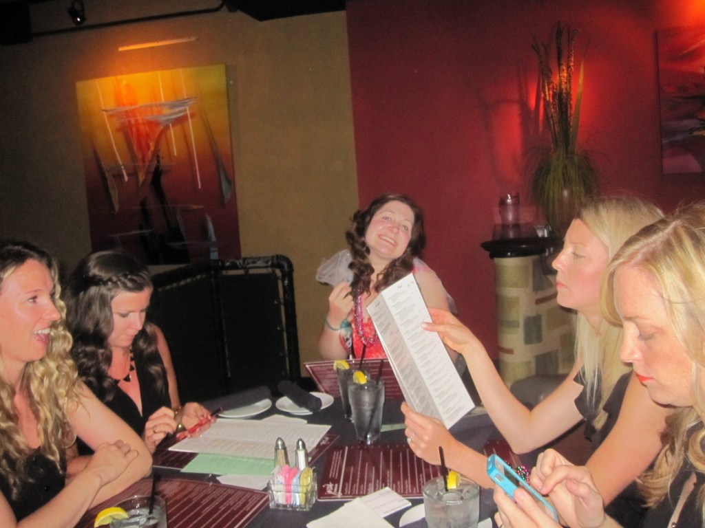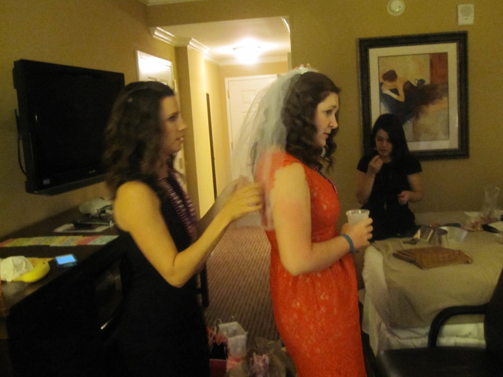 Day 2: Because naturally I can’t sleep past 7am these days I was up early. Kate being on Tanzanian time from work was also up so we went down to have free breakfast in the hotel. We hung out for a bit as the others came down and joined us as they woke up. And then Colleen arrived! She had gotten stuck in Charlotte the night before due to weather and so had to take the first flight out on Saturday morning. We were glad she finally made it to join in on the days festivities. We headed over to the Riverwalk to do a little walking/shopping/meandering. There were some really cute shops especially the Savannah Bee Company which had amazing honey products that a lot of us went back to purchase on Sunday. After walking a bit we decided to find a rooftop to hang out on for awhile. Rocks on the Roof turned out to be just that. We had some mimosas and bellinis before moving into the inner area to eat some food. Black bean hummus for the win. also truffle fries. delicious. After lunch we headed back to the hotel to enjoy the rooftop pool for a bit. JJ, Kristi, Kate and I headed over to a nail salon to start the beautifying for the evening. We started getting ready, I put on my second fancy dress from rent the runway before the party began! Goodie bags for the girls, veil and sash for me and beads all around – after a little room party time we headed to our dinner reservation at Jazz’d. Really tasty tapas and I had a great citrus and basil martini. Then we started on our pub crawl for the evening – had a blast!!! Fantastic Day Two!