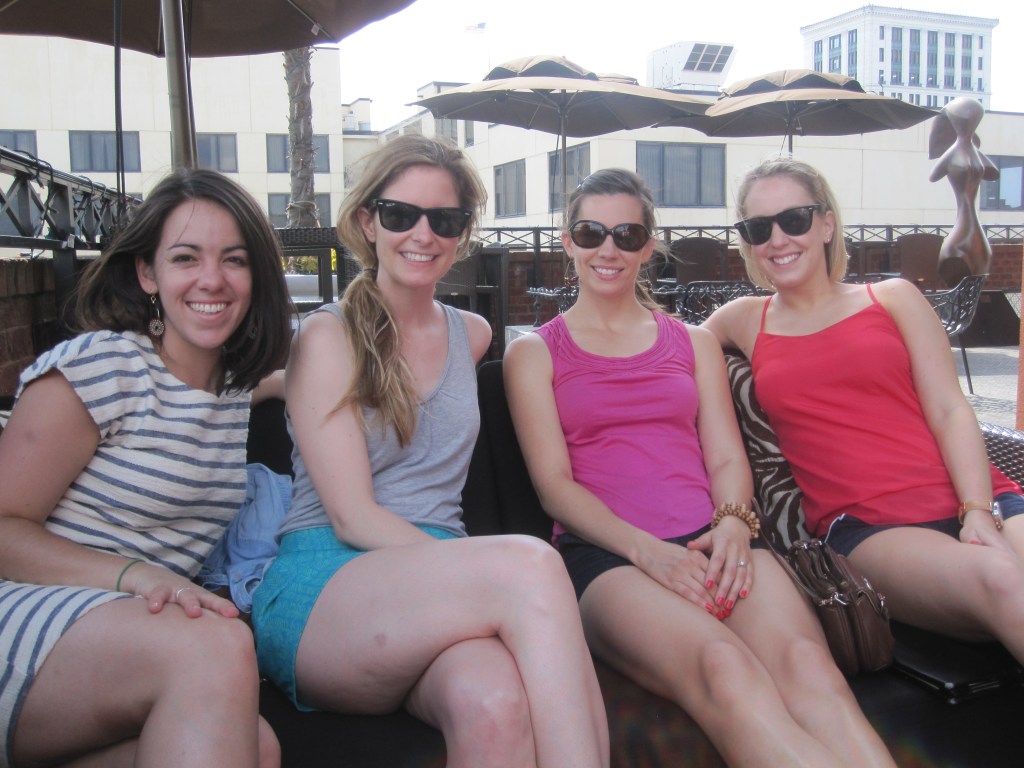 Day 3: Up early again despite trying to sleep in a little. Kate headed out first as she had an early morning flight. A shower and packing up everything before we all met up for brunch. We decided on a place down the block called B. Matthews. Great decision- my breakfast was delicious and the biscuit was amazing. After brunch we said goodbye to Caitlin so she could make her flight back to Houston, while the rest of us hung out in the hotel for a bit before we lost the room. Kristi and Emily headed out next to make the drive back up to NC while the rest of us went walking again along the riverwalk. We went back to the bee store where Julie, Colleen and I all got these cool lotion candles that when you burn them the “wax” is lotion that can be used. SO COOL. After that we decided to get some ice cream at Leopold’s. We’d passed it multiple times over the weekend but the line was always so long. We had lots of time before our flight so it seemed like a good plan. Peanut Butter cup ice cream mmmm. After that we decided to spend the rest of the afternoon at the social club in the shade enjoying water and beers. It was a lovely afternoon. Before we headed back to the hotel to head to our flight we grabbed sandwiches at Jimmy Johns since there wouldn’t be much at the airport. Thank goodness we did because we got stuck for about 3 hours due to crazy thunderstorms. It poured so so so hard before it finally let up to let our airplane land. We finally made it back to DC around 11:30pm. But despite the longer than planned last day I had an amazing time and am so lucky to have great friends to celebrate the wedding with. I can’t wait for the big day!!
