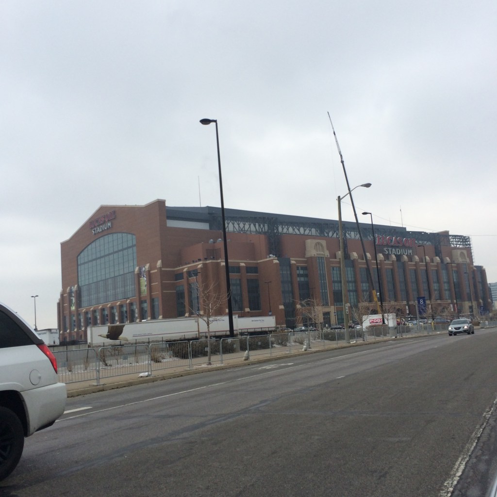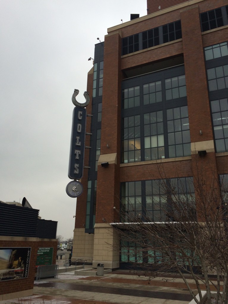 We left town on Thursday, December 18 pretty early in the morning. It was going to be about an eleven hour drive to our stop for the night Charleston, WV. The route to NC doesn’t have a lot of decent places to stop but we chose Charleston over Dayton, OH as it would meant less driving on Friday morning. I had noticed our drive was going to take us right by Indianapolis which meant we’d be passing by the Colts Stadium. A few years ago Jon and his brother had bought a brick for their family when the revamped Lucas Oil but no one had ever seen it in person. I thought this would be a good opportunity to try and find the brick and we’d probably want to stop by then anyway. Once we got to the stadium of course finding said brick was easier said then done. Their pro shop was open (IE a place to spend hours looking at Colts gear for Jon) and their staff gave me the number of the company who arranged the bricks. A few minutes later we had the location and found the Caldwell brick. After pictures of that and the stadium, we ventured back into the pro shop to see if their were any last xmas presents to buy before finally getting back on the road.