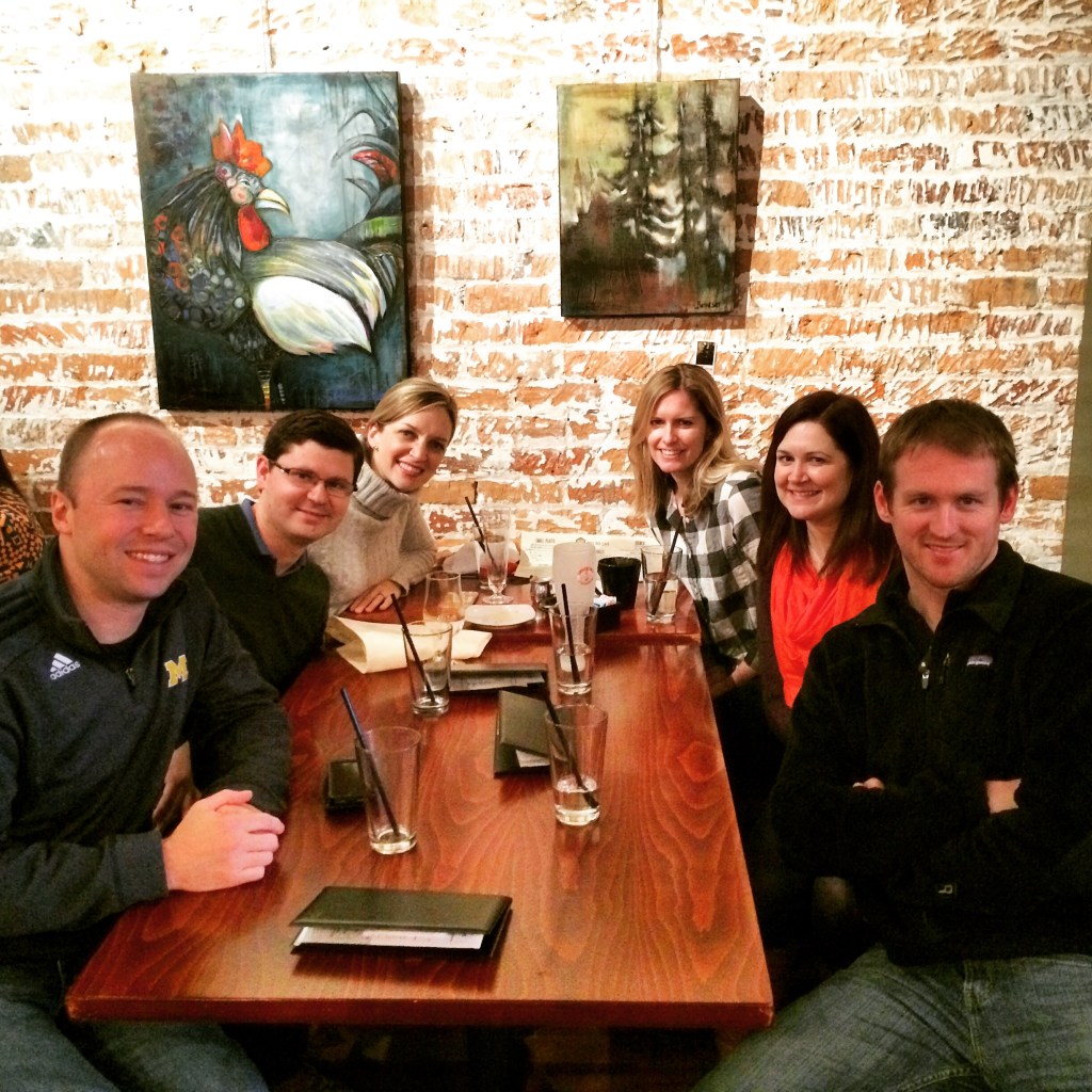 Over the new couple of days we had plans to meet up with lots of friends. First, we had lunch with Caitlin, JJ and their Kevins at Busy Bee. I had only been at night but their brunch food was delicious. And it was so nice to see everyone! We hadn’t all been together since our wedding (which was a whirlwind itself). We’re so isolated in WI that it is nice to be with friends and catch up on everything going on in each other’s lives. That evening we spent at Sawmill Taproom talking with Tim and Alison. Tuesday morning we ran a few errands and got Jon some nice free sweaters at Men’s Warehouse (thanks coupons). We met Kristi and Jimmy at Lime in Cary for a little Mexican grub and a lot of talking. Definitely miss having the bestie nearby!! We headed back to Sawmill again that night to meet up with Tim, Alison, Caitlin, Kevin and Tony. Such a fun night. On Christmas Eve we got up early to drive over to Durham to have hot chocolate and coffee with Colleen and Ryan. I’d never been in Parker & Otis before but it was so cute!! And we found more Cold Mountain Winter Ale (my new favorite winter warmer) so we had to grab some. We saw a lot of friends in three days but it was completely worth it – I miss everyone.