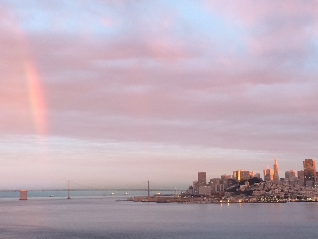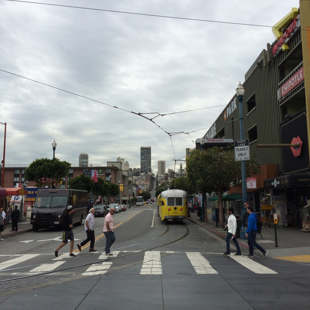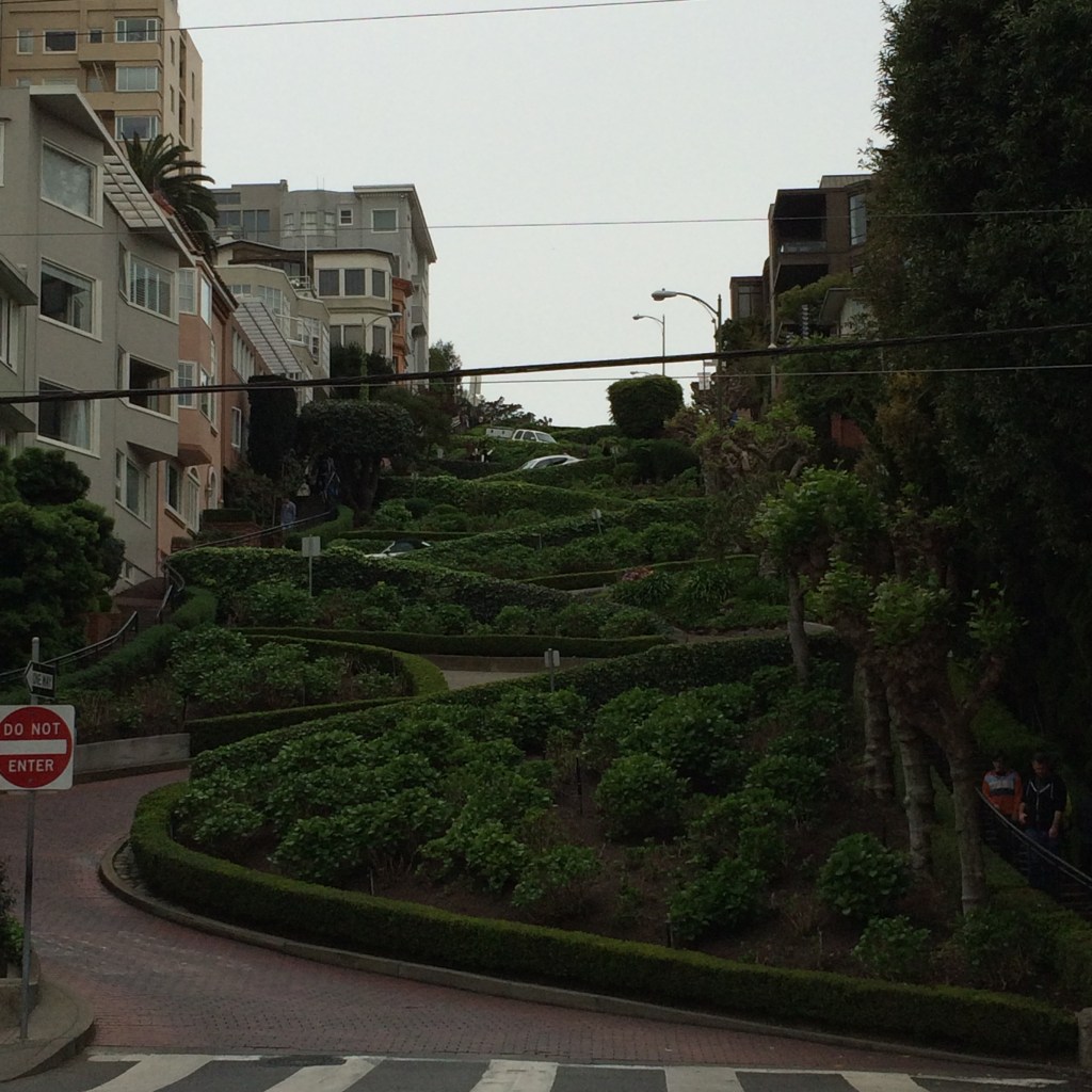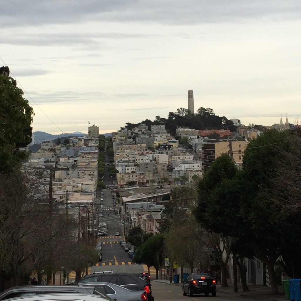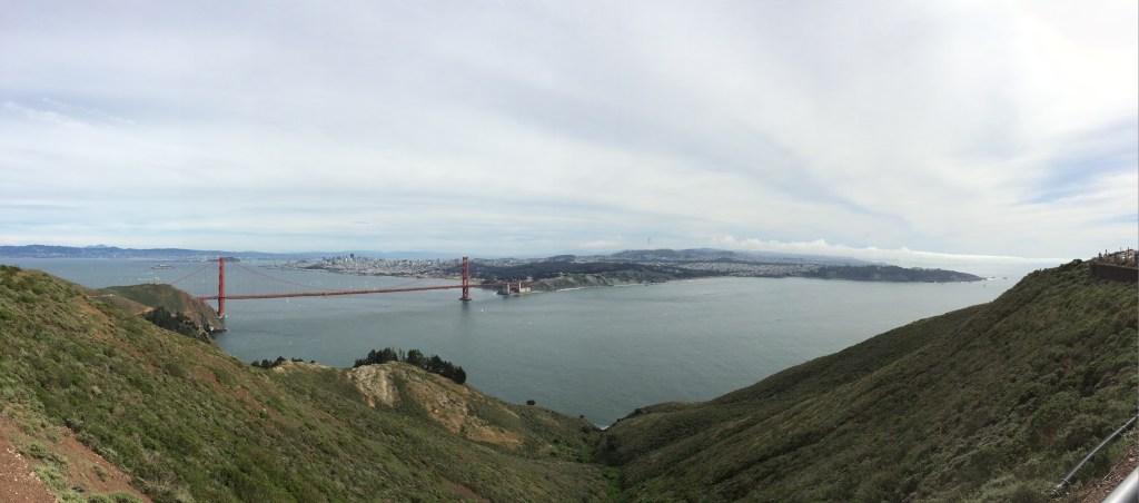 Day 2: San Francisco Day. We were up super early to get in a run- who says you can’t exercise on vacation?! Like so early, we watched the sunrise on our way back to the hotel. But we had big plans for the day and wanted to make sure we could fit everything in. Breakfast at Bel Apri is simply divine. They consider themselves a French Country inn so breakfast matched that sentiment. We had warm croissants with jam, fresh fruit, granola and yogurt, hard boiled eggs, and cheeses! LOVE. You’re welcome to eat in the lobby or you can take it back to your room as there are a set of chairs and little table to sit at. From breakfast we headed out to spend the day in San Fran. First stop was Muir Woods. I had heard the redwoods were beautiful and this was definitely true. We walked the well trodden paths and took lots of photos before deciding to head up the ridge to get a panoramic view. Holy up hill climb batman! I was sore for days after this. Lots and lots of wooden stairs to get us up that slope but we made it and the treescape was really really nice. After a much faster descent and a quick change of clothes we drove into downtown San Fran to spend the rest of the day.