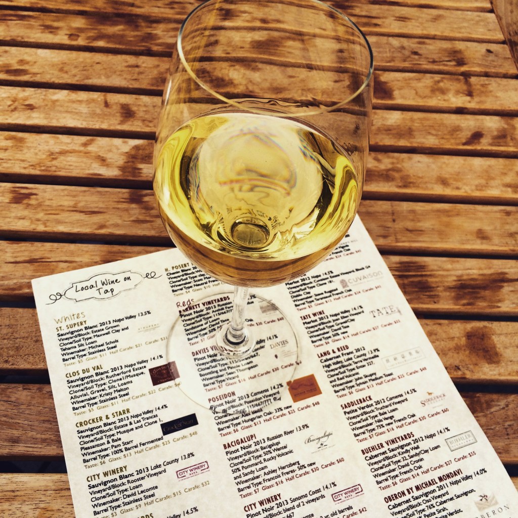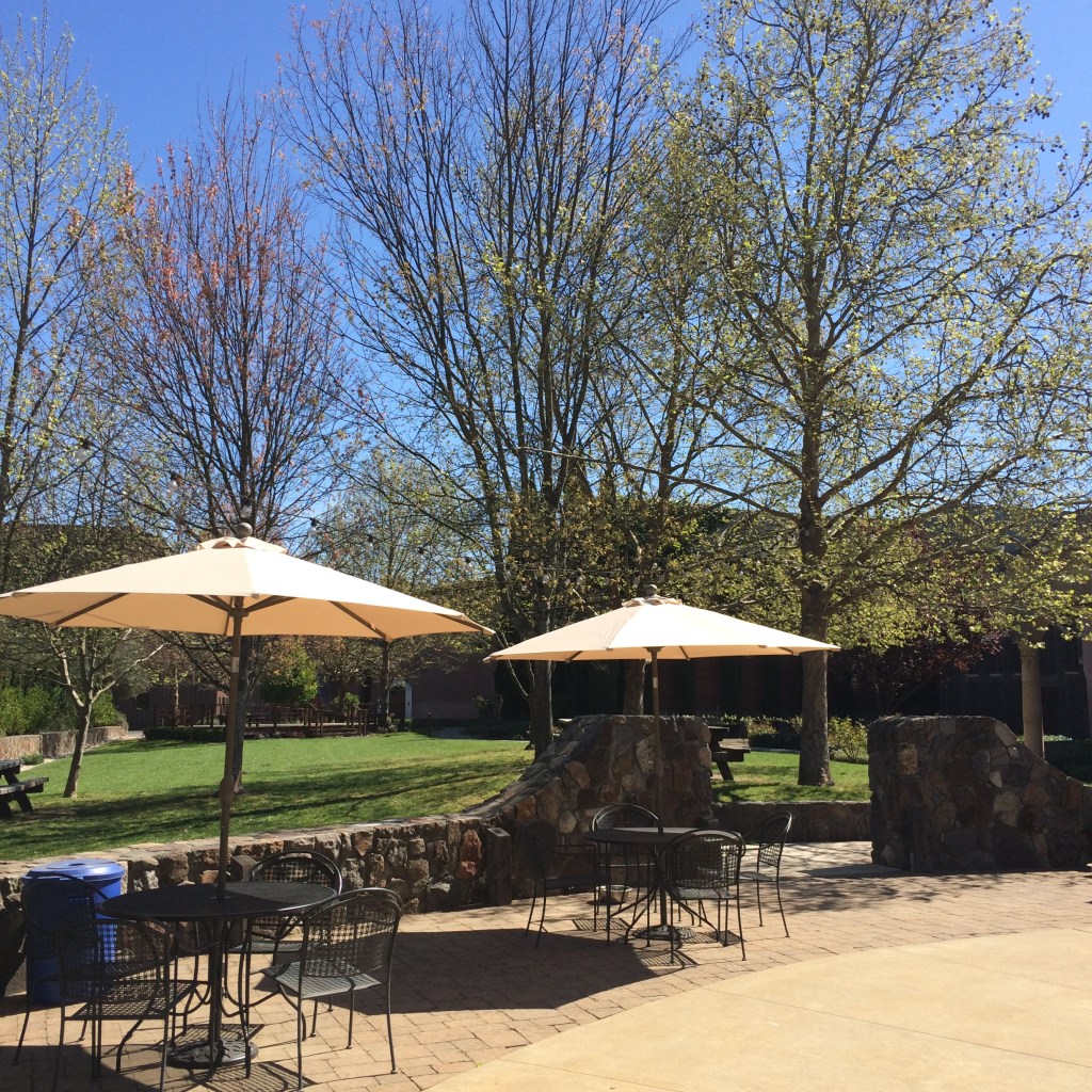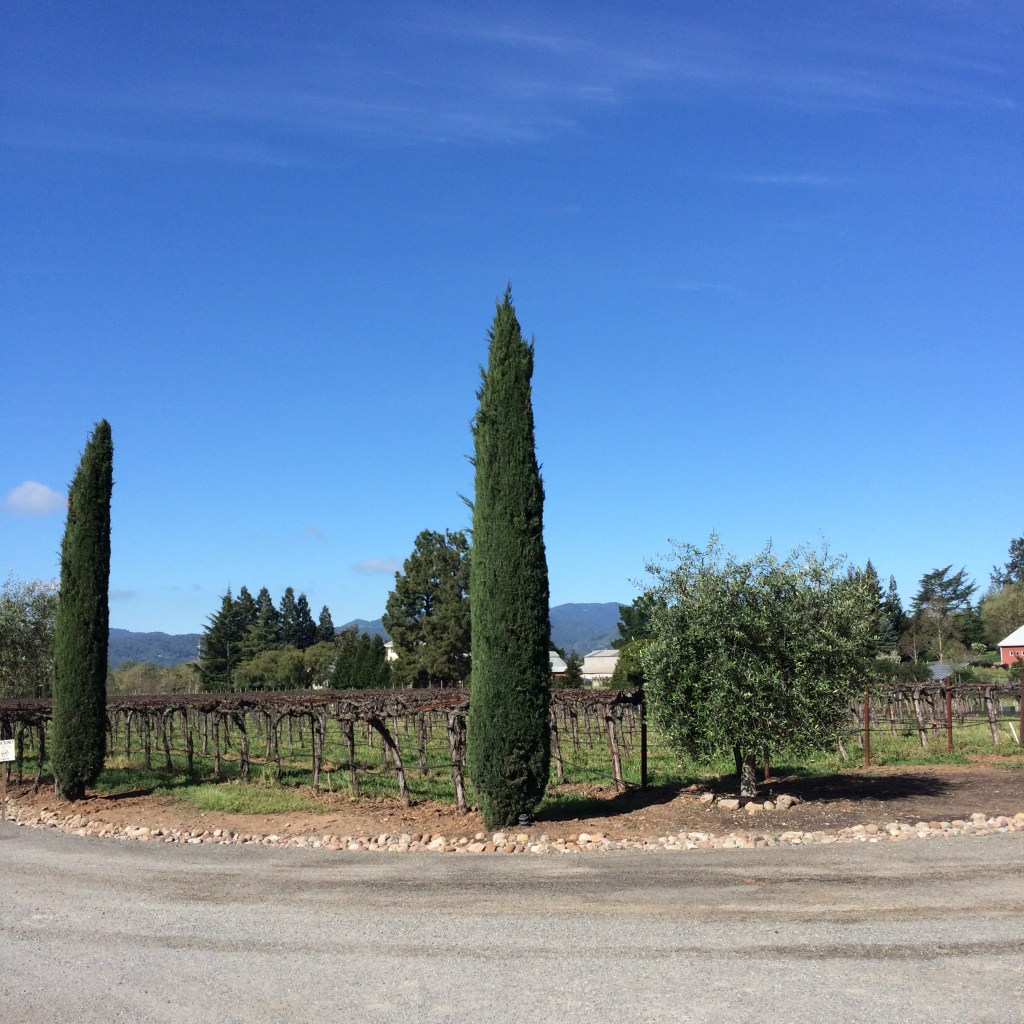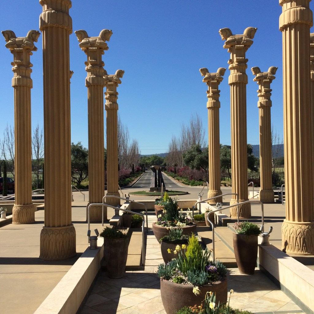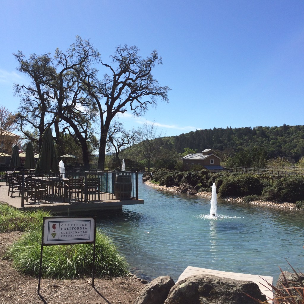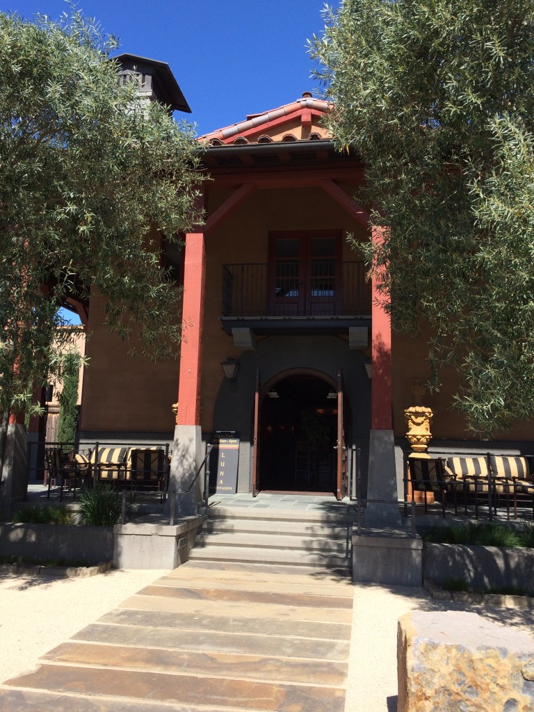 Let’s just start off with- Napa is beautiful. We were only driving in and the hills and greenery were so nice to see. Especially after being in white wintry Wisconsin these last few months. We pulled right in to downtown Napa and our hotel was right there! Easy walking distance to wineries, restaurants, the works. And lucky us we got there just in time for wine and cheese happy hour. Did I mention yet how much I like Napa? We got everything unpacked (free Ghirardelli chocolates in our room!) and then headed for a walk down to the river. We wandered around a bit (the river is there but drying up since CA is running out of water) before heading to dinner at City Winery. It’s located in historic opera house and with outdoor seating I couldn’t say no. I had a yummy poached pear salad and a side of roasted sweet and spicy brussel sprouts. And of course a first glass of Napa wine. So good. Jon went with a burger and had some beer (he did have wine later, promise). Oh and we finished off everything with some olive oil cake and caramel ice cream. Delicious. We headed over to Atlas Social after to buy a bottle of wine and relax. Our poison of choice was a Luna Sangiovese. I had never had Luna but I do like Sangiovese so we thought why not? It was also delicious and finished out our first night in Napa there.