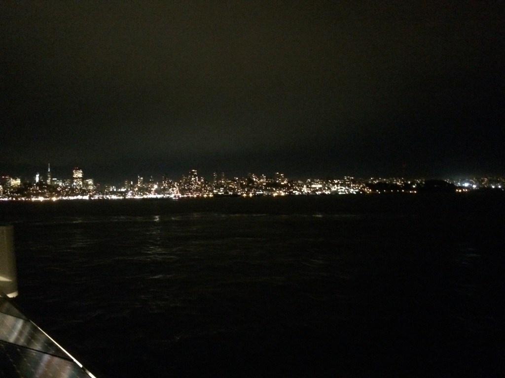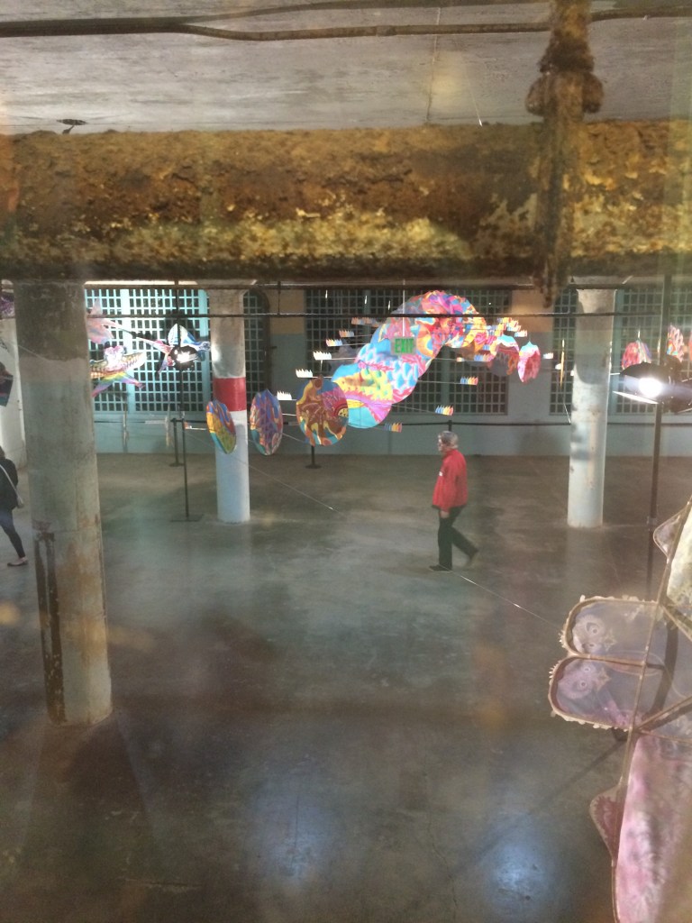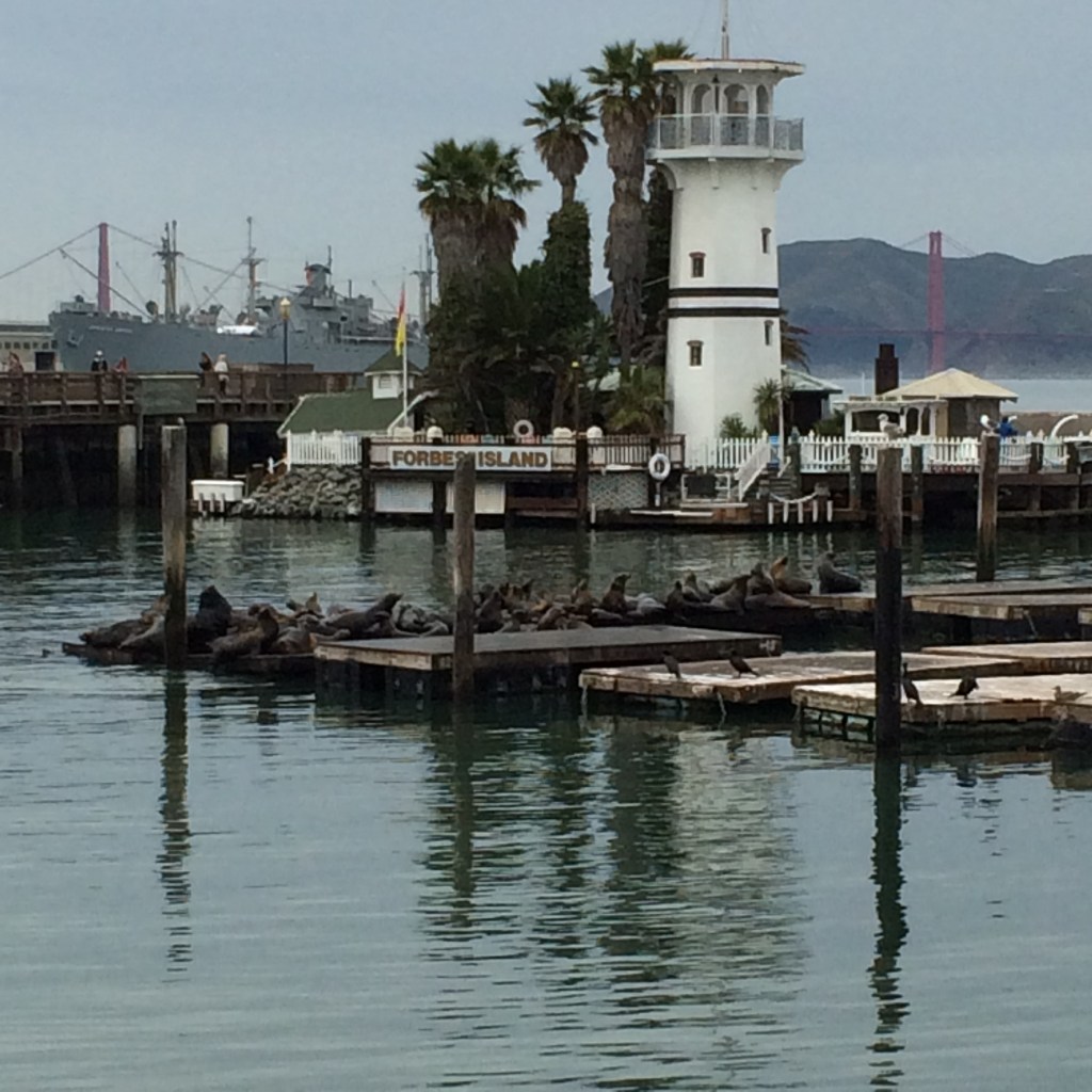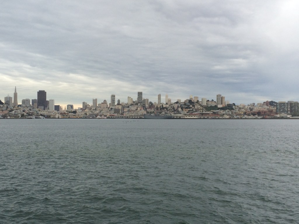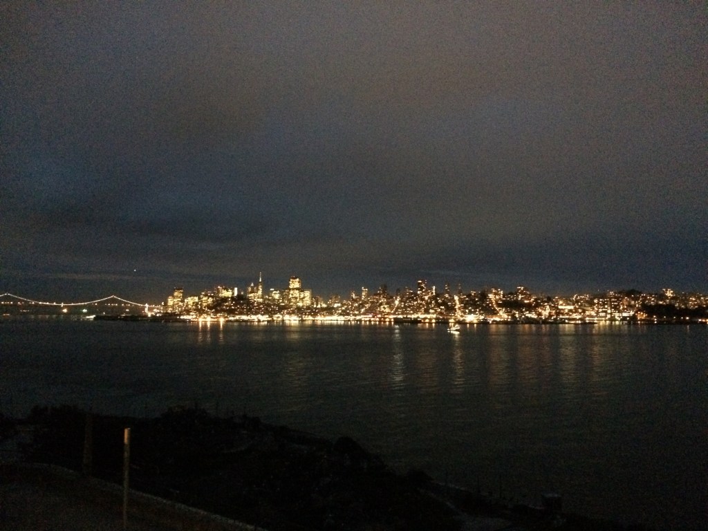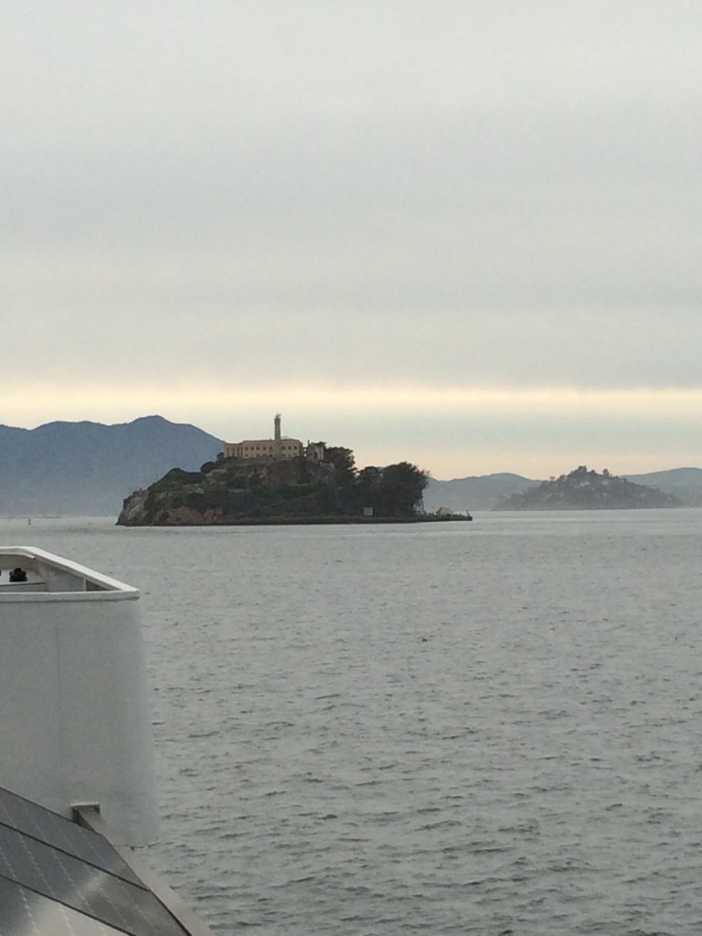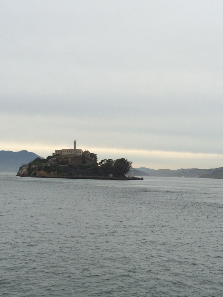 Another pass over the Golden Gate, maneuvering thru traffic and finding parking and we made it to the waterfront area! First stop (restroom) but then the seal lions at Pier 39. Very funny and so talkative! We decided on lunch at Boudin Bakery (home of delicious sourdough). We were starving from our hike and so plowed into the bread basket as soon as it arrived. I went with fish tacos (sourdough tacos!) and Jon had a crab cake sandwich. Super fresh seafood. We also tried out some local beer- Anchor Steam Beer for me and Red Trolley Ale for Jon. After lunch we walked down the waterfront and over to Ghirardelli Square. So much chocolate and so many people waiting in line! We got a free sample and then headed for the door (I would later redeem myself and grab some mini-chocolates at the airport). Then it was on to ride the cable car! Of course this line was also super long but definitely worth the wait. I got to ride on the outside holding on tight as we headed up the steep hill. We got off near the top before it turned so we could walk by the twisty turning Lombard Street. So many hills to walk up and down. And the crazy parking- I don’t envy those folks at all with parking. We made it back to our car (to move it out of the deck since it closed early) and then it was time for a nighttime Alcatraz cruise. Beautiful views and an out of this world sunset made for many many photos from me. Also Alcatraz is super creepy in the dark. The coolest part about the island currently is the Ai Wei Wei @Large art exhibit. I took a few photos of the different sections but between legos, kites and porcelain flowers it did not disappoint. Our final stop for the night was in Chinatown to have dinner. Potstickers, wontons and cashew chicken and I was a happy girl. Thanks San Fran for a great day!