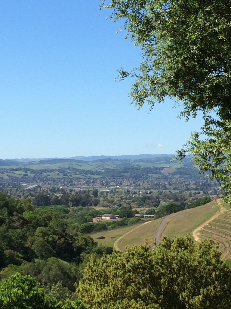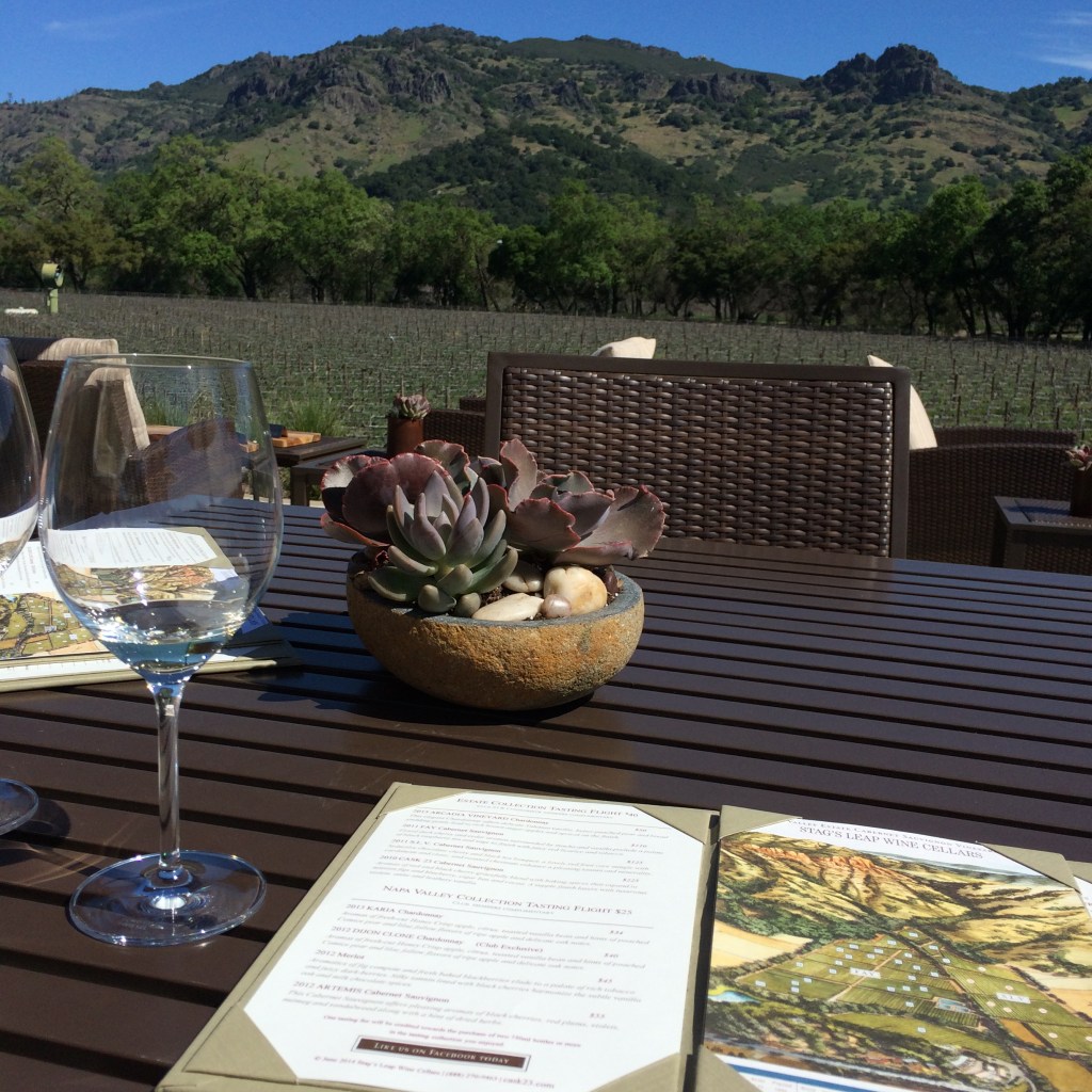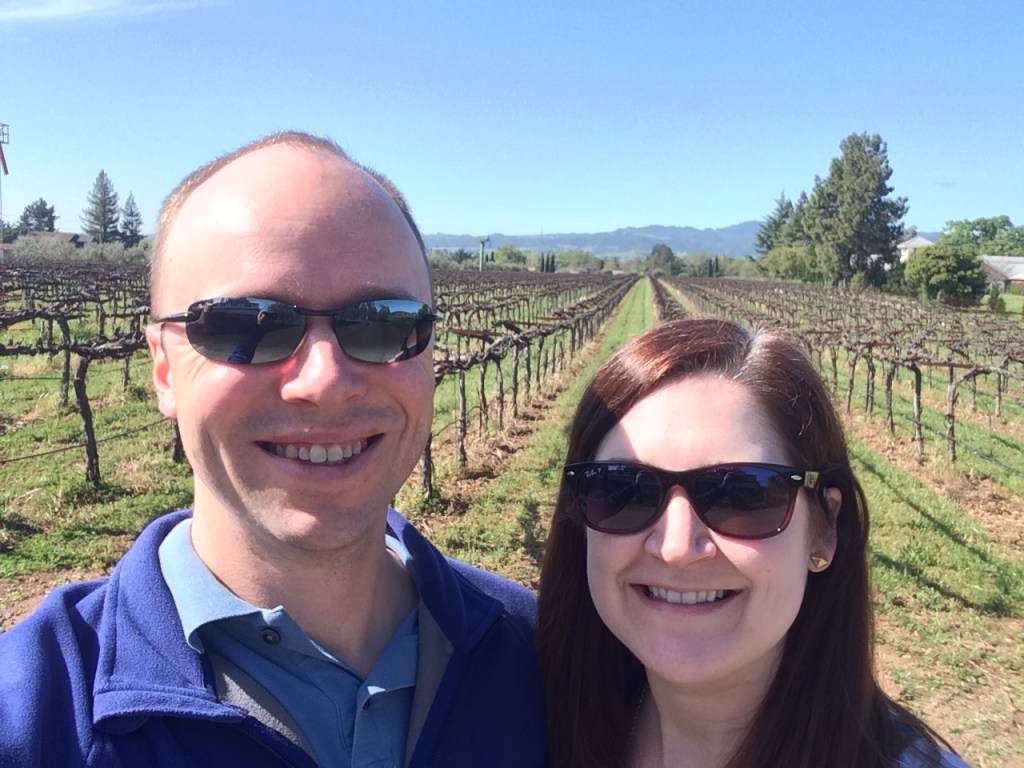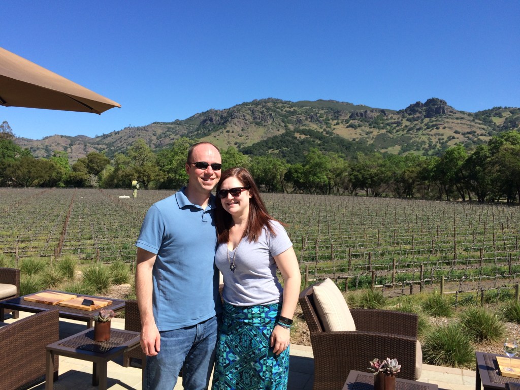 Day 3: Napa! After the previous day of hiking, hills and walking we decided to hold off our run which was good since we were both super sore. After the once again delicious breakfast, I looked over the Napa map, consulted our wine pass discounts and plotted out of plan of action for the day. We had big goals and made it most places. Starting off on the Silverado Trail we were first at Black Stallion where we tasted some really nice wines but being that it was our first stop we didn’t want to purchase right then. Next up was Hagafen Cellars– we purchased a bottle of Clarinet for Jon’s dad. It is a tasty Tempranillo and it had a clarinet on the label- we couldn’t resist. After there we entered into what felt like a Greek spa at Darioush to split a tasting. The atmosphere was really nice at this winery. Our final stop on the trail was up to Stag’s Leap. I didn’t originally have it on my list, but we were told to drive just a bit farther up the trail. And wow, what a view came with this place. We loved the view and we loved their wine so a few purchases were made! Our next stop took us to Luna. We had enjoyed their wine the previous evening and thought we should see what else they had to offer. We spent quite a bit of time here enjoying breadsticks, tasting good wine and chatting with our lovely Bartender who being from Wisconsin could commiserate with us. In my research I had discovered there was a Caldwell Winery– and the owner’s name was John. What are the odds?!! Unfortunately it was by appointment only, so we just stopped by to visit. Next time this will be on our list for sure! Our final stop of the day was to Falcor Winery where we had ‘green’ wine courtesy of Saint Patrick’s Day. After all of that, a nap was in order for me! A few hours rest and some In ‘N’ Out for dinner and I was back on track. Fantastic day in Napa!!