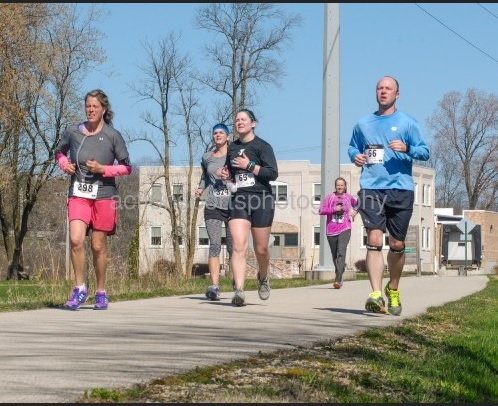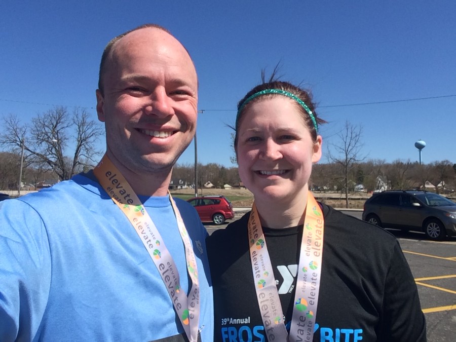 We arrived in West Bend on Saturday early afternoon to grab our packets. With the race being pretty early we didn’t want to make the drive that morning and so found a local hotel to crash for the evening. We got bright yellow (like highlighter bright) tech shirts for participating with Adrenaline Races. Jon’s already worn his out and I’m sure he glowed the entire time. We had some time to kill after our packets so we wondered around downtown West Bend and found a good place to have brunch the next day after we were done. Their downtown runs long the Milwaukee River so there were some pretty views and we walked a bit on another section of the Eisenbahn. We decided to drive just down the road to Port Washington and see Lake Michigan from this side. It was so windy!!! Then it was time to have one last carby dinner before the race. We opted for the Braising Pan, supposedly one of the local hot spots. The food was pretty on point- I had a delicious grilled chicken salad with strawberries, cashews and avocado. It was so good and I need to recreate it for myself! After dinner we got everything ready for race morning, watched a little tv and then off to sleep.