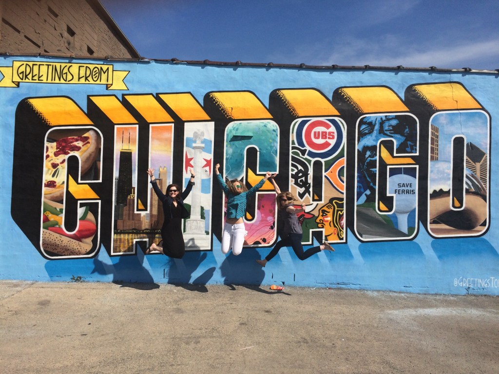 There had been talk of having a good Chicago hotdog so we left the festival for a bit and wandered over to a nearby hotdog joint. It was a quick and tasty snack and on the way we found an awesome Chicago mural that of course meant photos- especially jumping ones! After we headed back to the festival to see what music was playing and the ladies each purchased a cute necklace. Twas a lovely afternoon. Then we got a suburban uber to take all of us back to the condo to relax and start cleaning/packing up. The girls walked over to a nearby thai place to grab dinner and then we spent the evening playing more celebrity. Unfortunately- the boys just couldn’t cut it and the girls won again!
