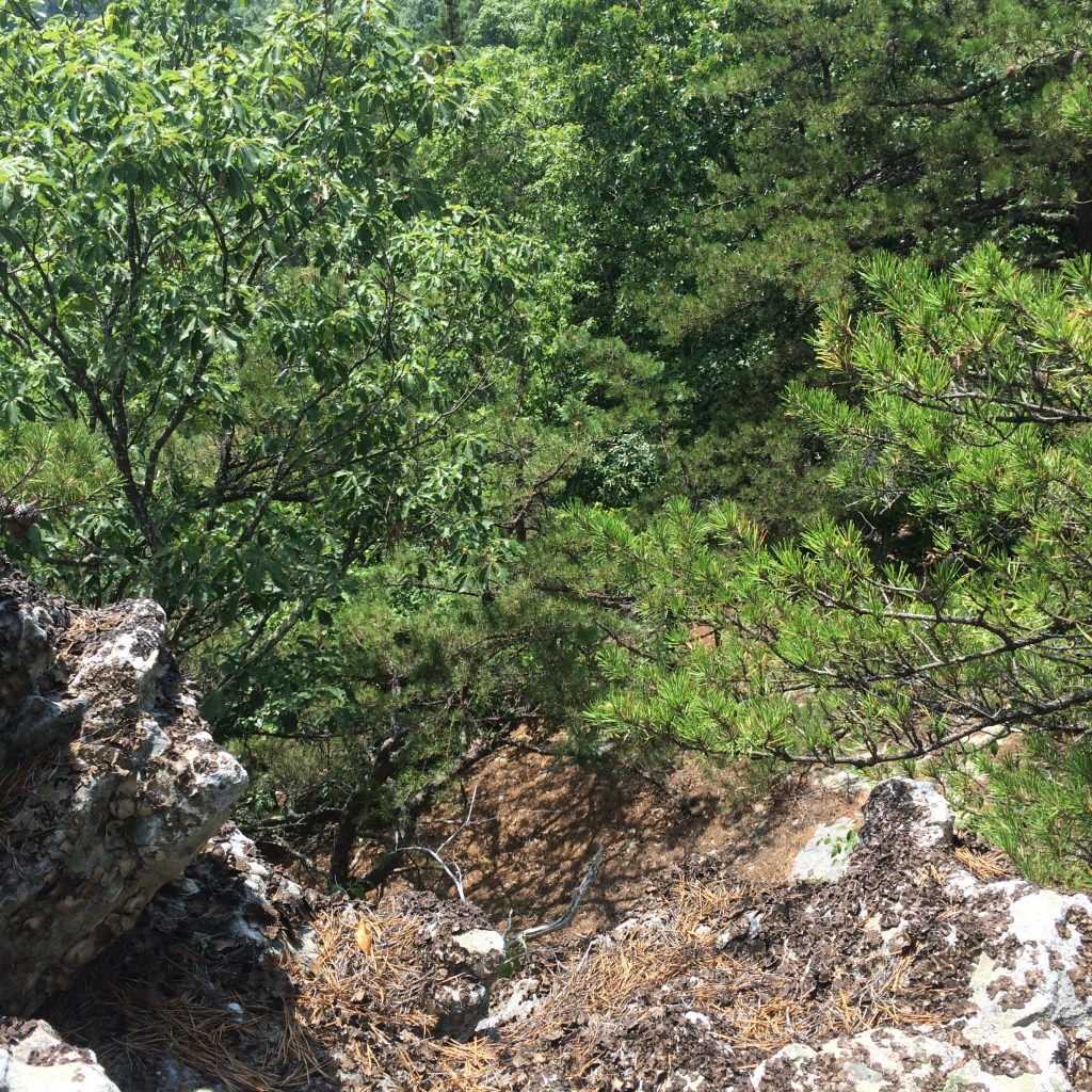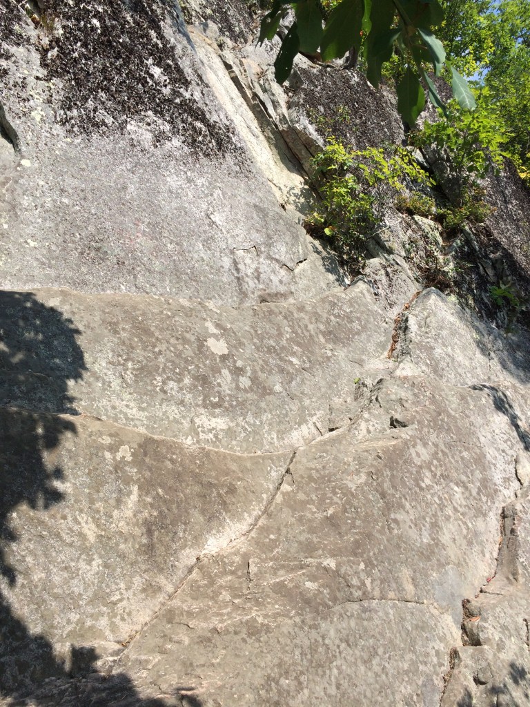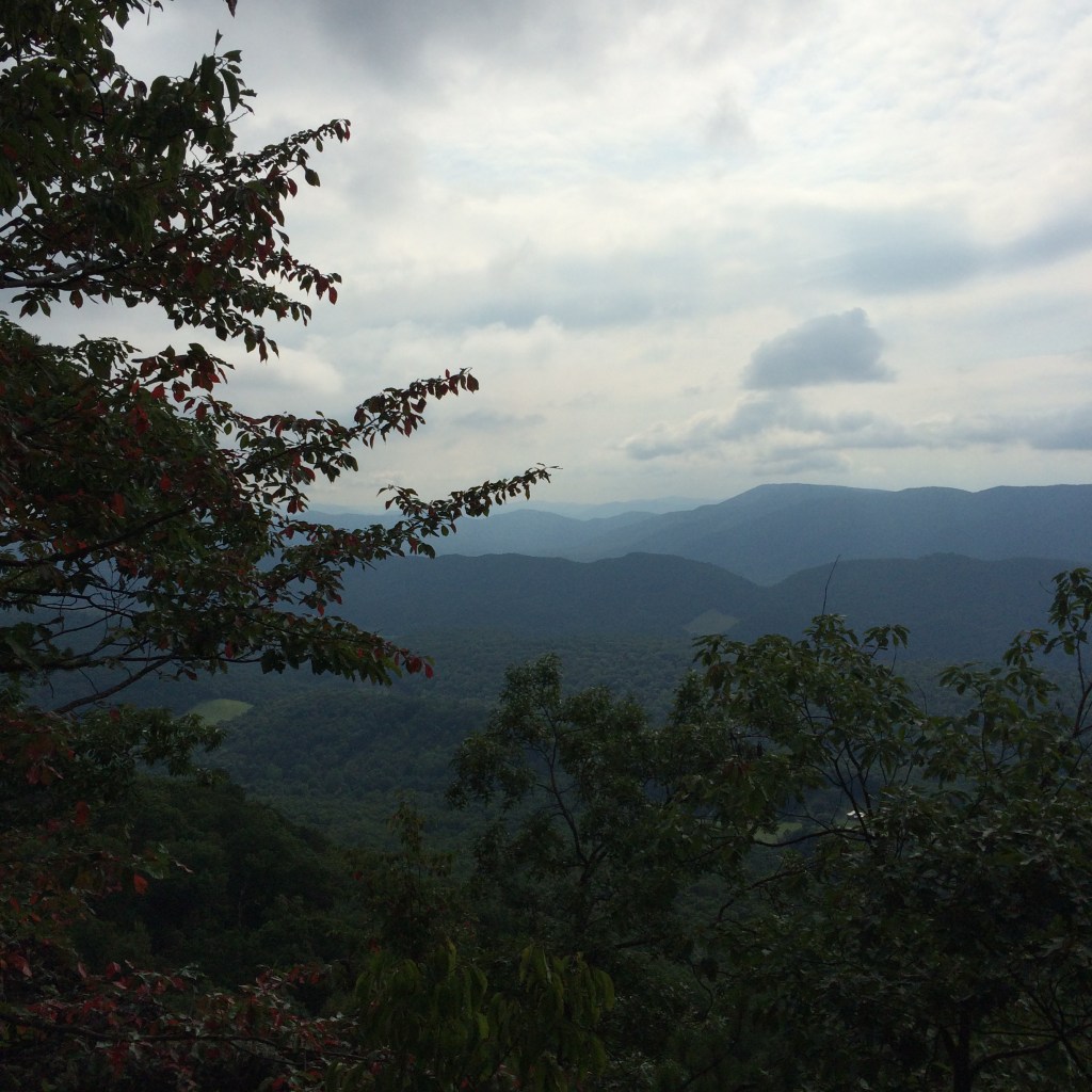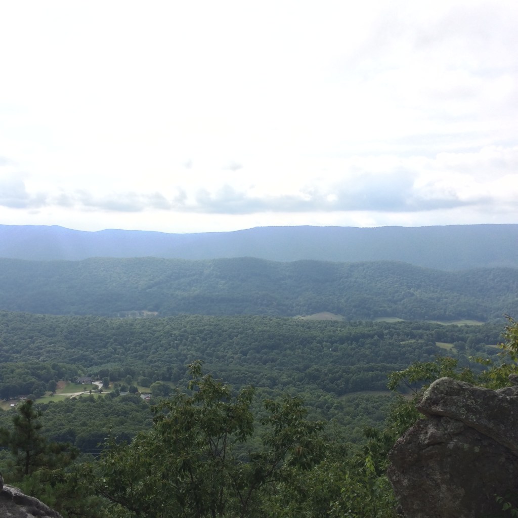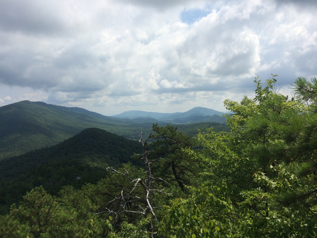 We drove about 35 minutes from our place to a trail access off VA 311 near Catawba. Thankfully they had restrooms (albeit not flushable ones- but I’ll take it). In order to access Dragon’s Tooth we had to climb a trail to the Appalachian Trail. Now it was pretty rocky but not too difficult to maneuver and after about 1.5 miles we made it to the AT connection. There were campsites as this spot so we took a quick breather, had some water and stretched before taking on the next section. Now the rumors were that this part of the AT– on the way to Dragon’s Tooth– was the most difficult stretch. I thought it was the most fun, if not a little terrifying. We started along the trail and all seemed fine and then suddenly we were climbing over rocks, using small ladders to get us upwards, basically bouldering up the mountain. All parts awesome!! I was a little worried about how we’d get back down but hey we were still headed up at that point!