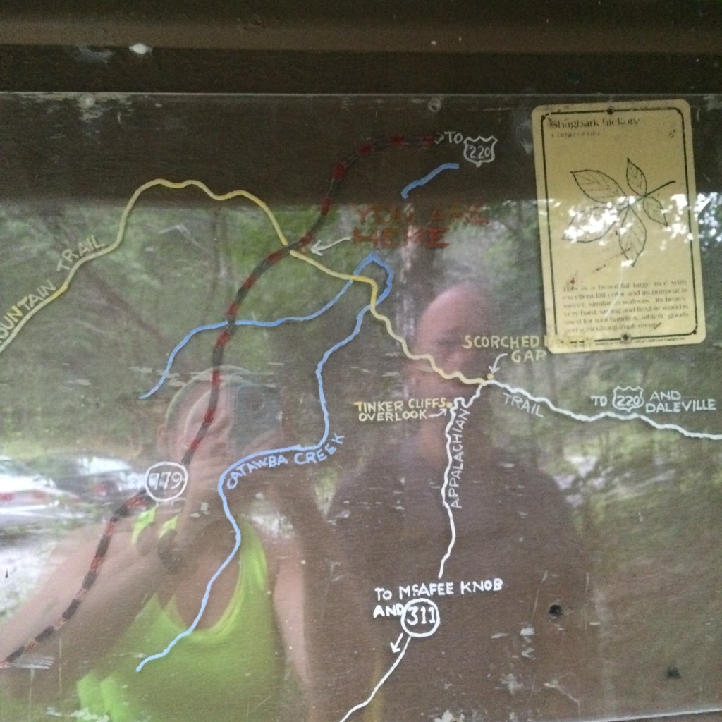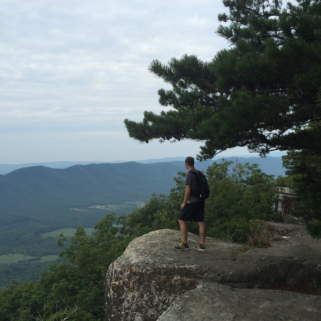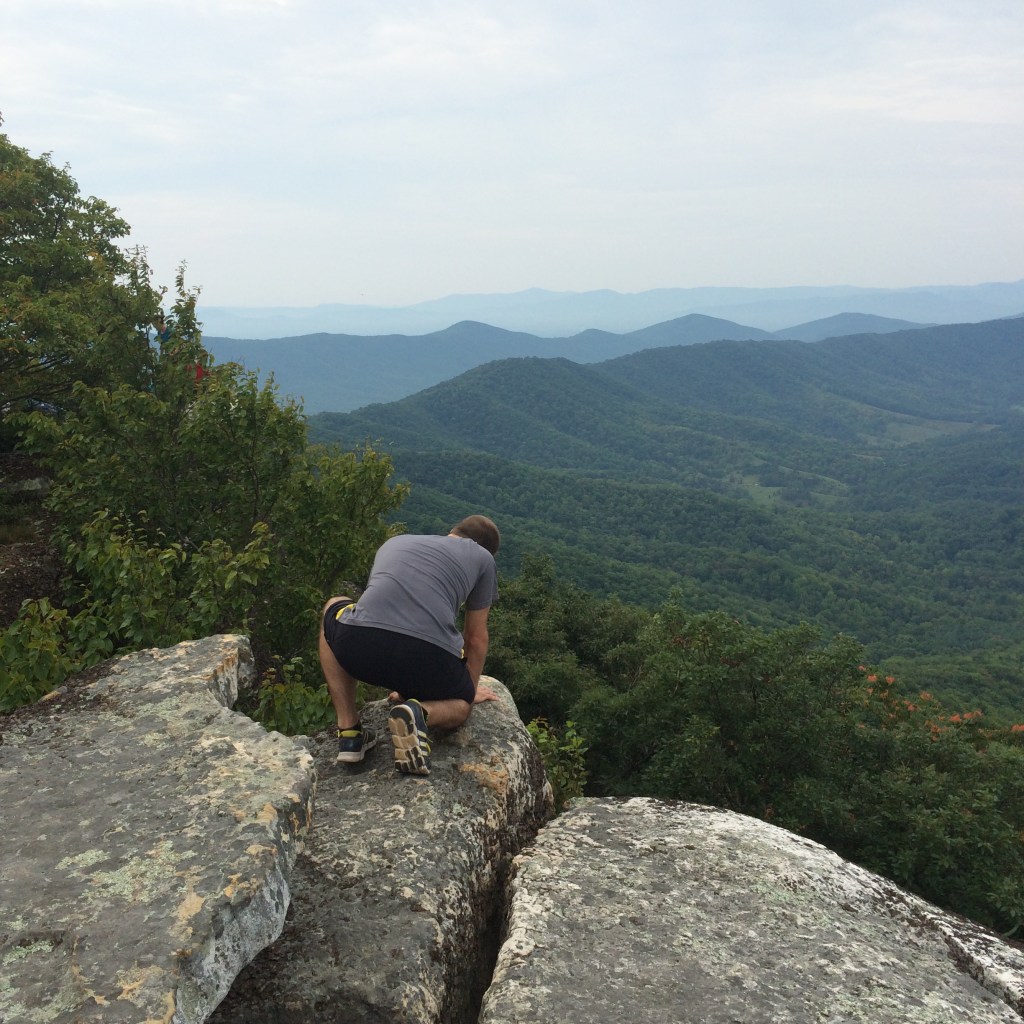 Troutville, VA | August 30, 2015 | Time to finish the triple crown outside of Roanoke, VA with our last hike: Tinker Cliffs. It was said to be the least hiked of the three (McAfee Knob and Dragon’s Tooth being the other two). To get there, you drive on back roads and then there’s a tiny pull off with some parking and a trailhead. You hike up the Andy Layne trail until reaching the AT to get to the cliffs.