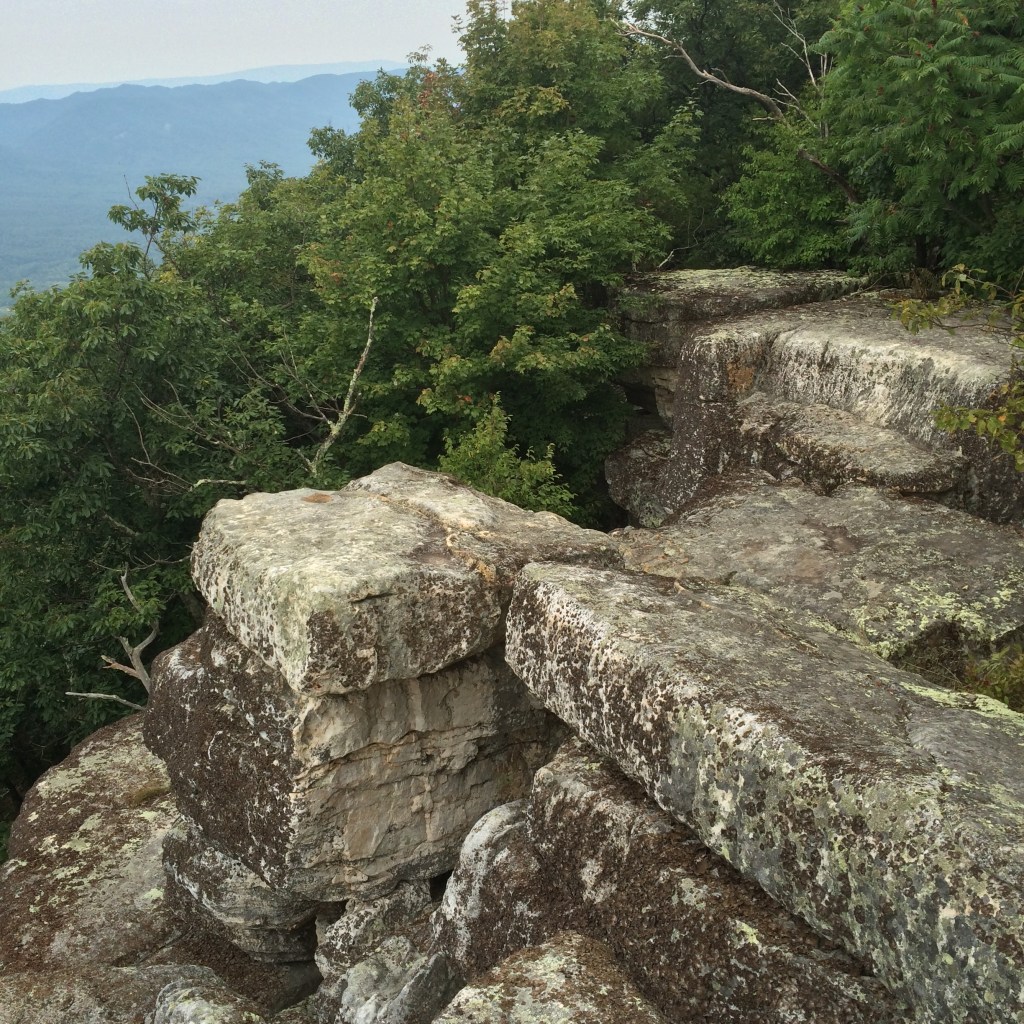 This was quite the uphill climb. We encountered a section of wooden stairs that I had read about online- they went on and on forever. Finally finally we got to larger rocks and then to the top of the cliffs. We weren’t exactly sure where the ‘Cliffs” were supposed to be because there was a huge section of rocky outcroppings that we scoured and took lots of photos on top of. The view as always was spectacular and we stopped for some refreshments and a rest before heading back down the mountain. Really it felt like over the river and through the woods! Was a nice hike but not my favorite of the three. Still had a great time!