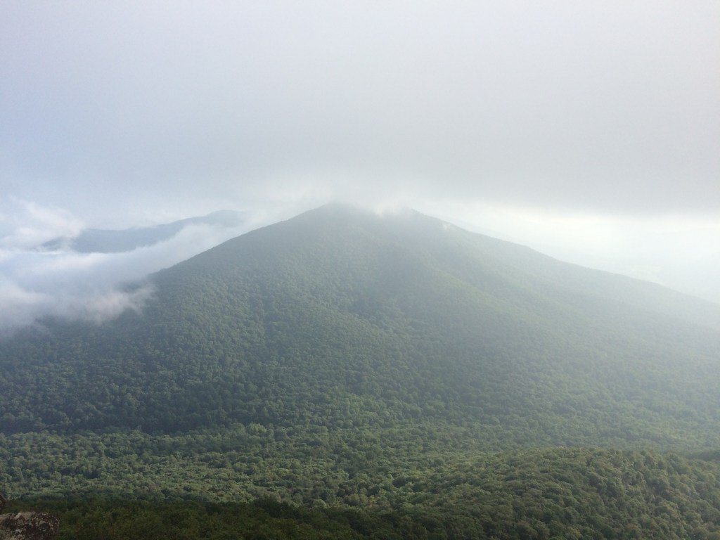 I have to say of all the trails we’ve hiked this part (Flat Top) was the worst!! And no view- no thank you. Sharp Top on the other hand was quite nice and we took some foggy photos!