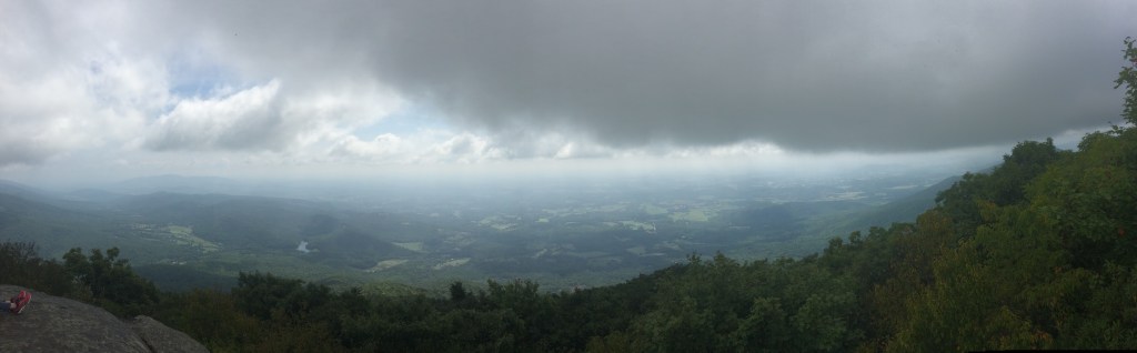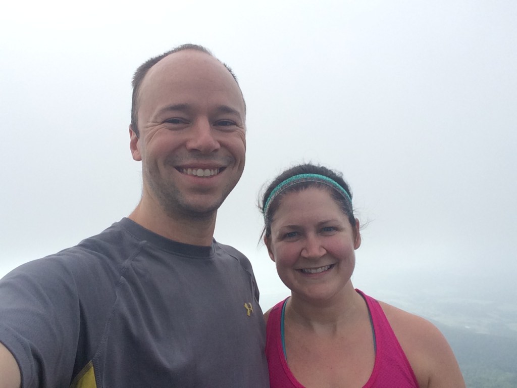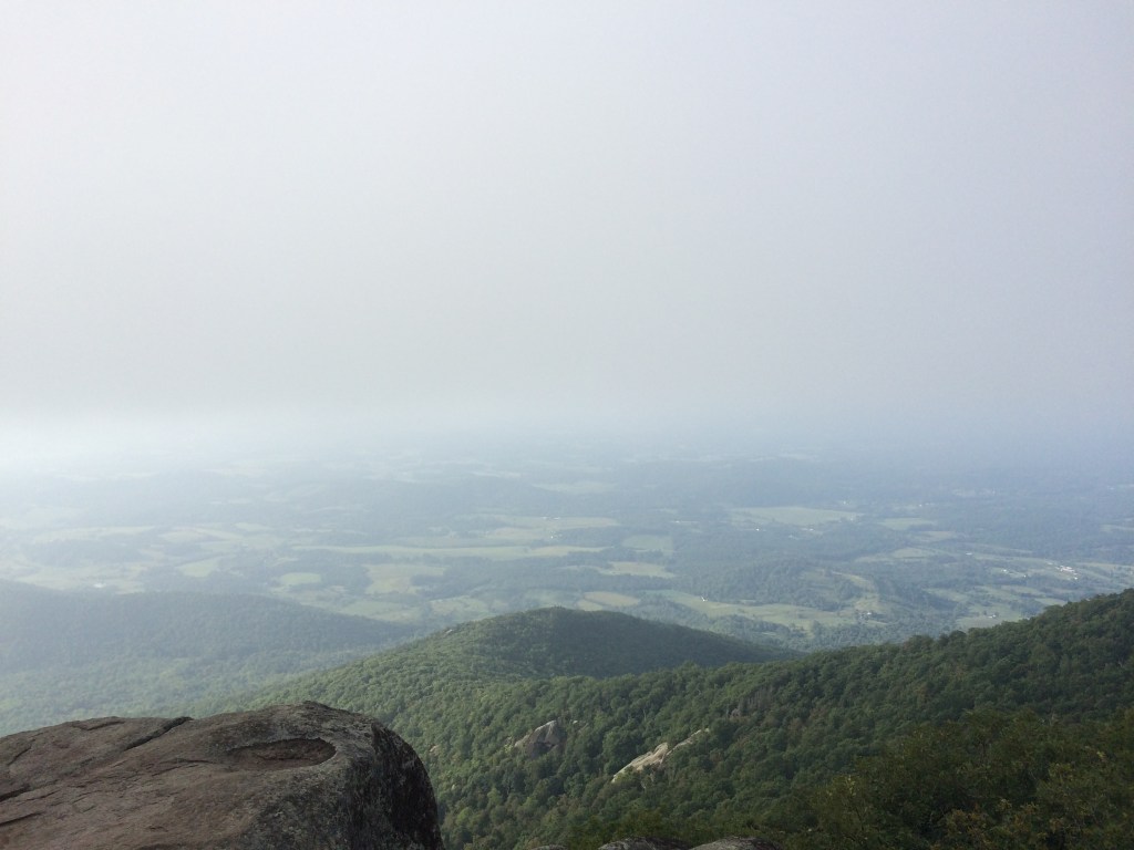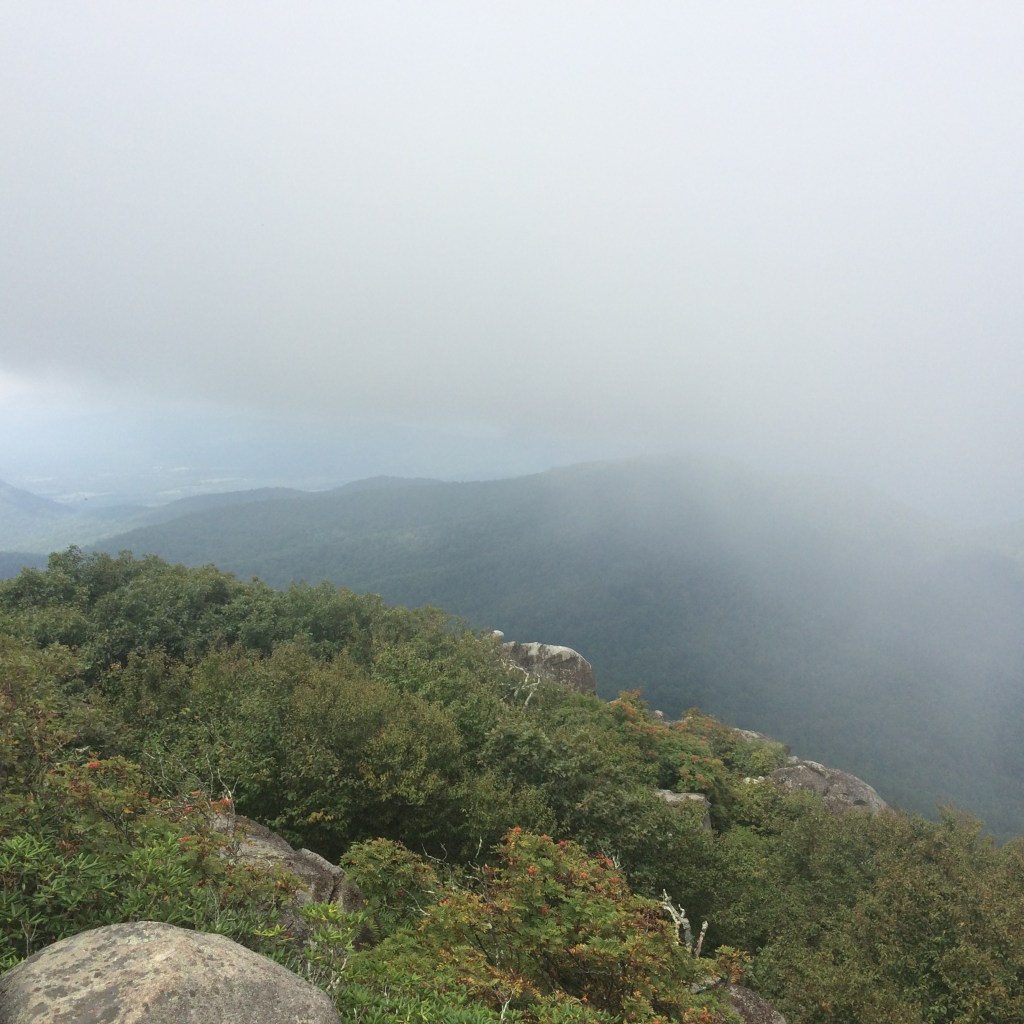 We arrived pretty early to the area- some of the first on the Sharp Top trail. I had read online that this was a pretty packed trail and to get out there early before all the people showed up. The trail was a steady up hill climb and ridiculously rocky. It was only 1.5 miles but felt much longer because of how rocky and steep it was. Finally we reached the summit and boy what a view. The ‘Sharp Top‘ was a bunch of rocky outcroppings that you could see a 360 degree view from the top. It was amazing but of course that day it was really foggy so we were up in the clouds. My pictures weren’t great but we’ll have to go back on another day to take clearer ones.
