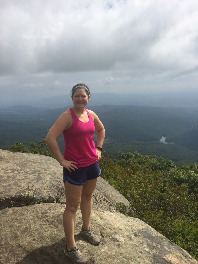 It took us no time to descend and then we took a quick bathroom break before opting for the Flat Top trail. Now we probably should have called it a day but I figured since we’d driven about an hour to get there we should knock them both out. Bad decision. Flat Top was a longer trail, harder to even find the beginning, full of switch backs and steep climbs. The kicker though was when we arrived at the summit there was just a sign but no real view. I was pretty angry. Luckily there were some locals who led us around to the other side of the path to get to some rocks to climb upon. It was pretty buggy at this point but we climbed up, took a couple of shots, ate snacks, drank nuun and rested. Then it was the long climb back down.