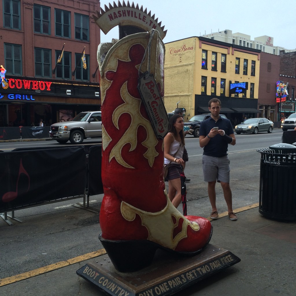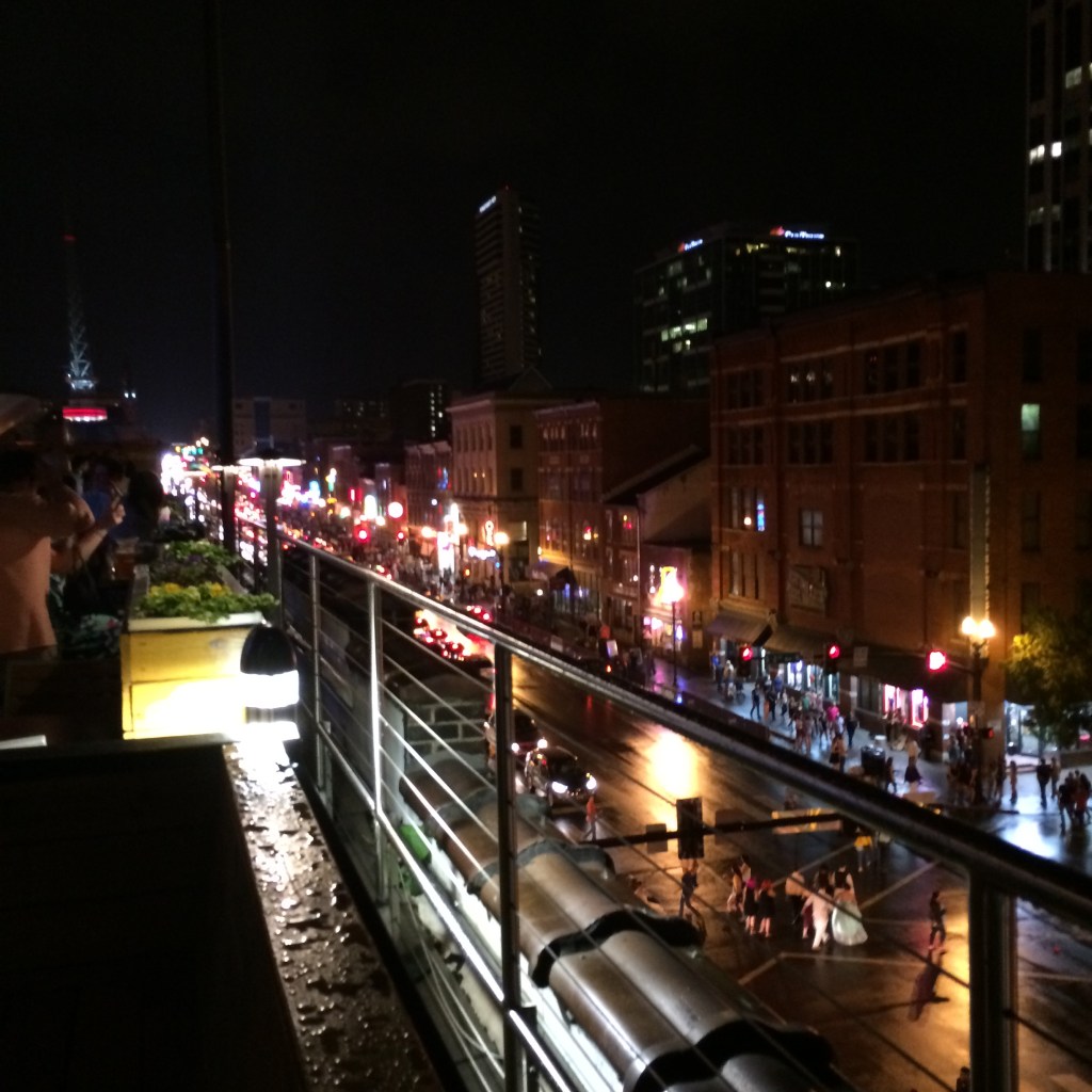 We strolled past the Country Music Hall of Fame and headed down toward the water. There’s a small riverwalk with a nice view of the Titan’s stadium and downtown in general. Of course it started to rain on us so we quickly headed back walking down Broadway (basically the main drag where all the Honky Tonks are). Gotta love indoor/outdoor bars with rooftops and the like. What a scene.