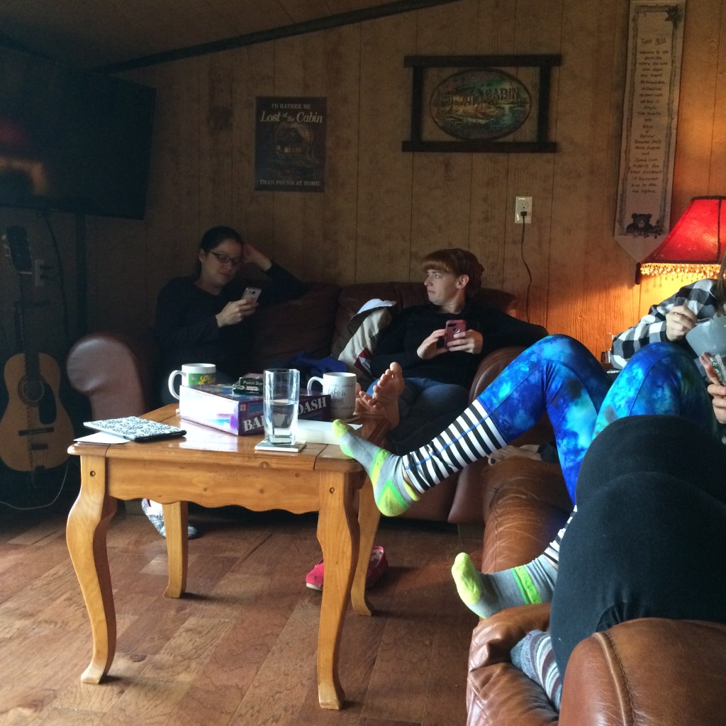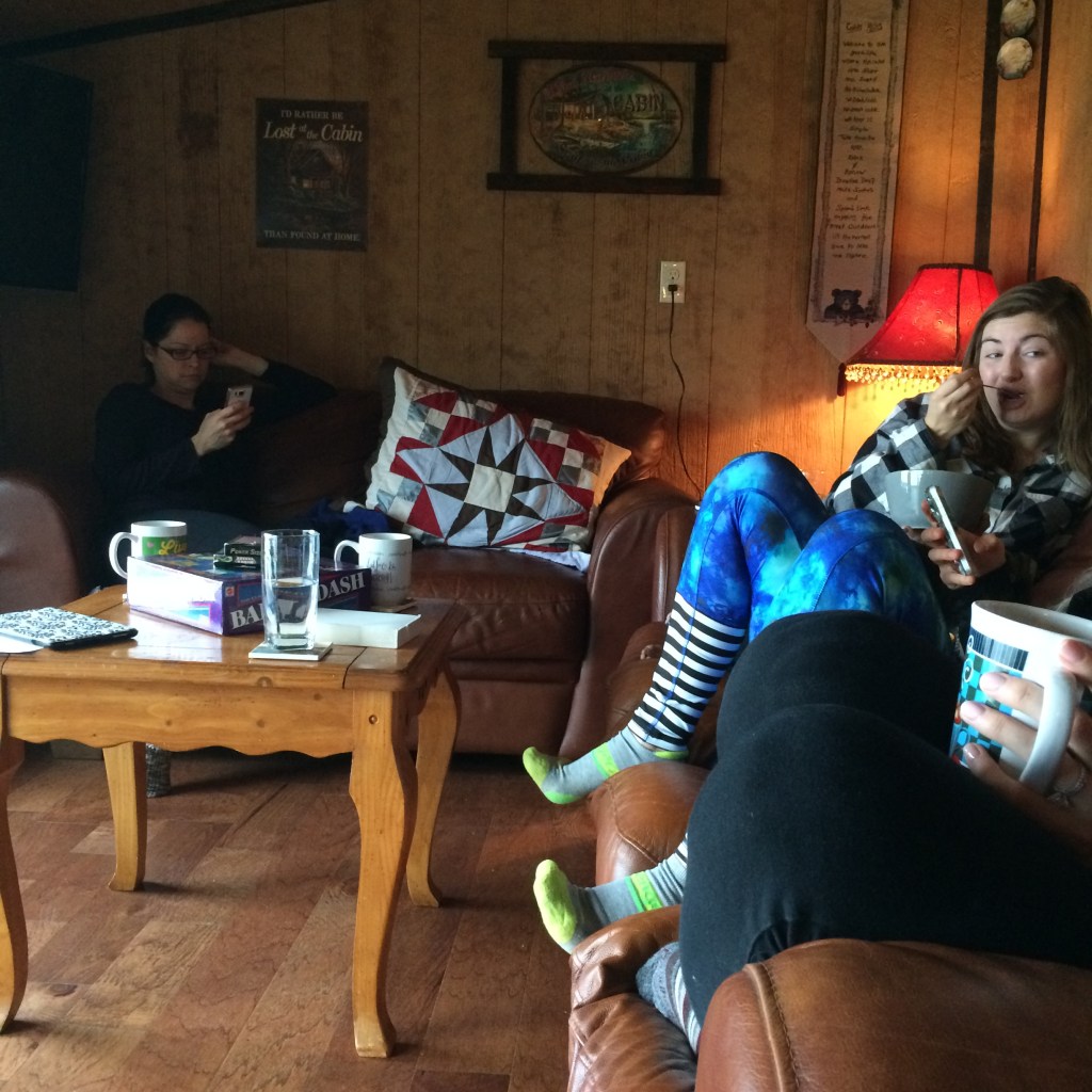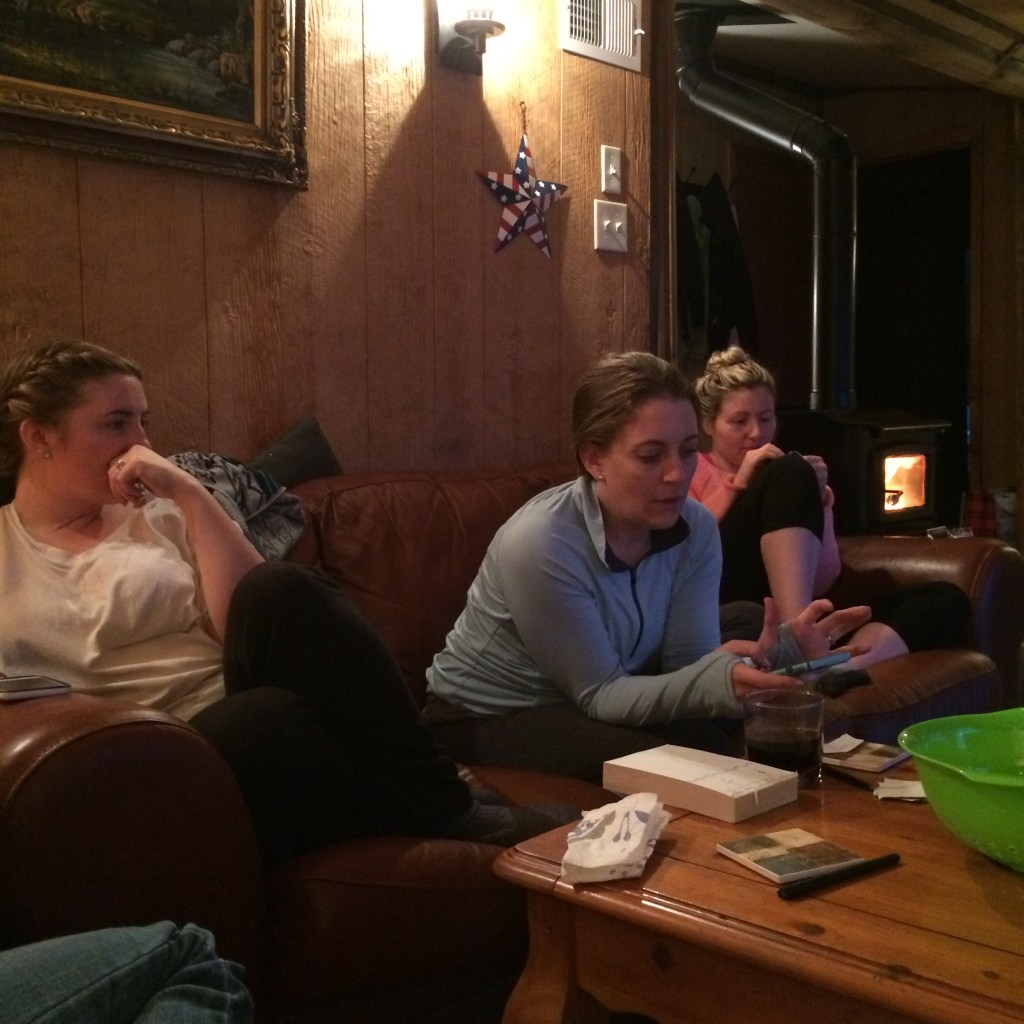 Day 2: We woke up to clouds. Like the cabin was in the clouds and we could definitely not see anything. We kind of did our own things for breakfast and slowly all took showers that morning. We had lots of catching up to do so it was kind of nice to be trapped. We broke out cards against humanity for morning festivities- also a hilarity with this gang. For lunch we did deli sandwiches and then it was time for telestrations! Such a fun game and we had a blast playing. I think after that we had some snacks and broke out the wine. I mean it was the weekend might as well. A few of the girls went walking on the road while the rest of us got our chili dinner ready. Then I broke out the GoPro for time lapsed celebrity rounds. Celebrity is always the best!!! And end scene on that evening.