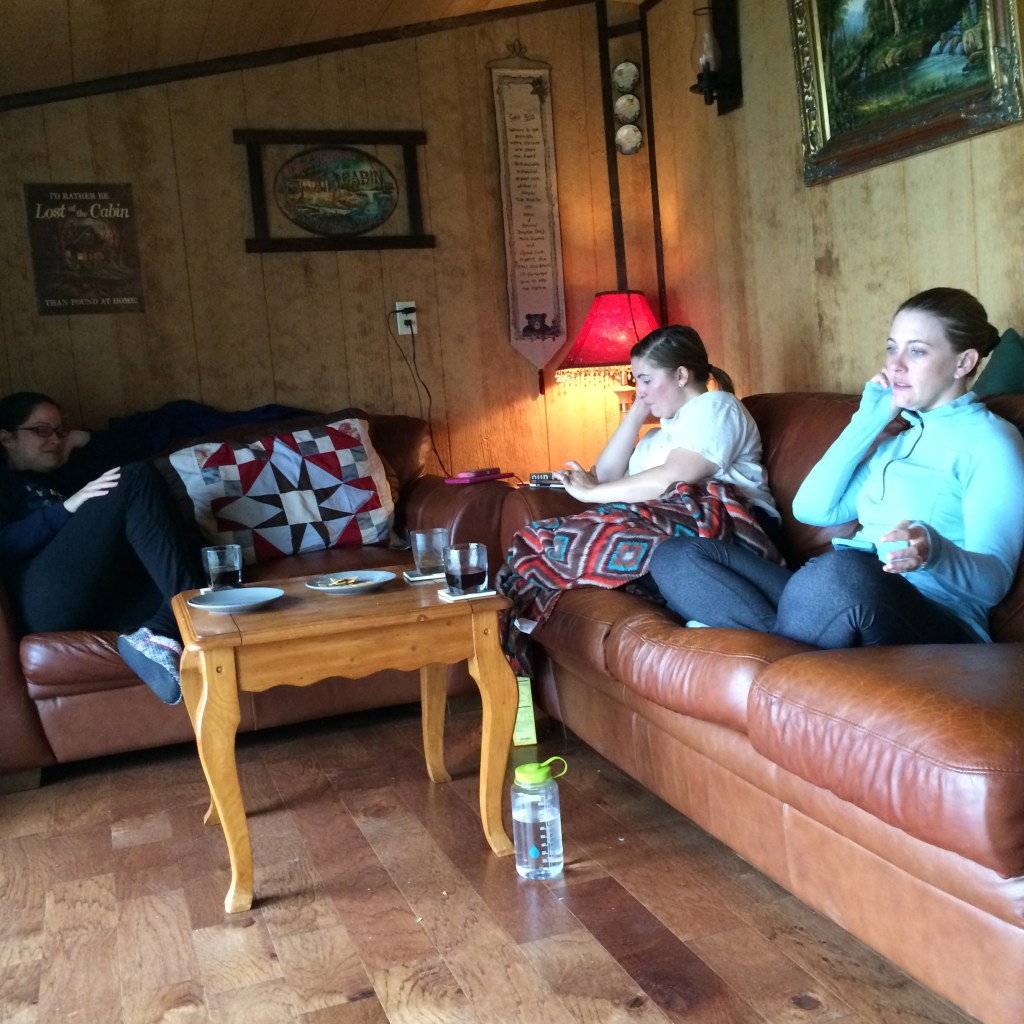 The weather ended up being absolutely terrible AND the cabin was up the most ridiculous road. Like I’m not sure how my car made it up the mountain ridiculous road. So with the weather being so bad (torrential rains for two days) we weren’t sure we’d make it back up the mountain if we left.