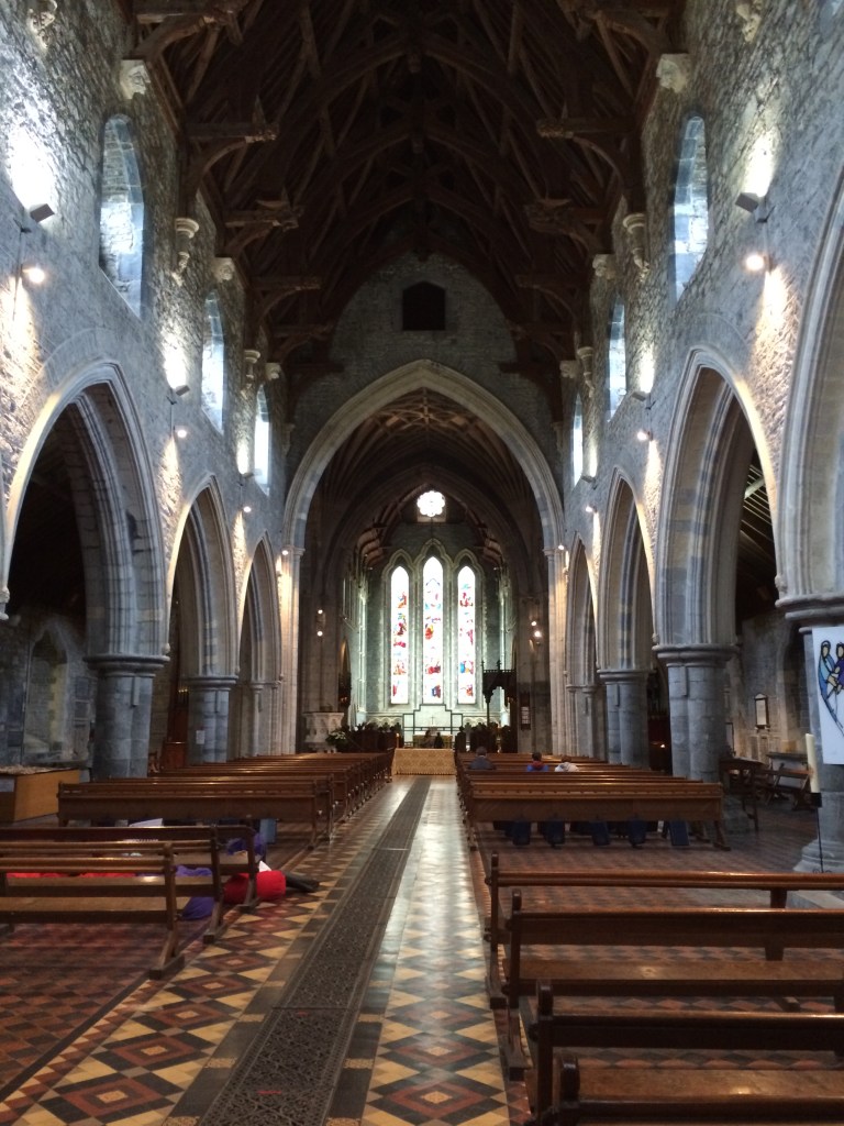 We had a couple of hours before we had to get on the road to our next location and so hit up the castle for some exploration and views of the town. It was incredibly ornate inside with lush rooms and paintings. We beat most of the crowds in for the day and so got to explore by ourselves and take our time. Our last stop in Kilkenny was back over to the cathedral but visiting inside. They gave us little maps explaining all the stonework and tombs. It was a very very old place with so much history. Jon was in his element. 🙂