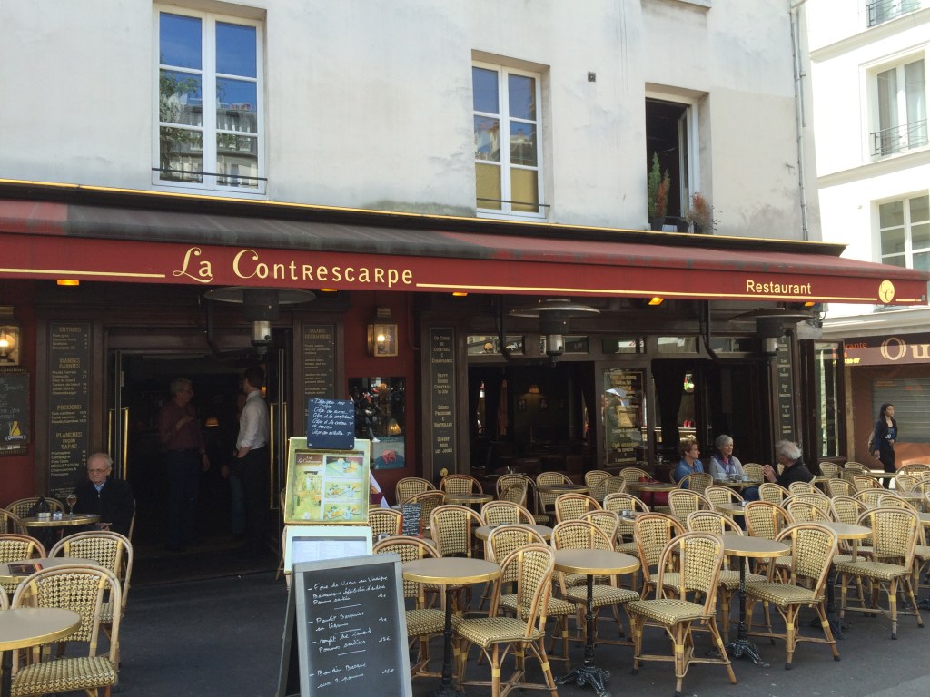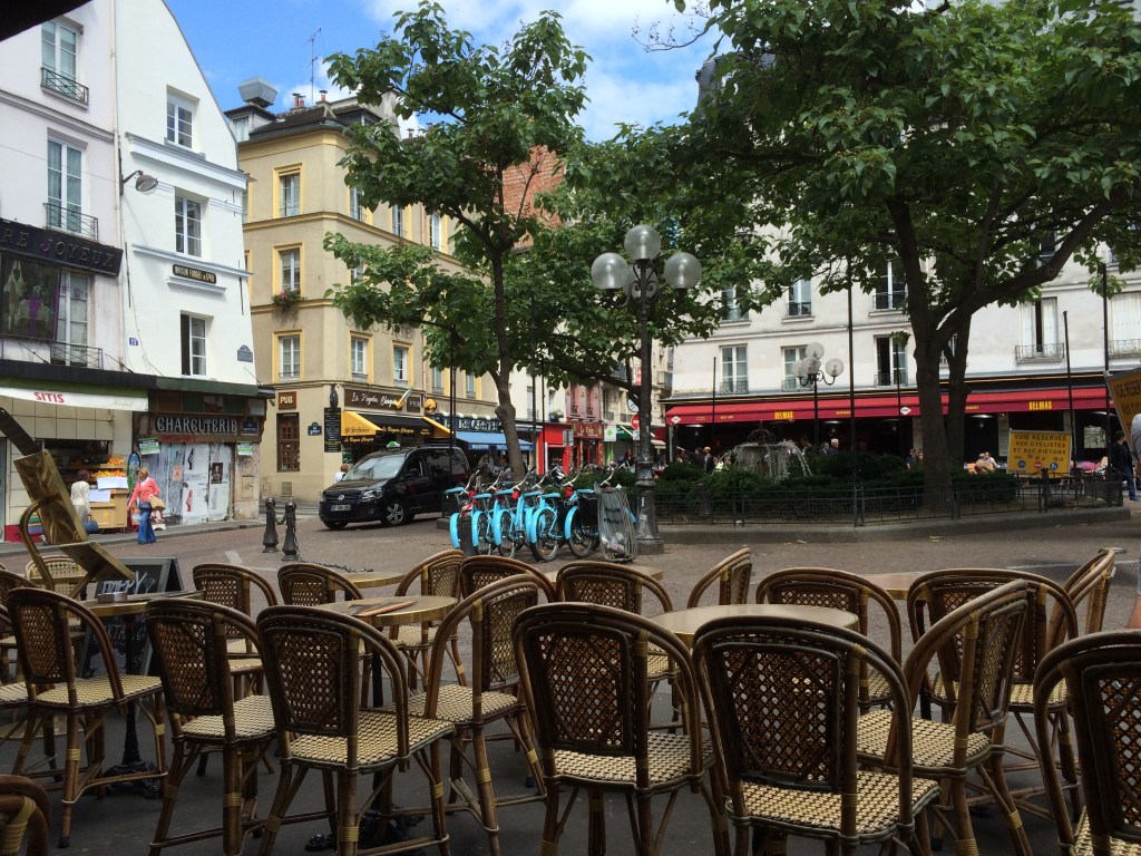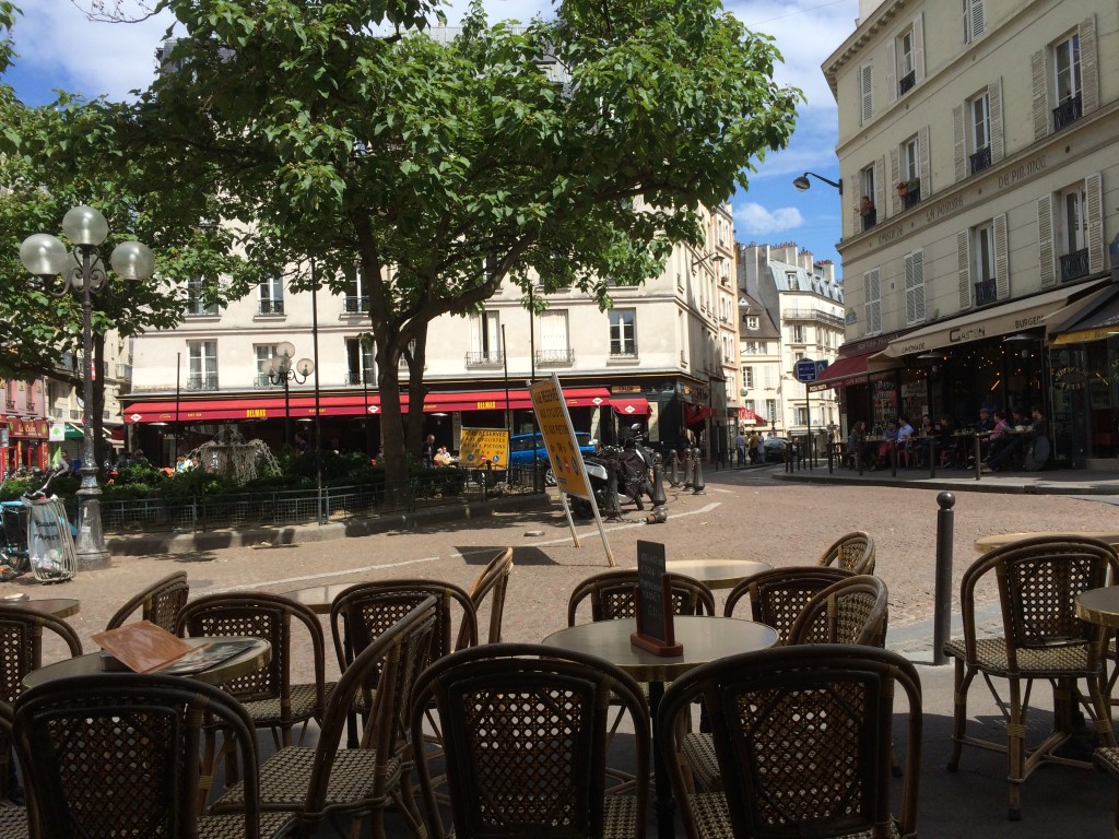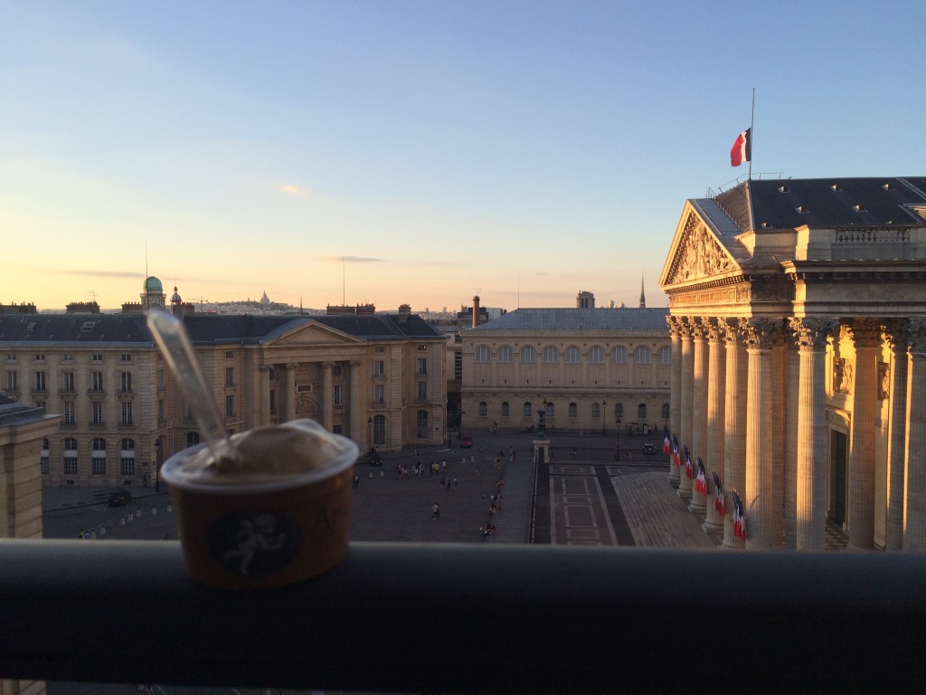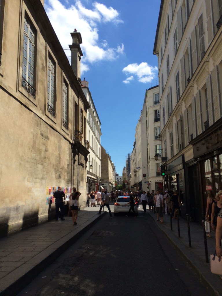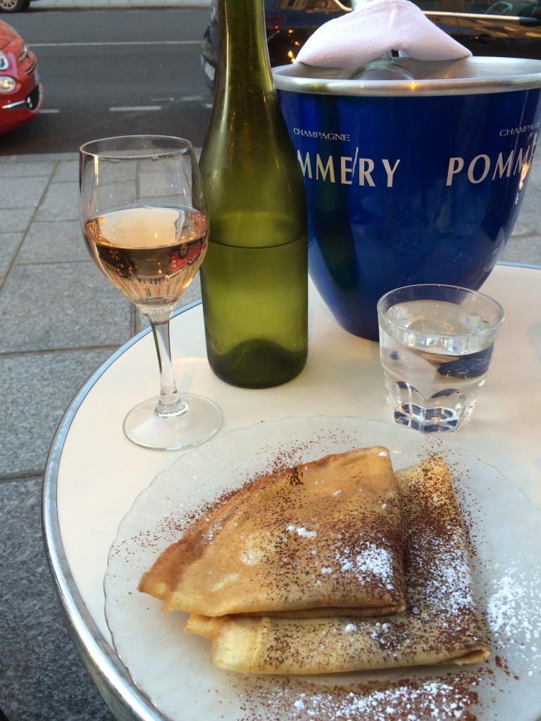 Our final day of the whole trip. It dawned late for us (travel fatigue is real and it was rearing its ugly head at this point). But thankfully we had covered almost everywhere that Jon had wanted to see so we were taking the day easy. We wandered the streets, stopping in Shakespeare and Co (because you have to right?!) and walking by the Pompidou. We picked up some souvenirs for friends and family as we walked through Le Marais. Even some macarons! We had a little adventure getting cash out for a gift for Jon’s brother… as someone (not me) forgot to bring the check card with him so we got to run back to the hotel, grab it and make it back to a street vendor just in the nick of time. And one of our last stops was to Rosa Bonheur to have tasty cheese stuffed with figs and a bottle of rose while floating on the Seine. We relaxed for a bit and then found a nearby cafe (Le Petit Cler) for a quick dinner. Still tasty- and we talked with some nice Americans from Charlotte, NC at the table next to us. A quality dining experience. And finally we headed back to our hotel to pack and I had delicious gelato one last time at sunset. Just nothing better. Paris you’re lovely.