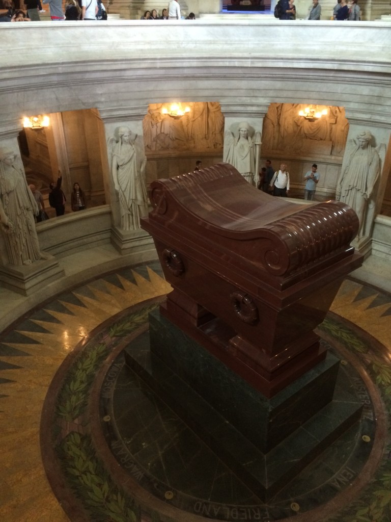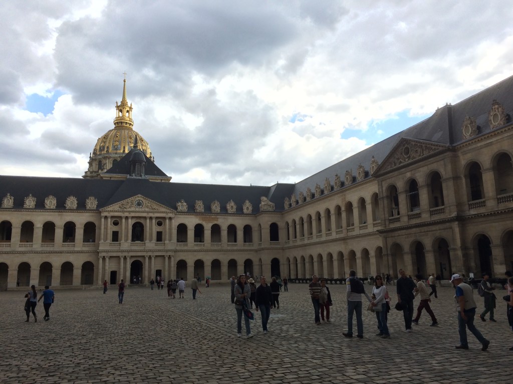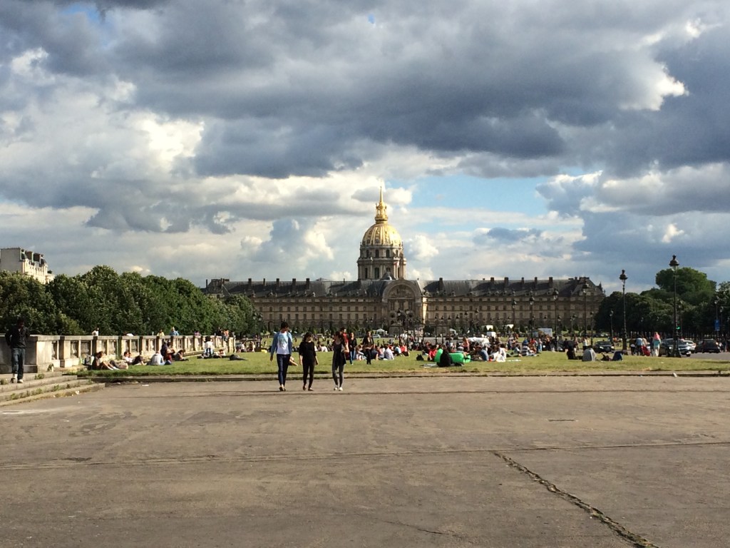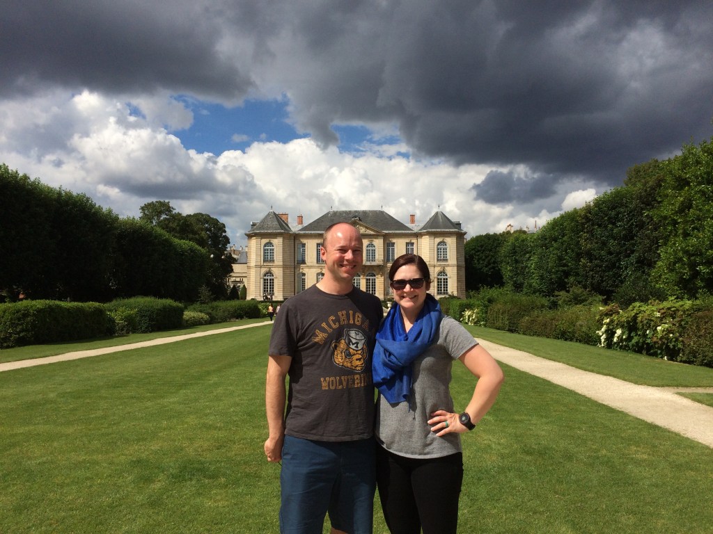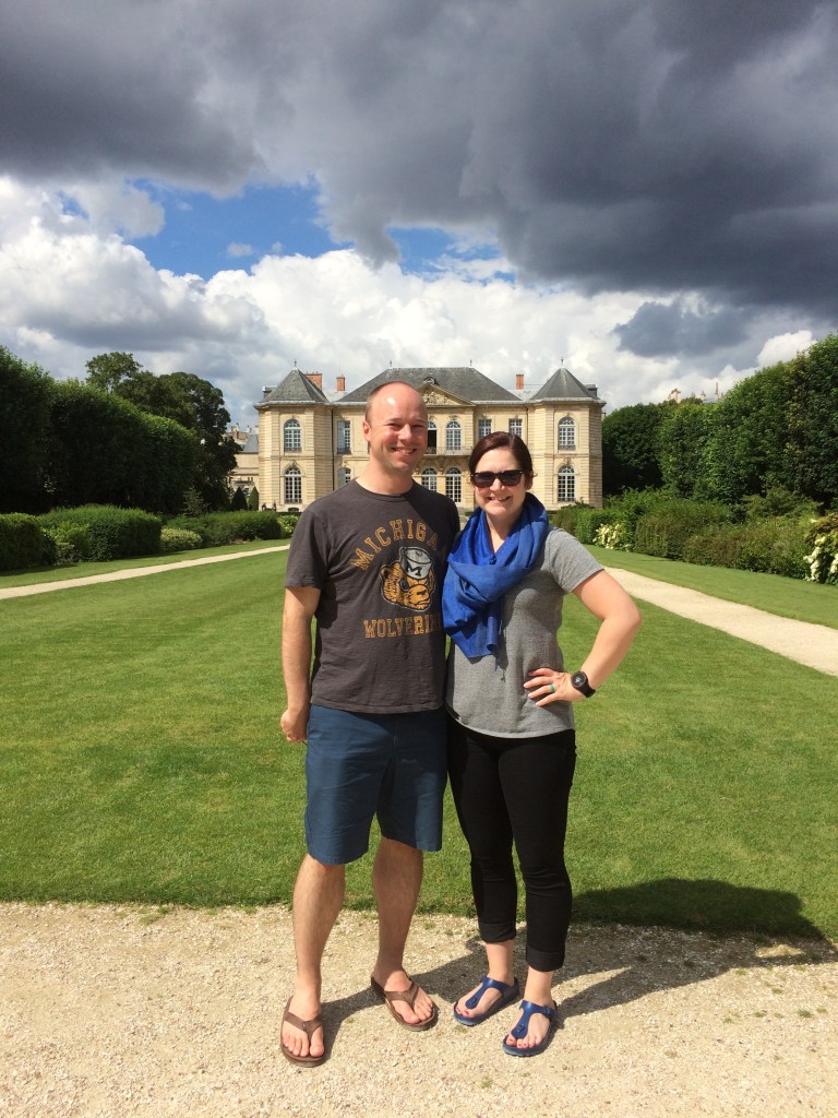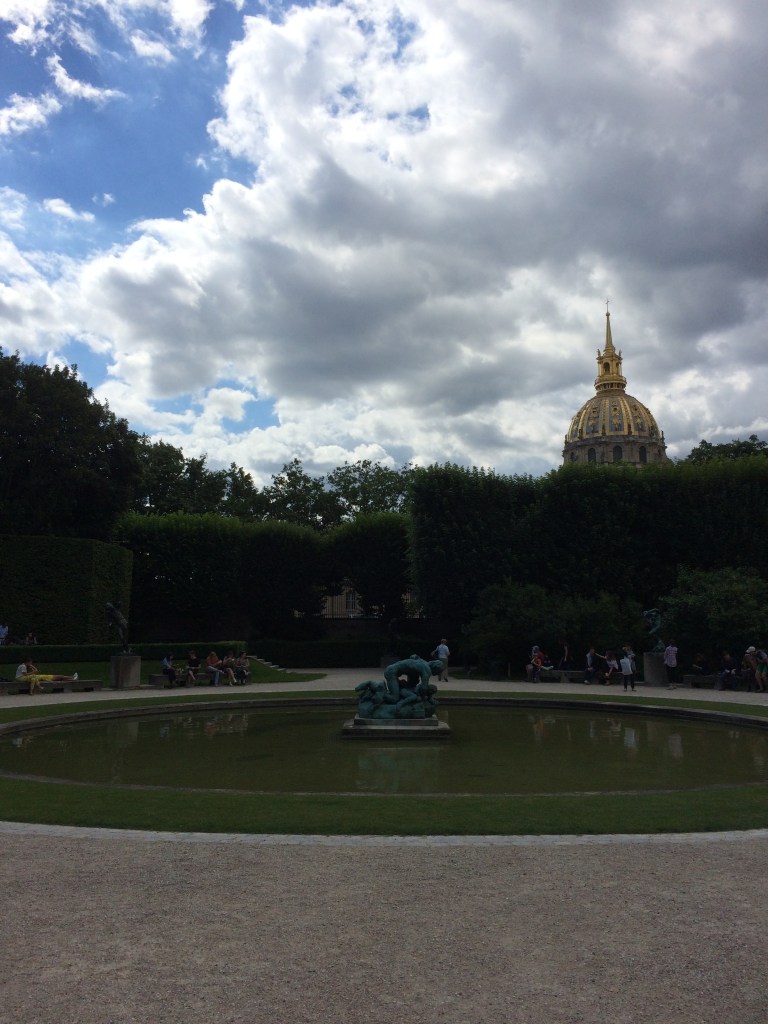 I had left our Paris itinerary entirely in Jon’s hands. I felt like he should get to choose since I dictated our entire Ireland trip! So our first stop was to Musee Rodin. Again another place I had not visited so I was looking forward to what it had to offer. We got to see The Thinker (under a little reconstruction) as well as some of Rodin’s other lesser known works. The grounds were beautiful and we got some nice photos as we walked around. We followed this up with a visit to Les Invalides. I should have prefaced saying that on Bastille Day all museums and monuments are free. Which is great but that also means they are super crowded! At Les Invalides we were able to see Napolean’s tomb as well as all the intricate gaudy architecture Napolean had wanted. It was quite the sight. We ventured over to the Eiffel Tower as there was supposed to be a free concert and fireworks in the evening to celebrate Bastille Day. Well- after seeing the guard presence and finding out no food or drinks were allowed inside we opted to listen to the dress rehearsal and then headed back toward our hotel for dinner. From the Pantheon you can see the Eiffel Tower so we thought if we could find a good spot there we would be able to see the show without all the hassle of being down there. We had a tasty dinner and then settled in to watch the fireworks. Of course accompanied by nutella crepes and Rose! When in Paris 🙂 And the fireworks were amazing!! So much better than 4th of July in the states. They also went on forever. I’m glad we were able to experience that and on our first day in town!