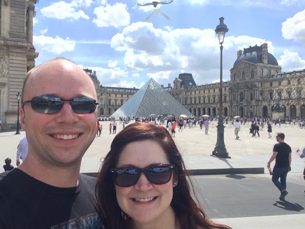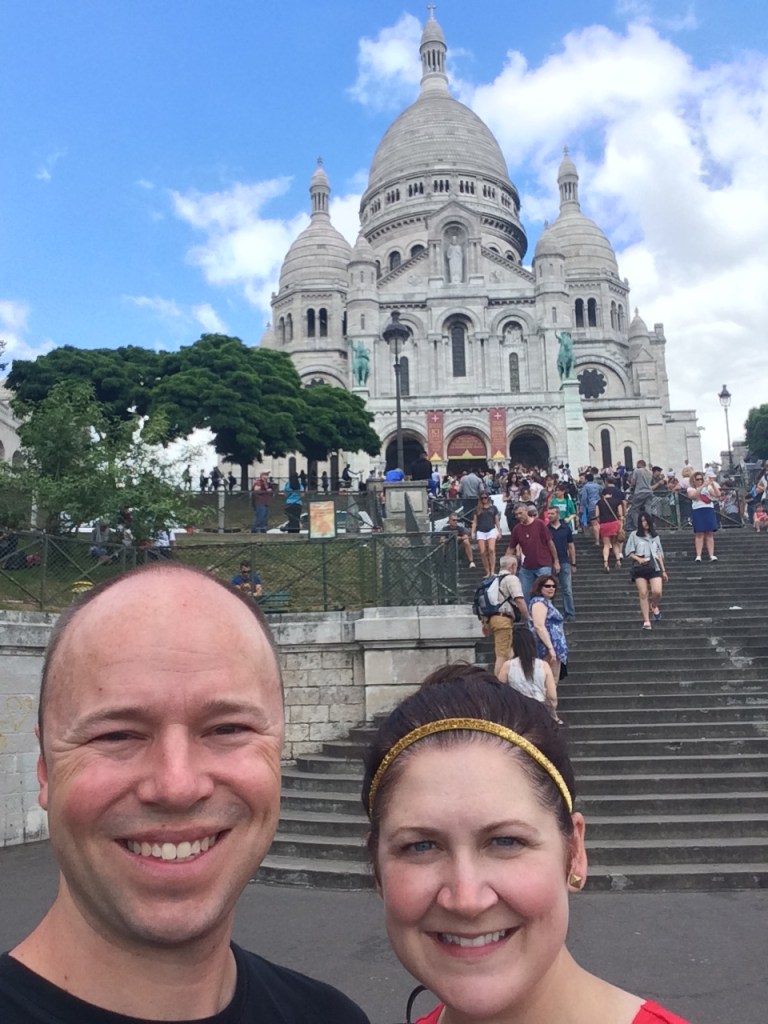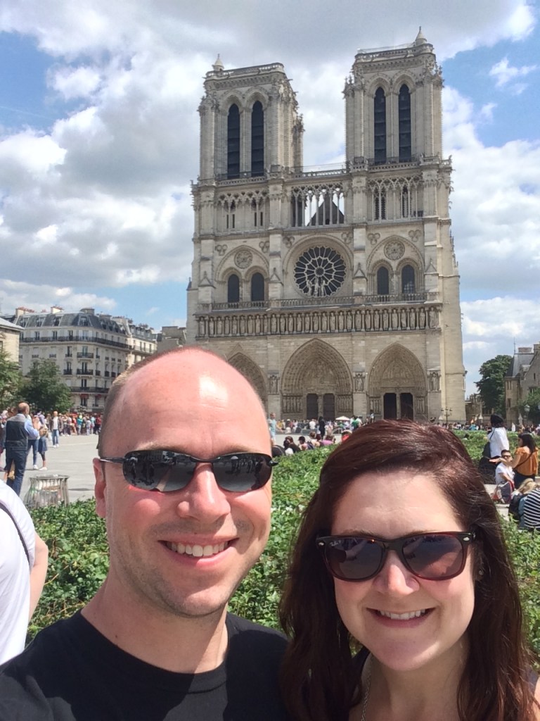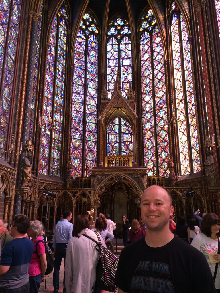 We had a cute french breakfast at our hotel and then it was off to experience more of Paris! Our first stop was to the Louvre. I had been previously in 2009 but as it had been awhile I was looking forward to showing it to Jon and letting him take it all in. As I expected he was in awe at the sheer size of the place. But we were able to see quite a bit (some on purpose and some when we got lost!) including the Mona Lisa of course. We followed the Louvre with a trip over to Musee d’Orsay. I had not been there previously as we got there after they closed. It had a lot more of the art I enjoy and so I had a really nice time walking around this museum. Plus we got great views of the Seine from the room AND I got to see some of my favorite Degas paintings. Our next stop was over to Notre Dame. Paris is so iconic with all its fantastic sights. Last time at Notre Dame I had an allergic reaction. This time it was a little toasty out but we were able to walk around inside and take in the greatness of the space. Our last stop for the day was over to Saint Chapelle. Again something I didn’t see previously. The stained glass in the light does not disappoint and is worth every penny you pay to get inside. It was a really really cool place.