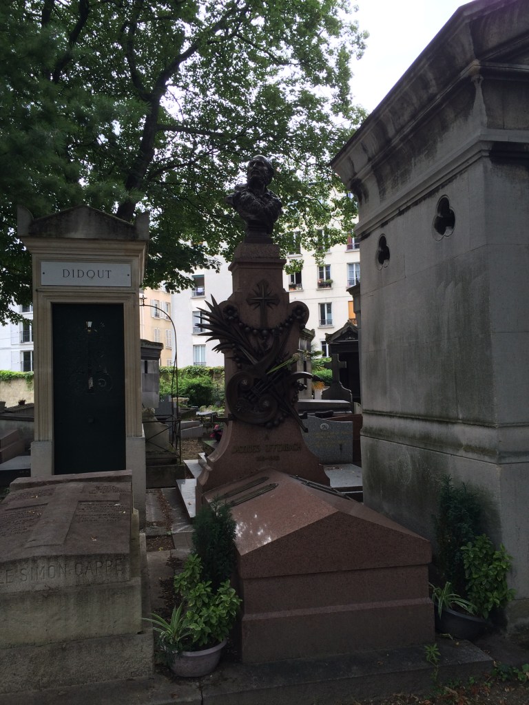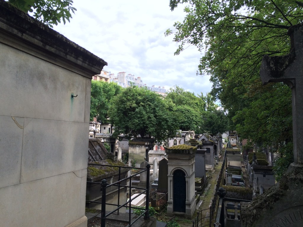 We headed to a different neighborhood after this. First stopping at Sainte-Trinité which is Messiaen’s church, one of Jon’s music idols. You are able to just walk in so we wandered around a little, saw the organ he used to play at, and read some of the history. This was Jon’s happy place. Afterwards we headed up to Montmarte to visit Sacre Coeur, and hide from pick pockets. This time we got to walk up to the dome in the top- amazing views of Paris. SO MANY STEPS. And a little claustrophobic but the views were worth it. I took a few shots as we were walking down but then we basically booked it to the bottom as the area is rampant with pick pockets. Then we stopped by Moulin Rouge, had a wine and cheese break, and the ventured to the Montmarte Cemetery. I had briefly walked past this last time in town but this time we got a map and wandered around to look at some of the famous graves. There are A LOT of people of note buried there, especially those of the arts and humanities. It was pretty cool (and creepy).