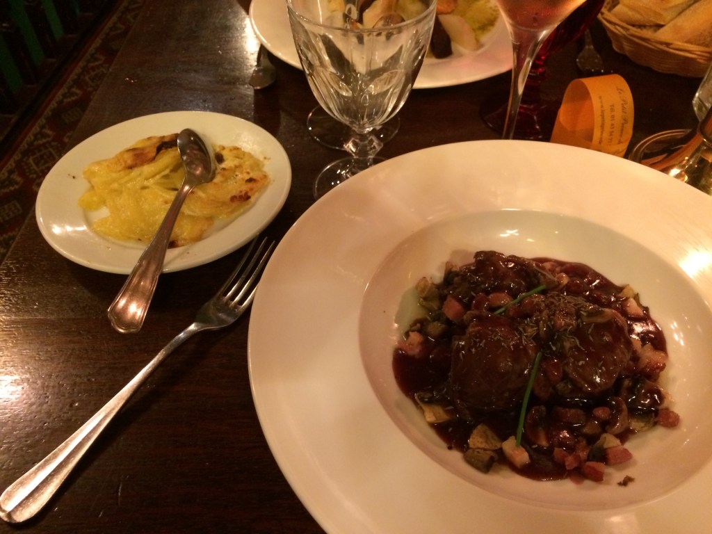 One of our last stops that day was to the old Opera House, Palais Garnier. They were closed but we were able to visit the gift shop and get some really fun ornaments for everyone! We stopped by the hotel to drop off our goodies and then after a little yelping found a nearby restaurant that had fantastic ratings and was definitely off the beaten path. Le Petit Prince de Paris. There are not any words to describe how amazing this meal was. I almost forgot to take pictures of our food but did grab one of the apple tart we had at the end. It was fantastic. An american lady at the table next to us said she came there all the time, but that people found it by word of mouth and it should be kept that way! We agreed. SO GOOD.