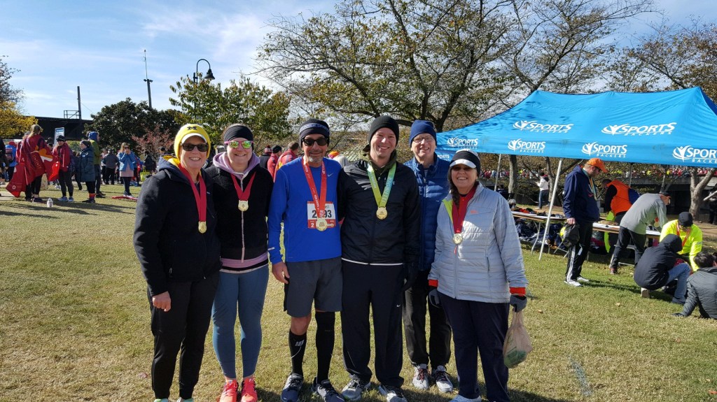 The weather was ridiculously cold so dressing was harder than expected but I had on my running for three tank over various layers. 🙂 My plan was to run to the mile marker and then walk a couple of minutes (repeat) until I made it to the end. Jon’s mom stayed with me the entire time to make sure I made it ok. We ended up finishing in under an hour which had been my tentative goal… I just wasn’t sure if I was going to be able to achieve it. But yes.. 59:31!! BOOM. I felt like such a badass afterwards. 🙂