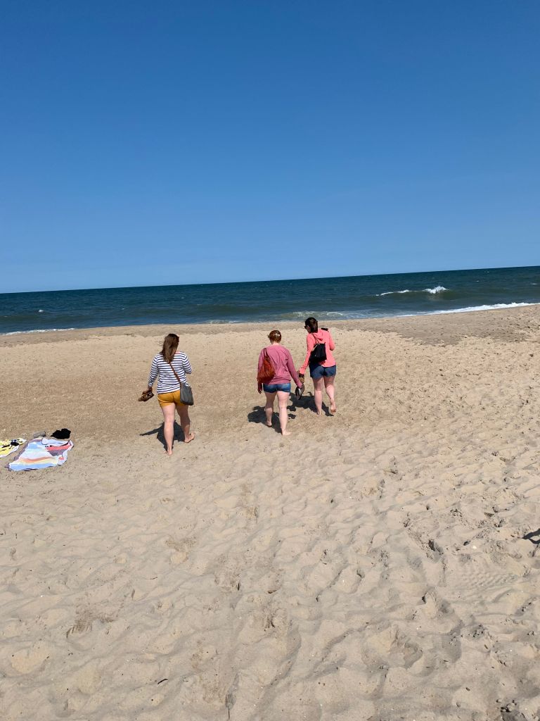 Saturday dawned with a cardio workout for me, Wynsor, and Cara. Gotta get the workouts in even while on vacay! Then we munched on breakfast while waiting for Campbell and Elizabeth to wake. We headed to down to Dewey Beach and Dewey Beer Co for a late lunch. Delicious sour beers – PERFECT for me – and I had an amazing lunch of chicken and waffles. Then we briefly walked down to the beach (it was a little chilly out) before heading back to our condo for more games and fun. Cara had brought ‘Tiny Hands’ which turned out to be HILARIOUS. Really hard to do some of the tricks with tiny and tinier hands. We cooked a yummy dinner and at all the snacks and leftovers before calling it a night.