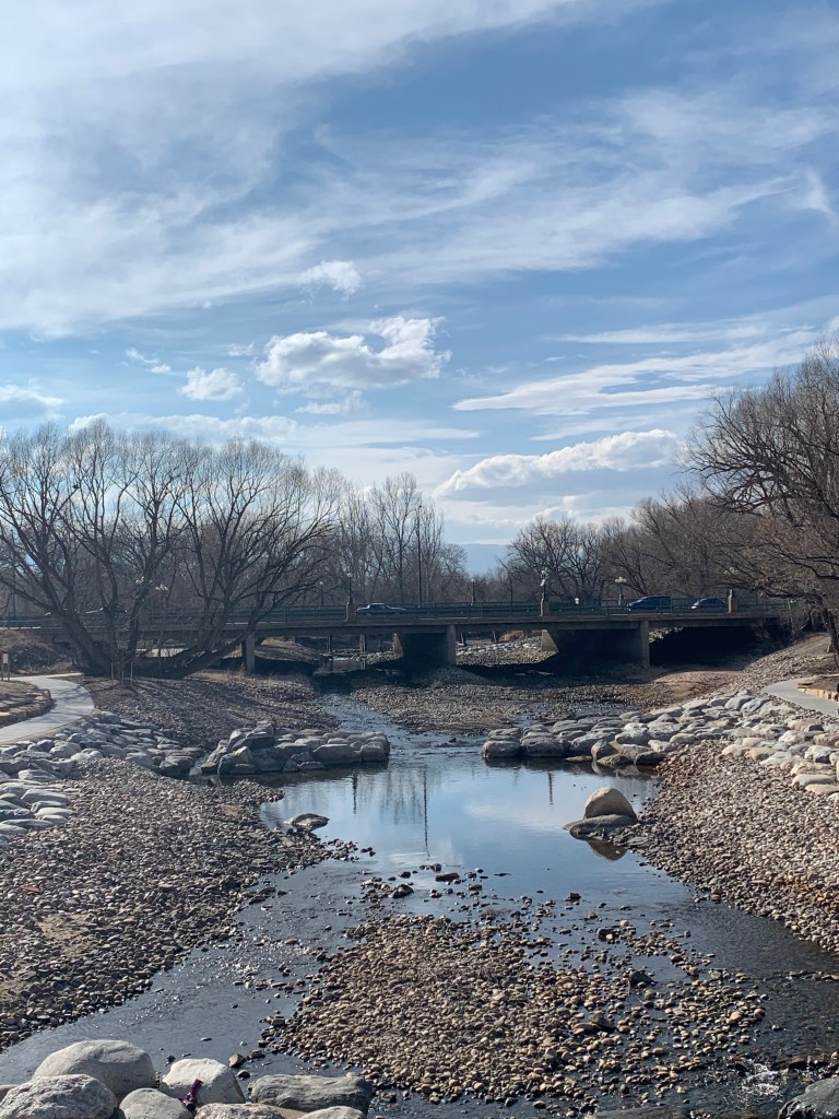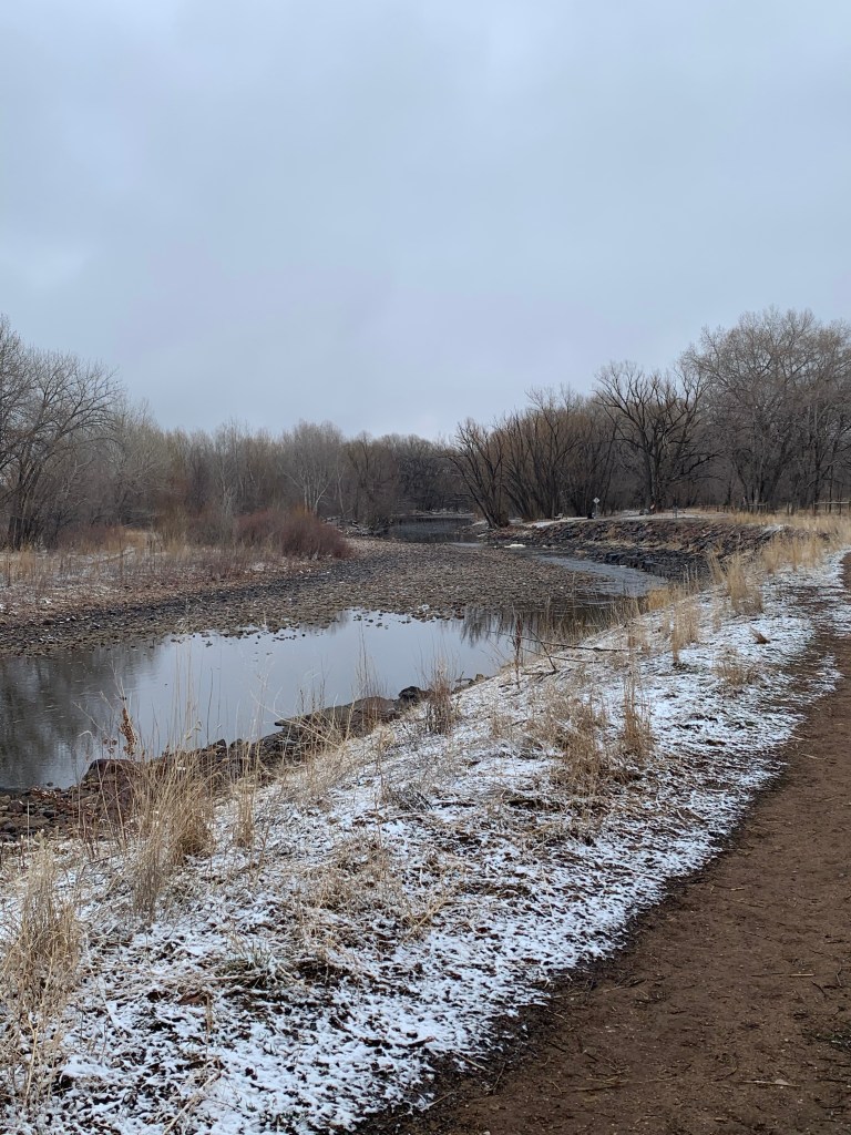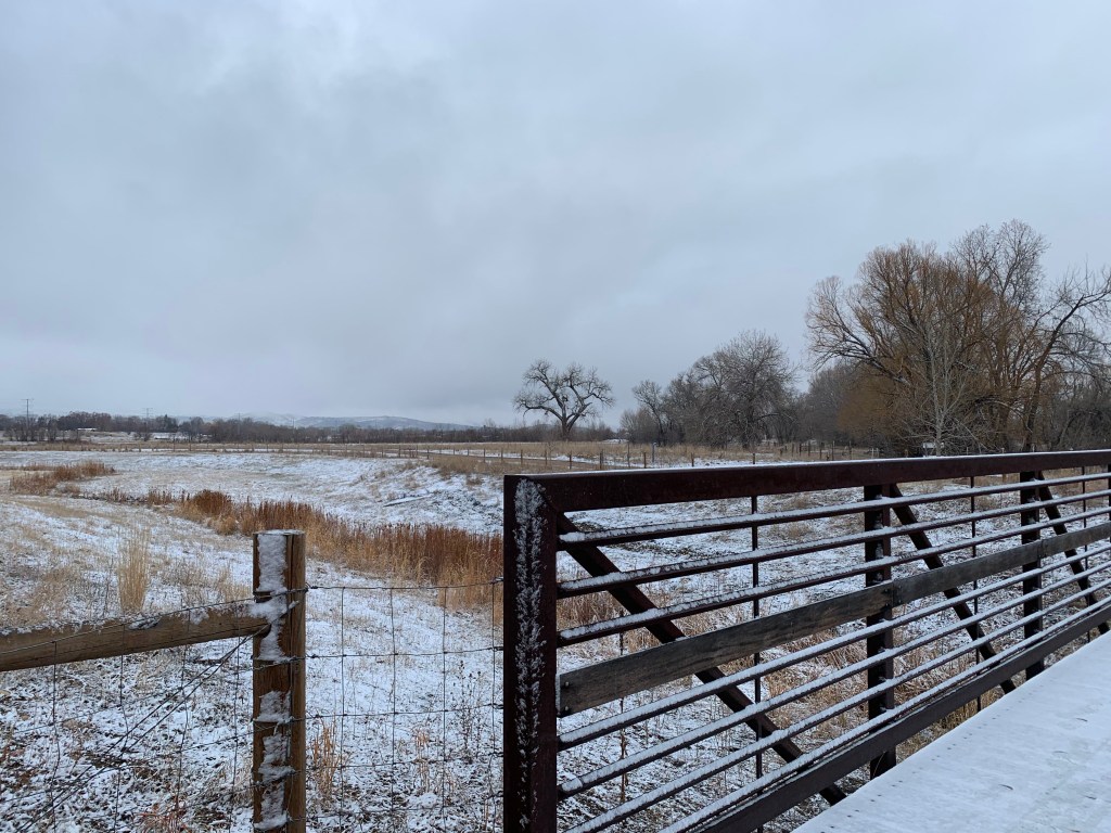 On our second day in town, Wynsor and I were up early to go for a run. We were staying just off the Poudre Trail – so decided to get some miles in. First running at altitude is hard on the lungs, but second the views were amazing! It had snowed the night before so it was like a winter wonderland along the river with mountains in the background.