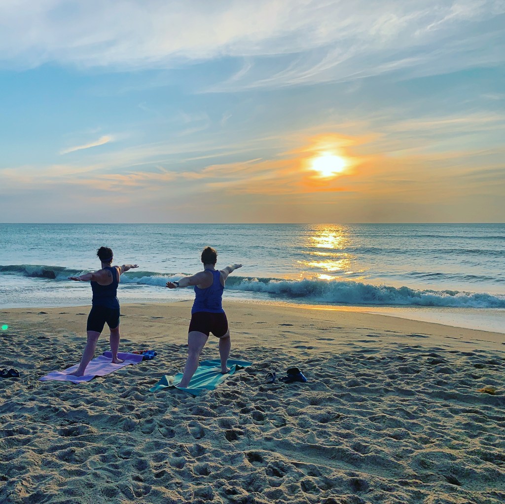 I convinced my SIL Jordan to join me for yoga on the beach while we were in Kitty Hawk this year. It was a really enjoyable affair.