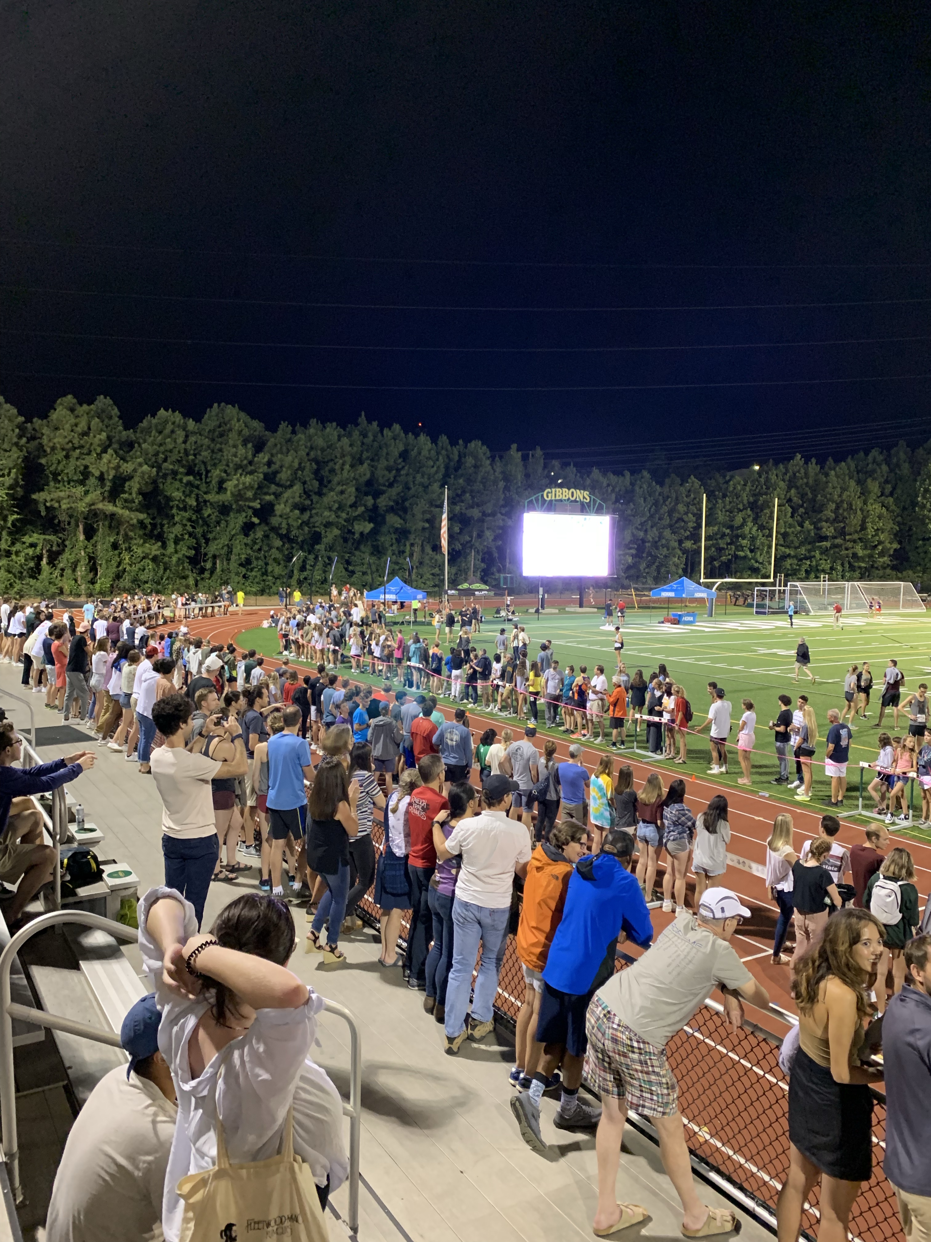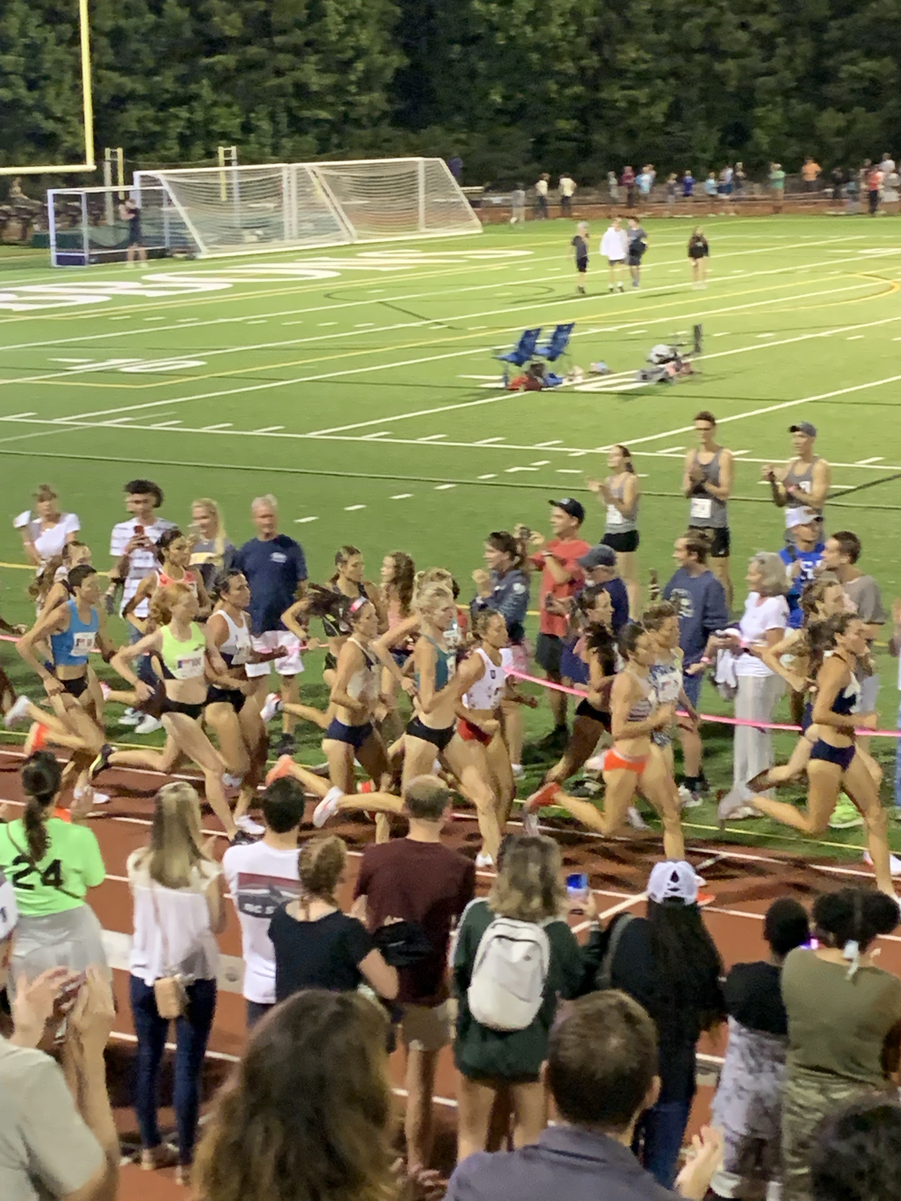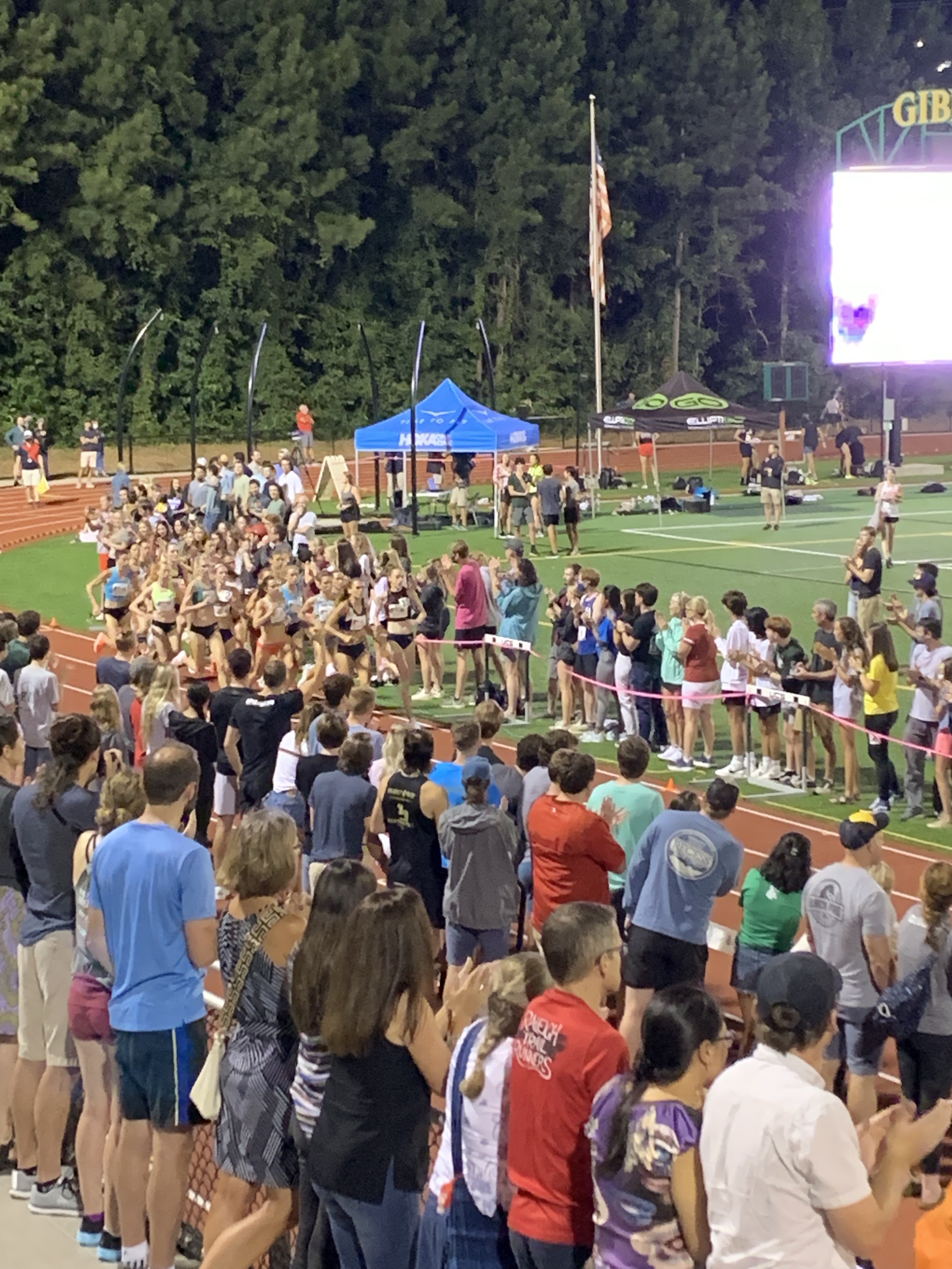 Headed to Raleigh for the evening to watch some pros race a mile REALLY fast. Plus we got to watch the Olympic marathon on the jumbo screen at Cardinal Gibbons track.