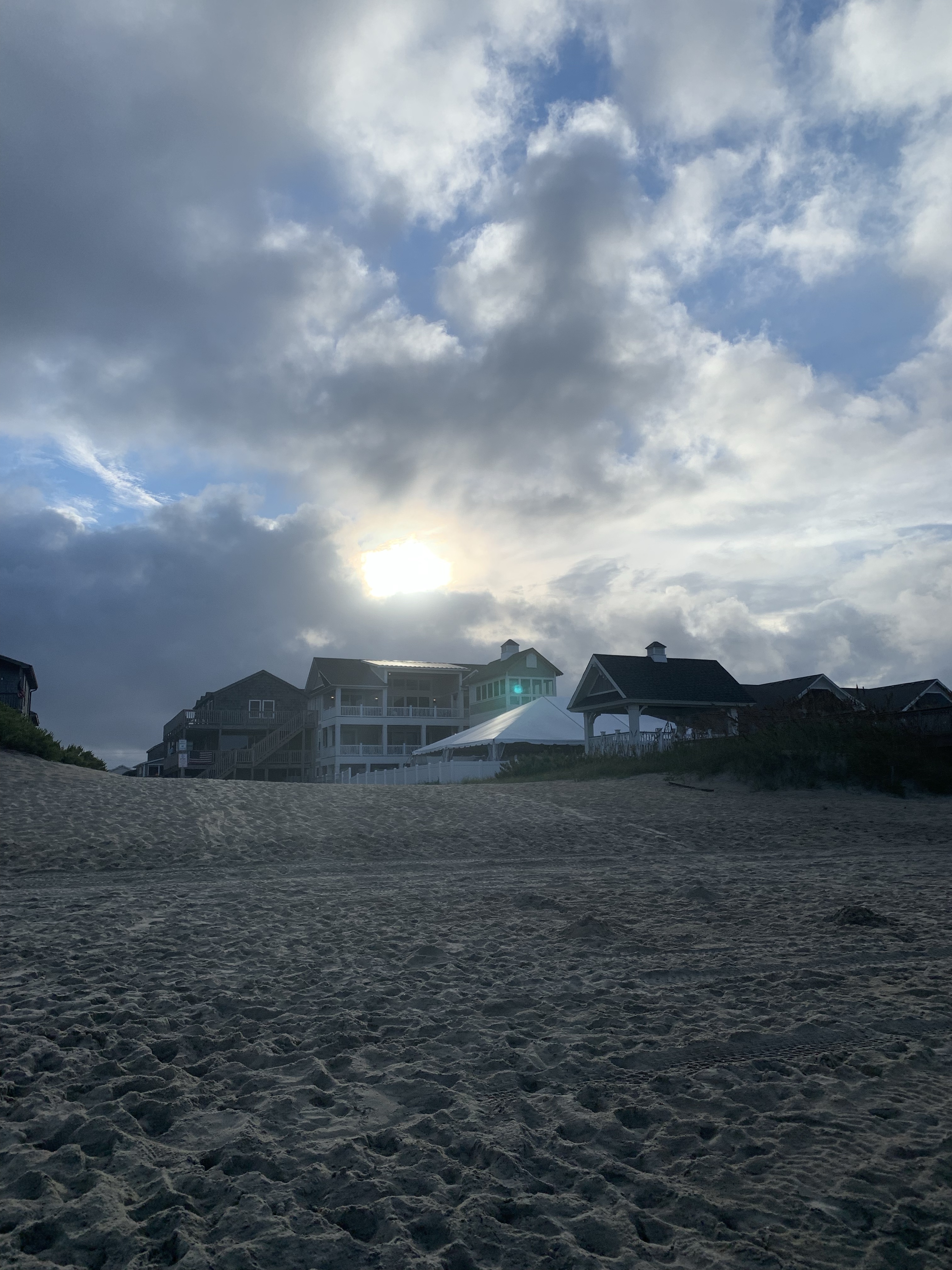 Sunday morning dawned with a leg workout and some stretching for me, some relaxing breakfast for everyone, and then it was time for more BEACH! We packed our lunches and the cooler bag and enjoyed another wonderful day in the sun (under the tent). The outdoor shower was fantastic for cleaning up after. Campbell had to head back to Raleigh (so many hugs) while the rest of us headed to dinner at the OBX brewing station nearby. Hushpuppies, delicious beer tastings, and yummy food later we headed back home with a little stop over at the ice cream place around the corner. YES. Should have come here every night!